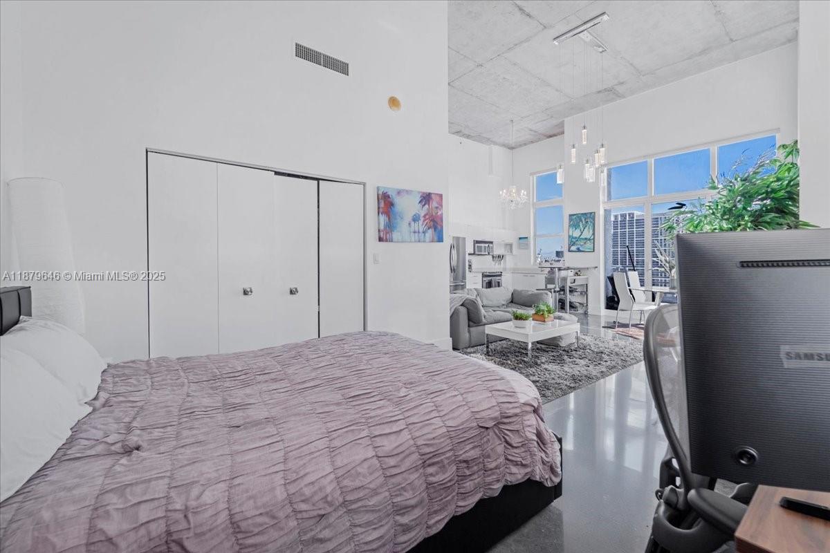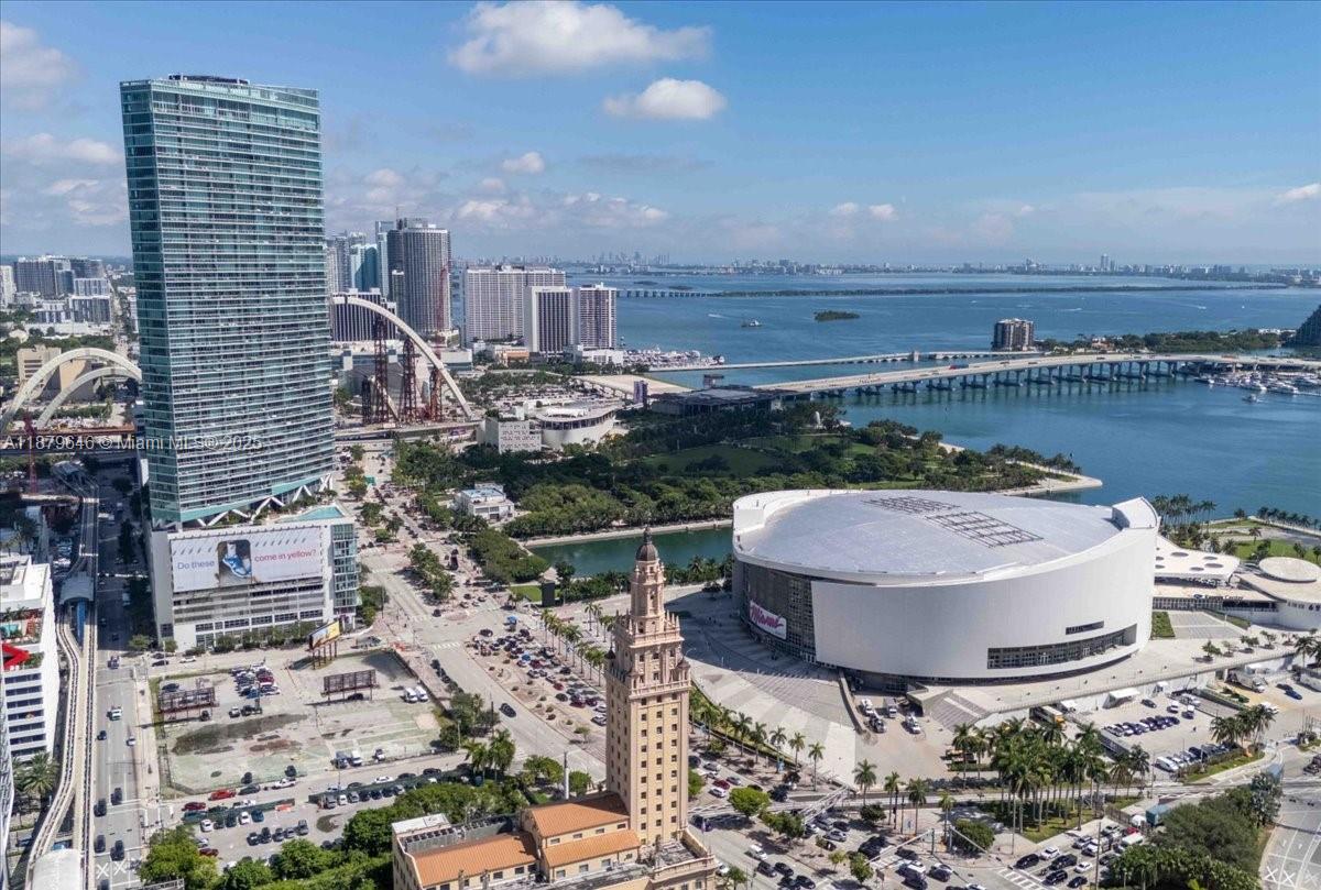 Rarely available Upper Penthouse with soaring 16ft ceilings and sweeping bay & city views! This corner loft-style residence is bathed in natural light from floor-to-ceiling glass. The floor plan includes one enclosed bedroom plus a second open loft bedroom connected to the kitchen and living area, easily convertible into a true second bedroom. Amenities include two pools (one just steps from your door and another at ground level), a rooftop gym with sauna, and an elegant clubroom. Walk to the Arena, Bayside, museums, and Brickell, with South Beach only minutes away. A rare penthouse opportunity in the heart of the city!