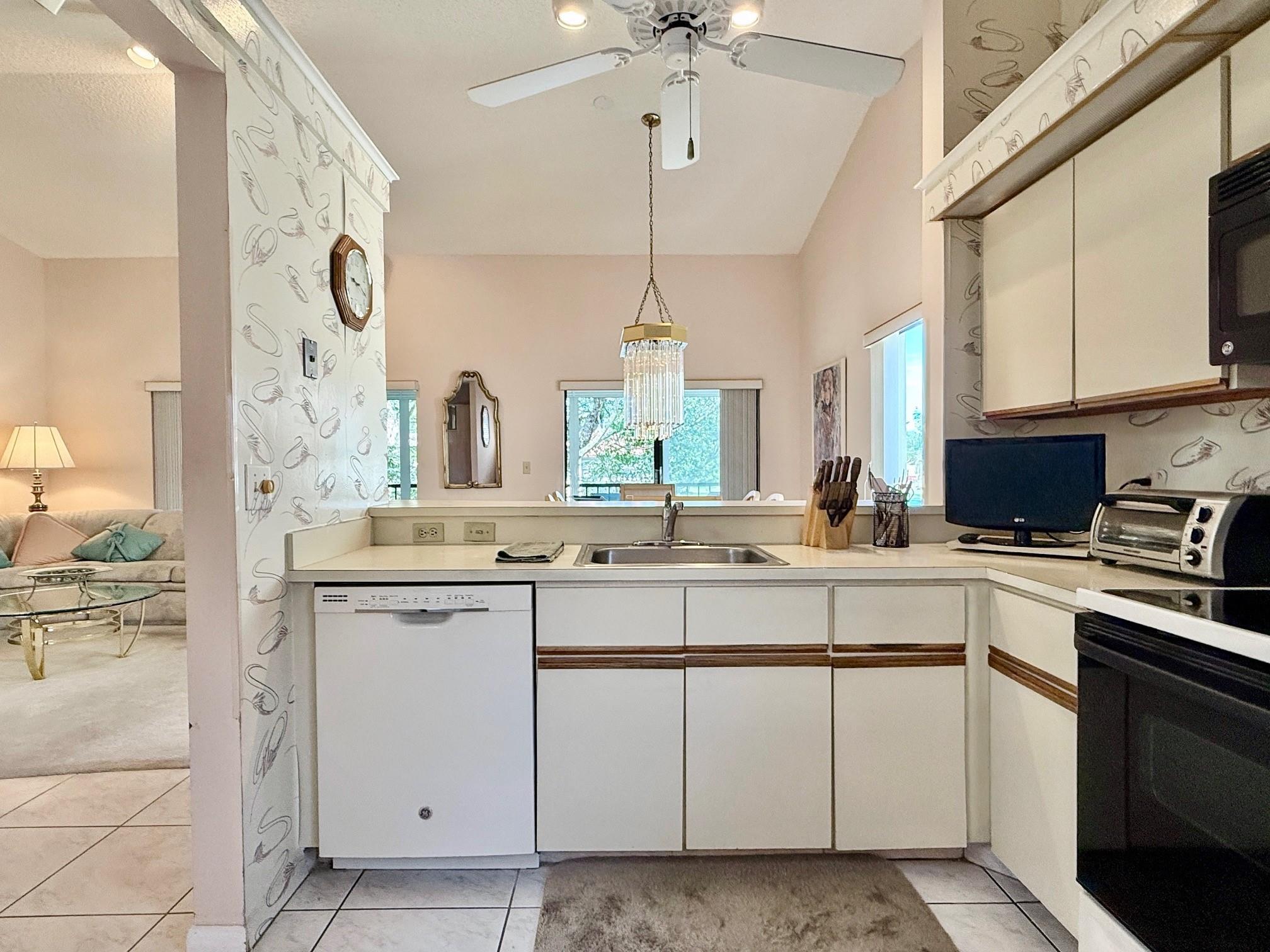 What a Beautiful Lake View this 2-Bedroom, 2-Bathroom Condo has! 3rd Bedroom is currently used as an Open Den. Screened-in 300 SF Lanai overlooking the lake, with pull-down shutters. Newer AC. Attic Storage. Large Primary Bedroom with ensuite bathroom and huge walk-in closet + an additional closet. Vaulted Ceilings with Bright, Open Feel. Park directly in front of the entrance with 2 assigned spaces. Located close to the clubhouse. Palm Chase is very welcoming with a 1/4-mile drive to the gated entrance. The Clubhouse Includes Olympic Size Temperature-Controlled (Heated/Cooled) Pool, Hot Tub, Fitness Rooms, Card Rooms, Billiards, Tennis, Pickleball & More. Strong Reserves. 55+ Active Community. Emotional Support Pets are Welcome! Assocation Fee Includes Just About EVERYTHING!