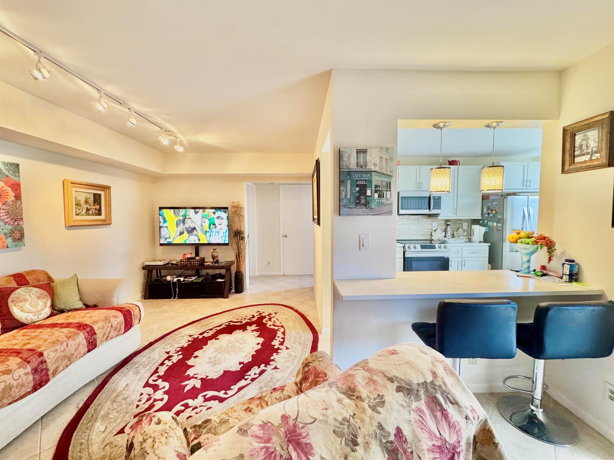 Discover this charming 2 bed, 2 bath condo featuring a desirable split floor plan with all tile flooring and no popcorn ceilings. The beautifully updated kitchen offers an eat-in area, while the screened patio is perfect for relaxing or entertaining. The spacious master suite includes a walk-in closet, and the unit has a convenient washer and dryer. The building boasts a brand-new roof (2024) for peace of mind. Located in a gated, all-ages, pet-friendly community with resort-style amenities including a clubhouse, gym, pool, basketball and tennis courts. Just minutes from vibrant Downtown Delray's Atlantic Avenue, known for award-winning dining, boutique shopping, art galleries, and lively nightlife. A true blend of comfort, style, and location!