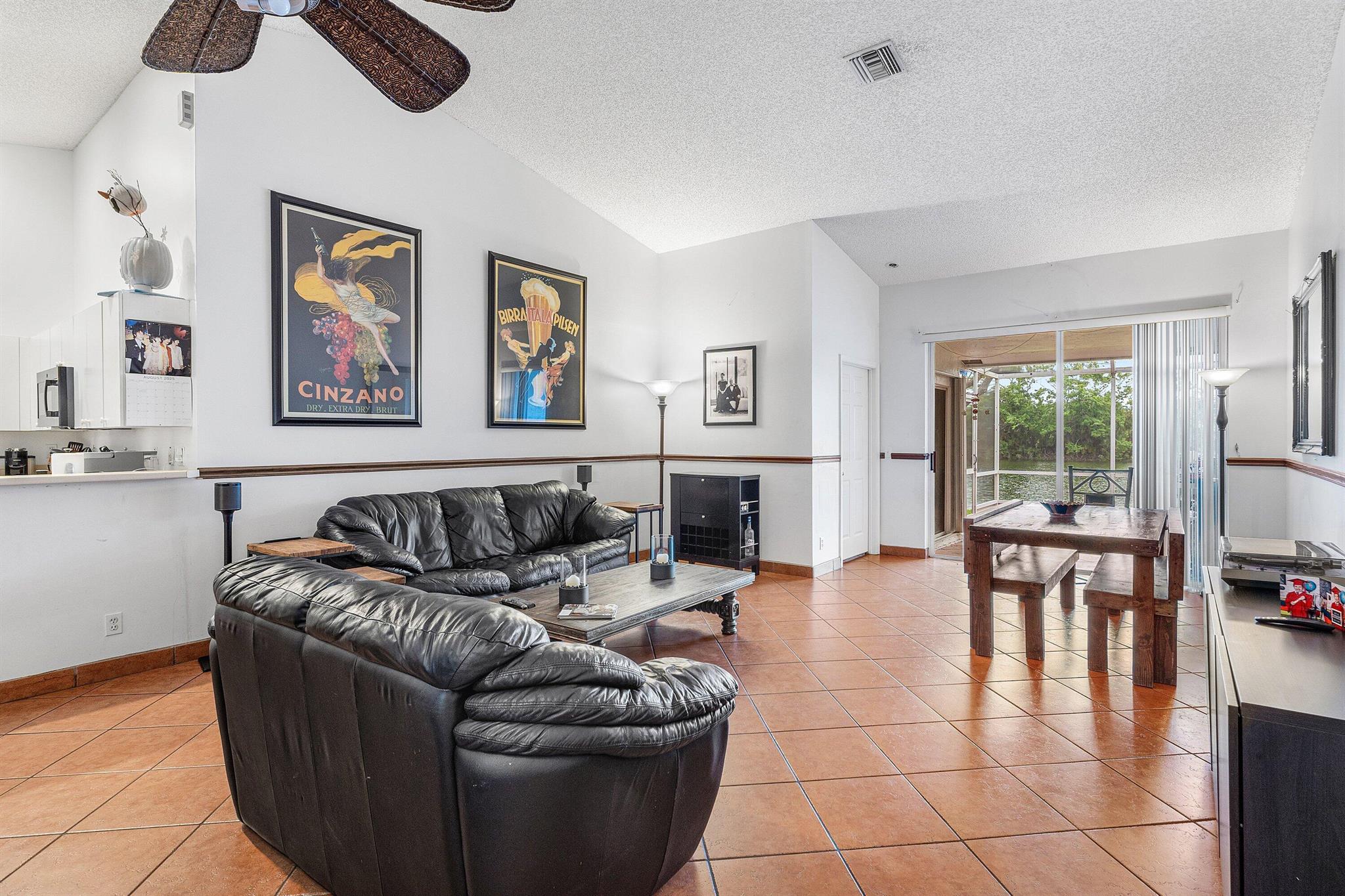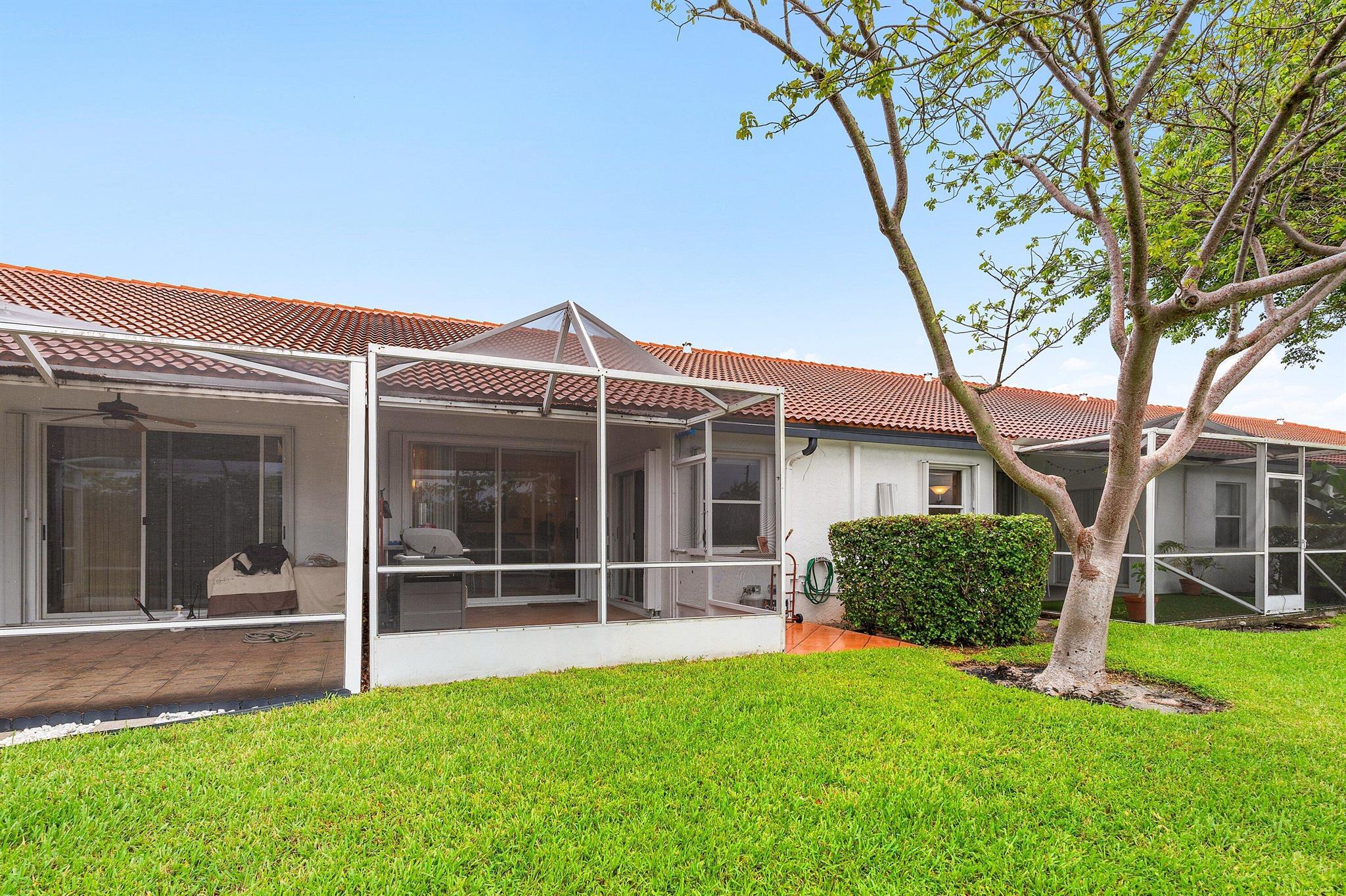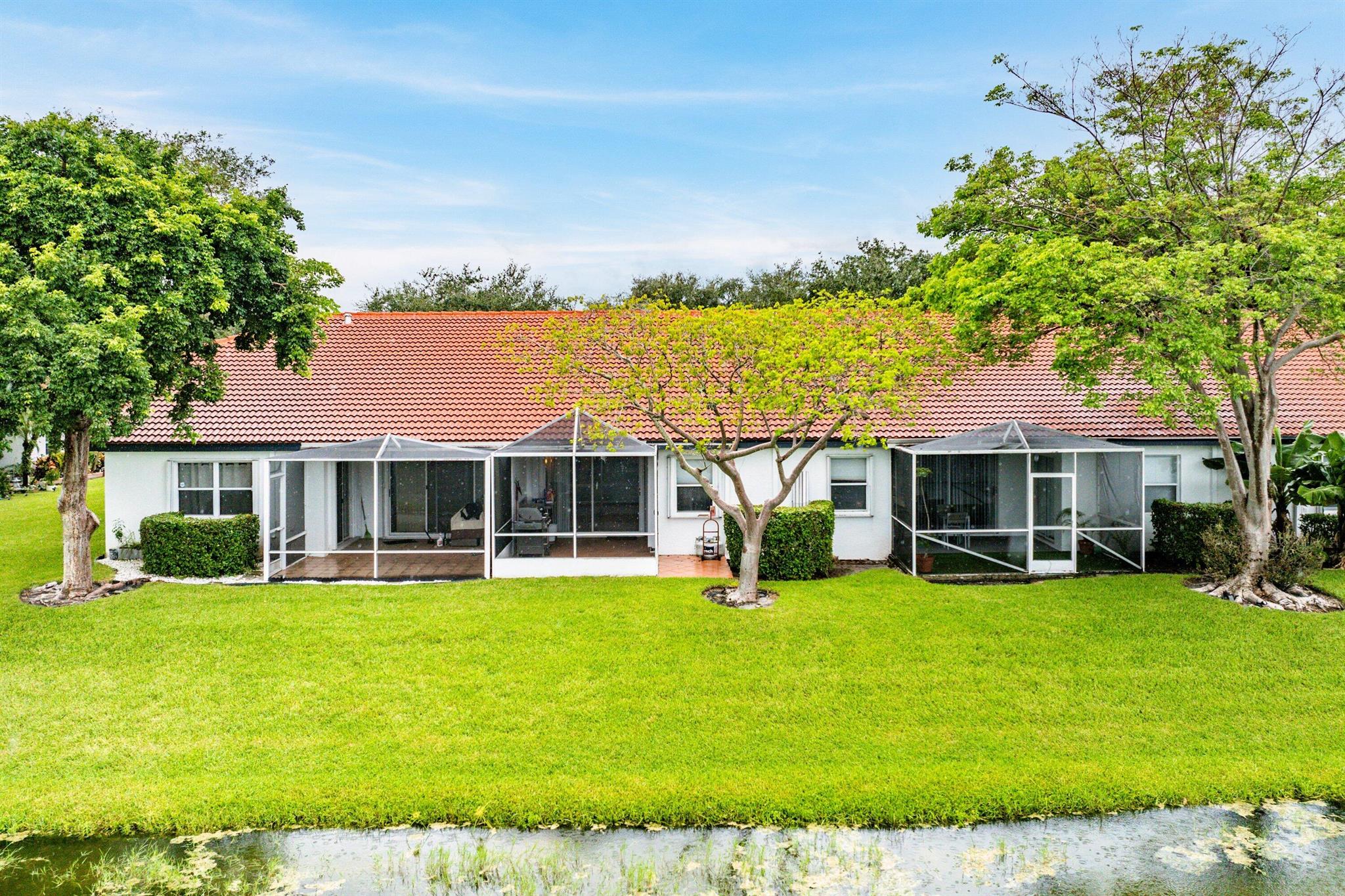 Nestled in the beautiful tree-lined community of Villa San Remo, this spacious 3BD/2BA villa offers vaulted ceilings, an east-facing lake view, and a screened lanai for serene indoor-outdoor living. Thoughtfully updated over the years, it's move-in ready while leaving room for your personal finishing touches.The kitchen features wood cabinetry and a new stainless-steel refrigerator. The primary suite boasts a walk-in closet, while the split bedroom floor plan provides comfort and privacy for family or guests.Additional highlights include a 2020 roof, full accordion shutters, and HOA-maintained roof and lawn care for worry-free ownership.