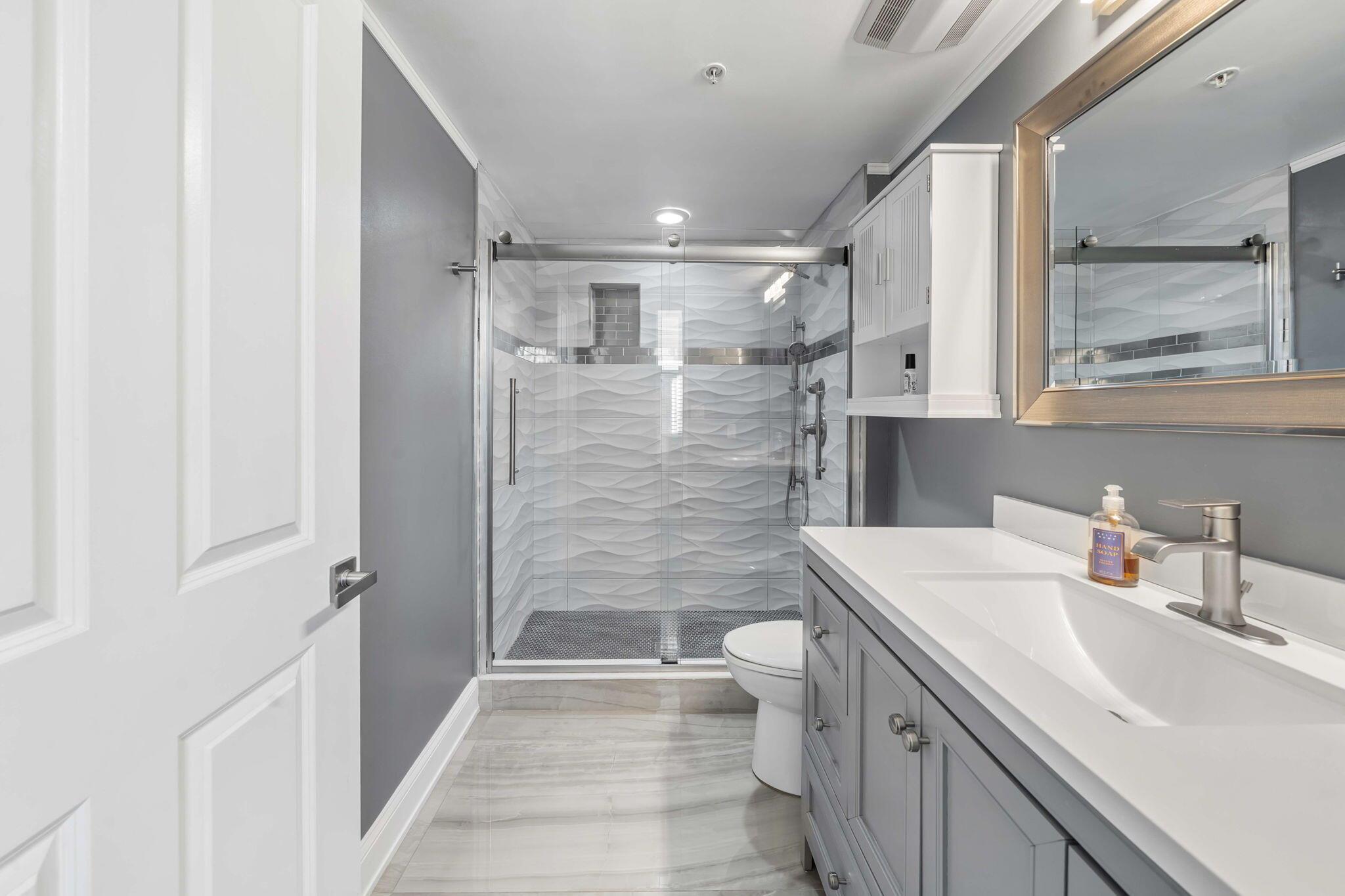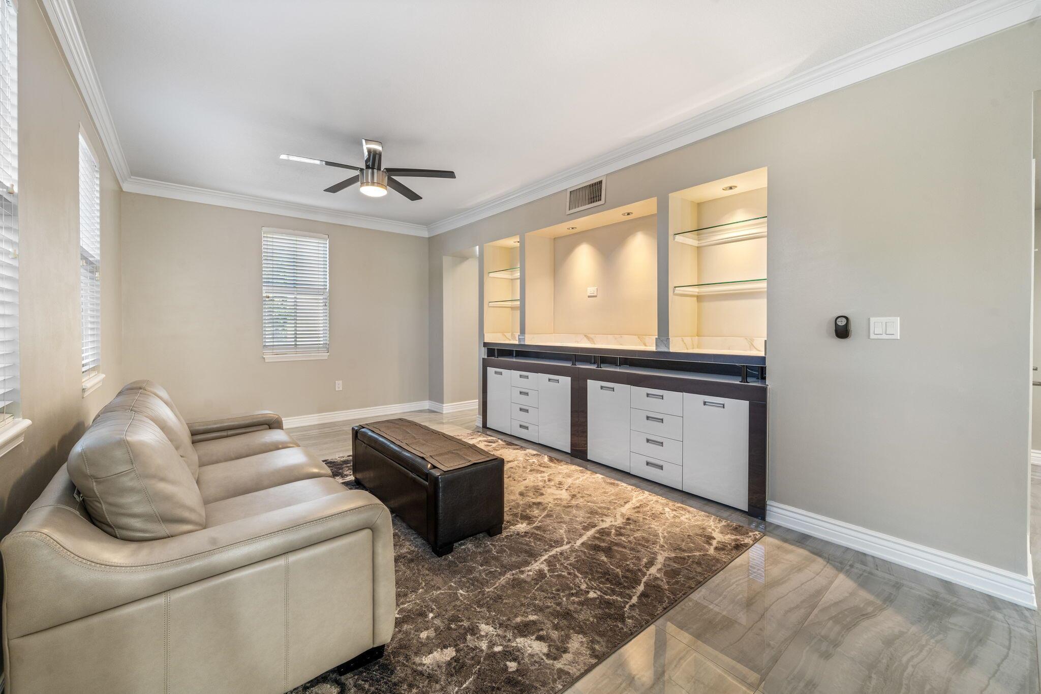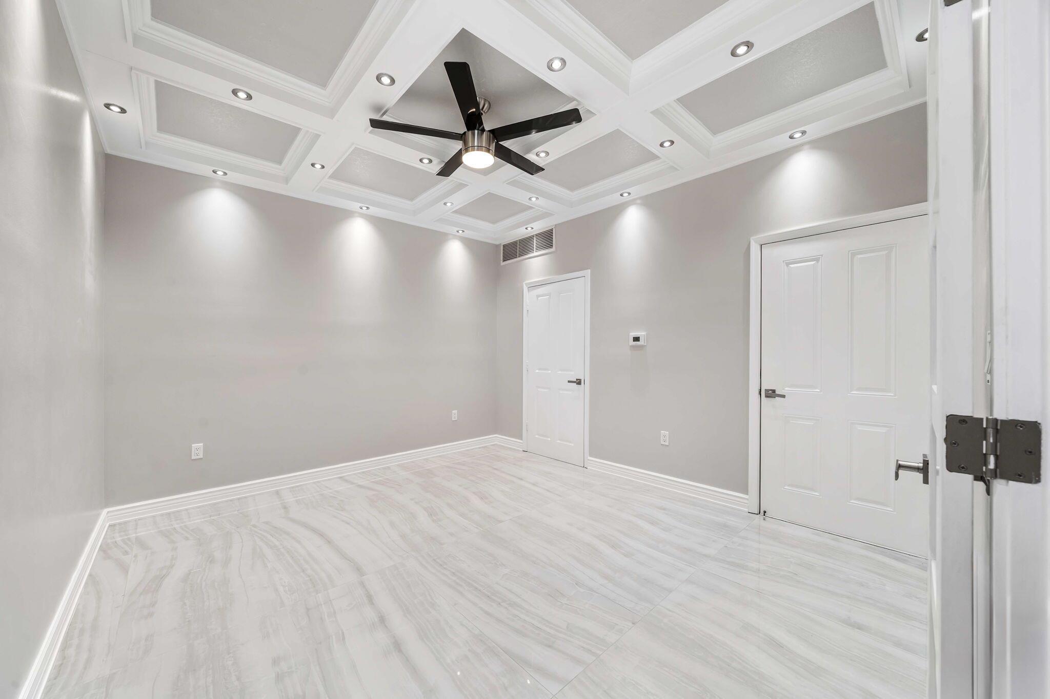 New Price!! Experience luxury living on the Intracoastal at Flagler Landing, a gated waterfront community in West Palm Beach. This beautifully updated 1-bedroom, 1-bath residence blends sophistication, comfort, and convenience, featuring a brand new AC and high-end finishes throughout. The renovated kitchen opens up to a spacious living and dining area, anchored by a custom entertainment center and flowing seamlessly to a private patio--your perfect spot to unwind or entertain. Double doors lead to a grand bedroom retreat with custom closet shelving and abundant natural light. As a first-floor residence, everyday living is effortless with two private entrances, a deeded garage parking space located just steps from the door, and a trash chute nearby.