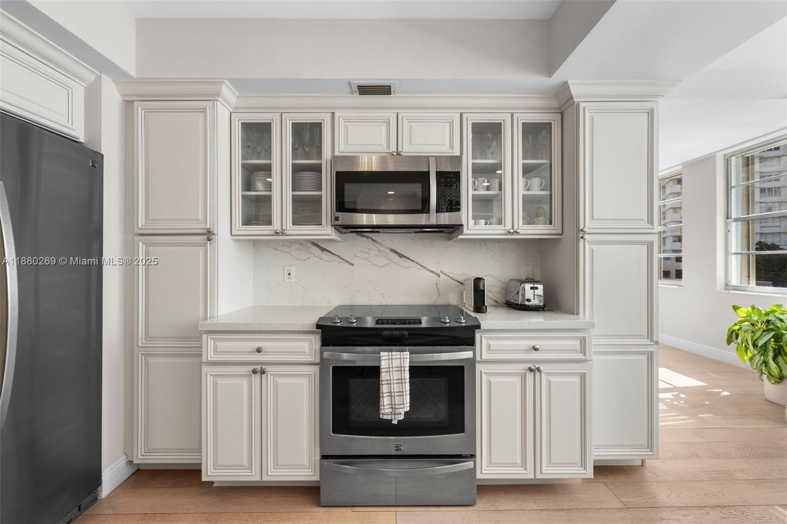 Step into this stunningly remodeled 2-bedroom, 2.5-bath residence boasting 2,210 square feet of modern elegance. The home showcases new flooring, designer kitchen, and spa-inspired bathrooms, all within an open-concept layout drenched in natural light. Residents enjoy a wealth of amenities, including a swimming pool, fitness center, sauna, billiard room, and library. FIFTY SIX-SIXTY COLLINS, a full-service building offers a private marina reserved exclusively for residents and has successfully completed its 40-year recertification, ensuring long-term security and value. With 24-hour security, valet service, doorman, and EV charging stations, this property blends modern upgrades with unmatched convenience. An absolute must-see for those seeking luxury and location in one package!