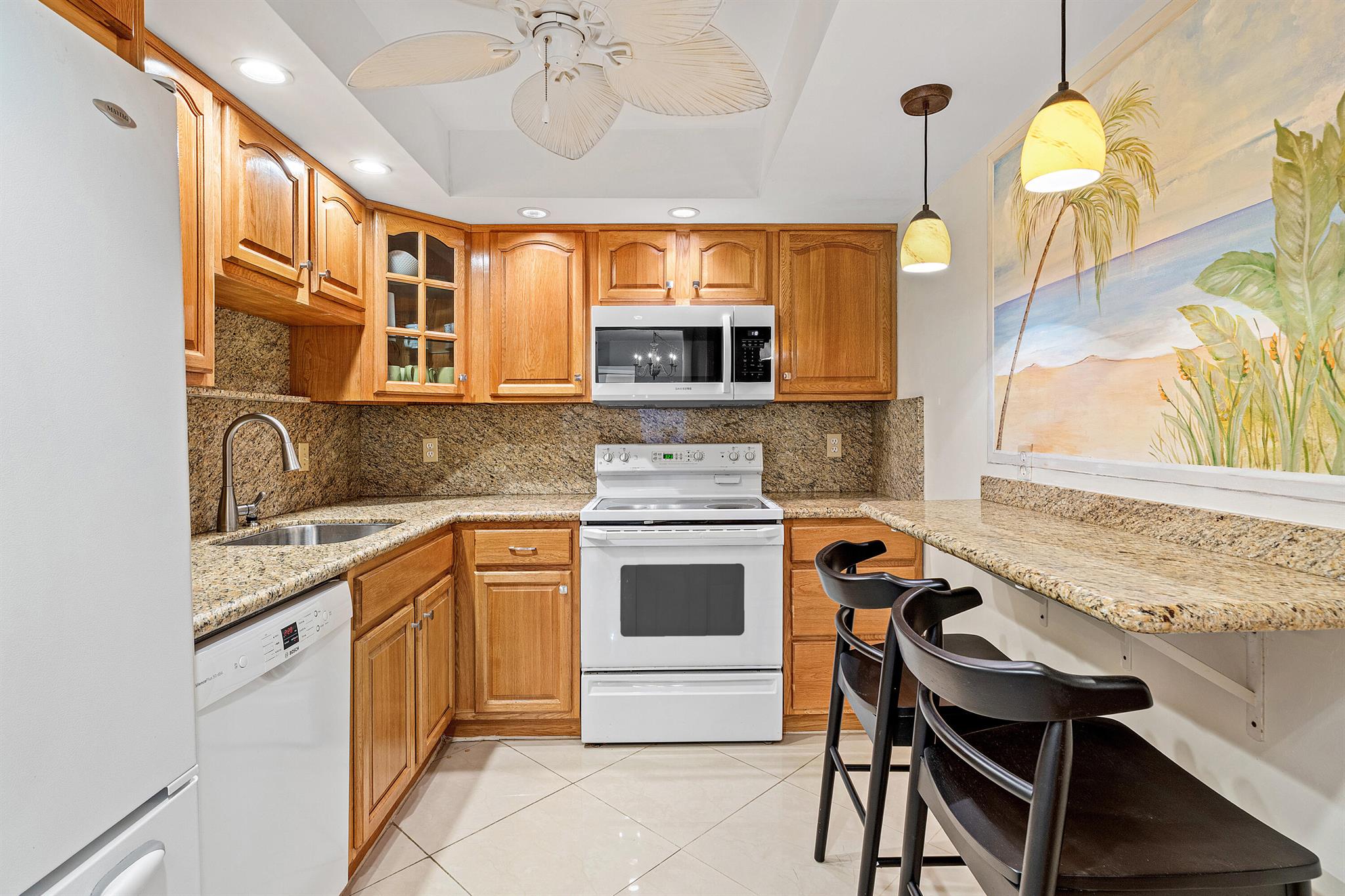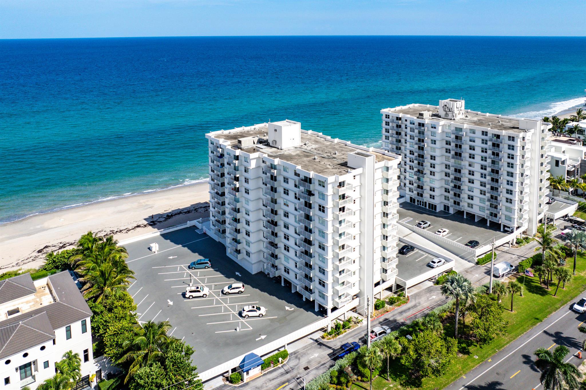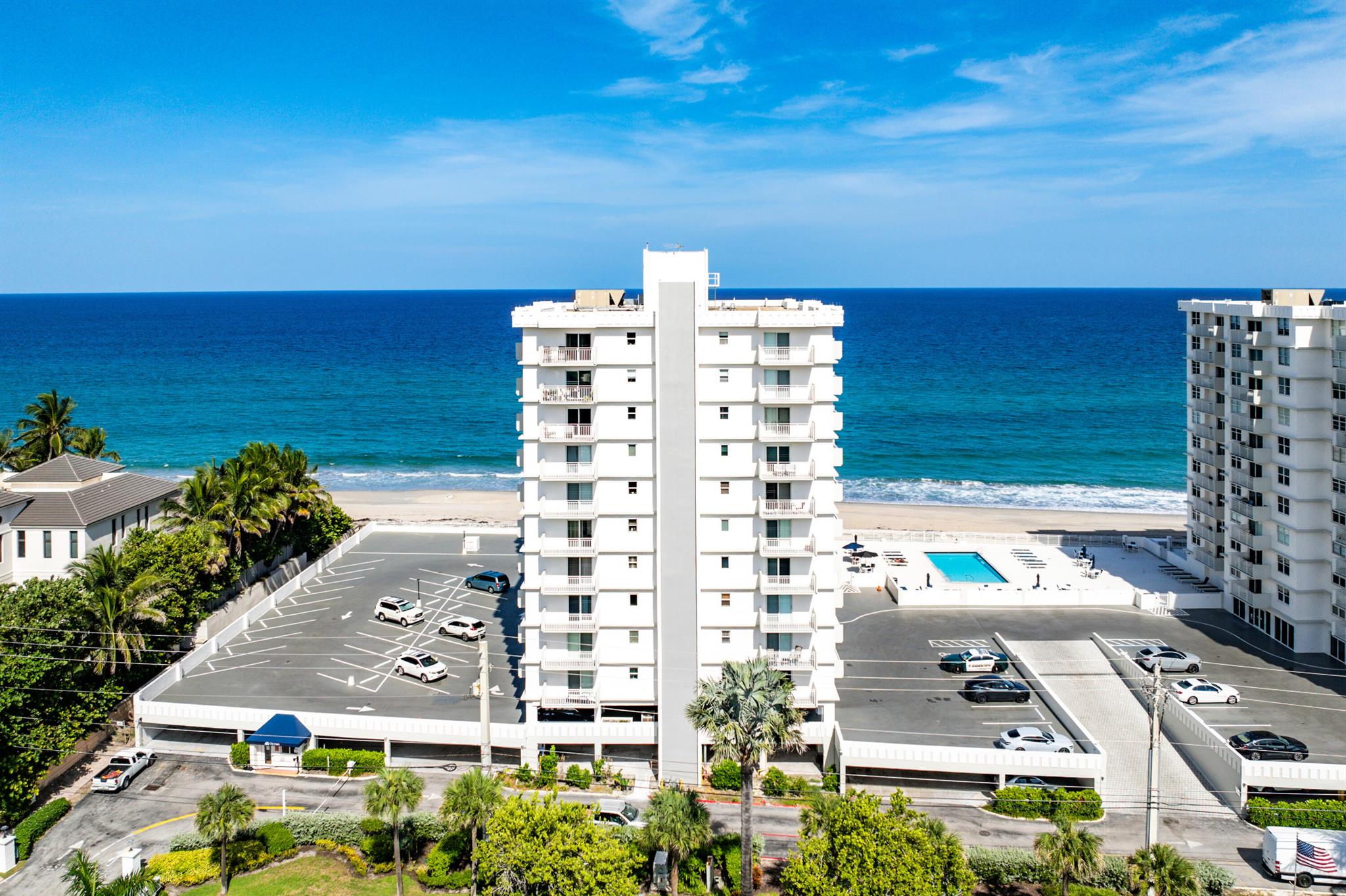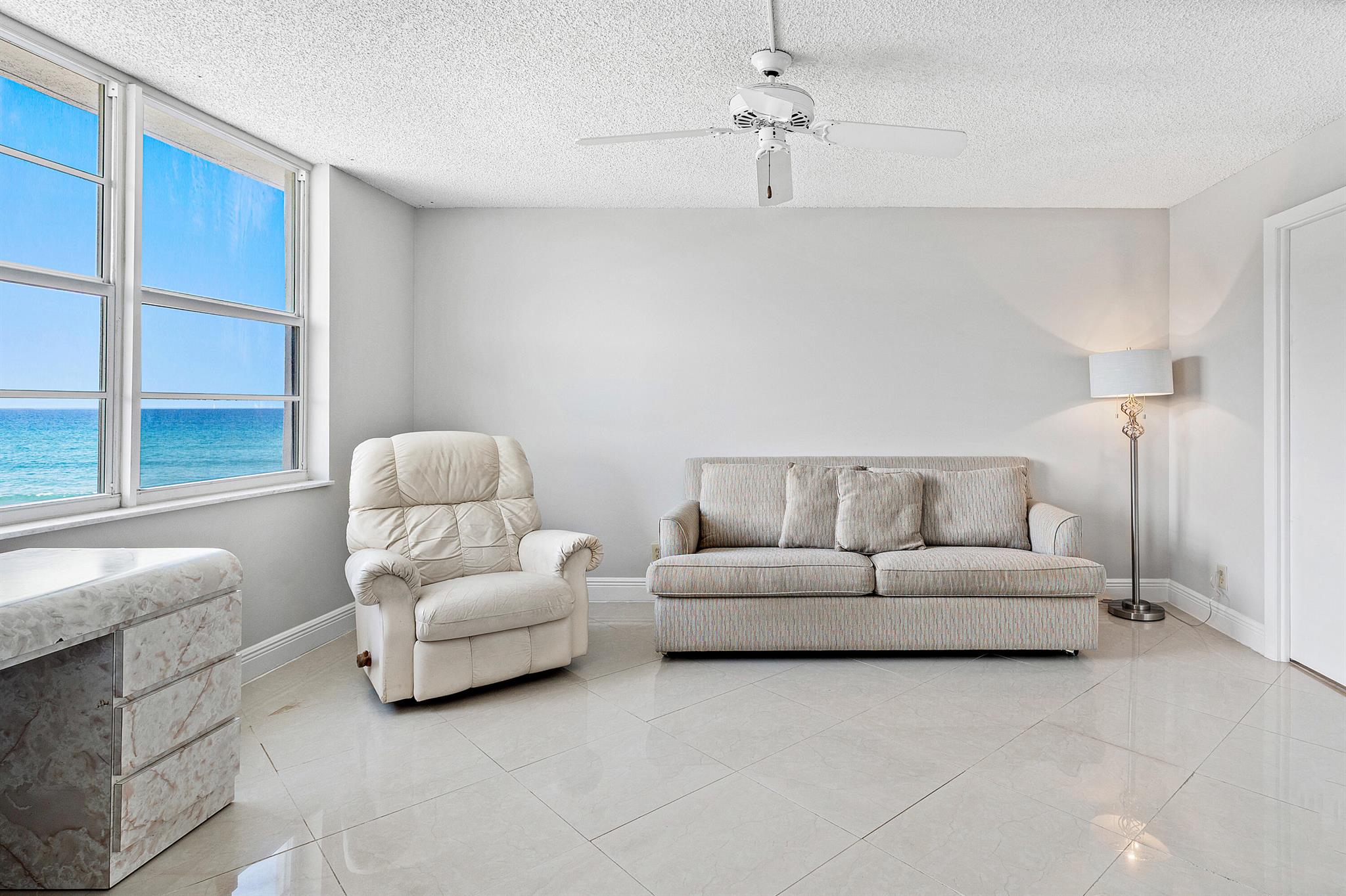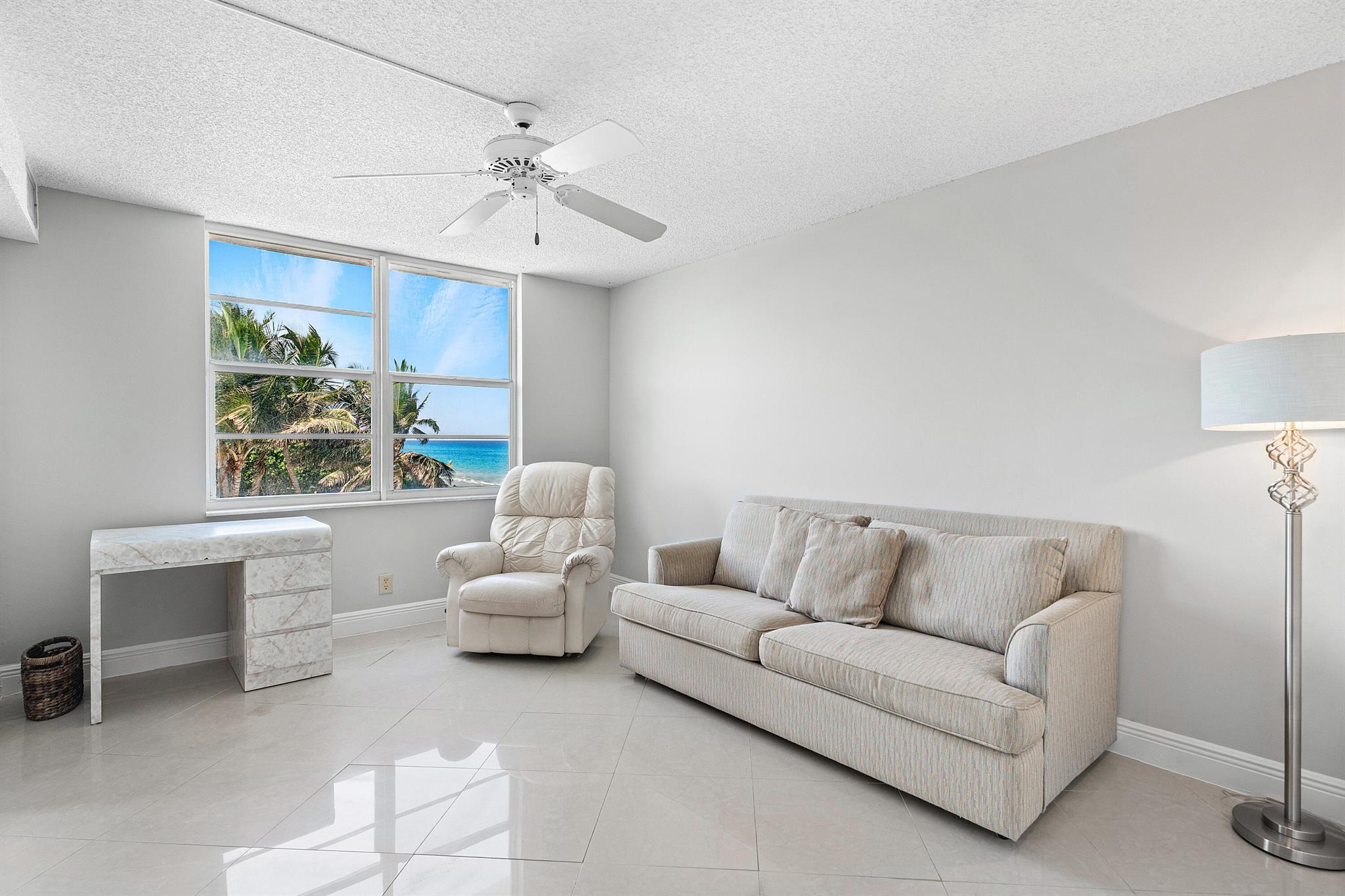 Unwind in the heart of coastal paradise at 45 Ocean--an immaculately maintained 2-bed, 2-bath condo offering approximately 1,100 sq ft of bright, stylish living space with unobstructed north-facing ocean views from every room. This move-in-ready gem has tasteful updates throughout and offers the rare convenience of being sold furnished for immediate full-time living or turnkey seasonal use. One of the best locations on the floor -- with the laundry room and trash chute immediately outside your front door -- means effortless everyday living. Perfectly situated between vibrant Delray Beach and upscale Boca Raton, Highland Beach offers the best of both worlds: fine dining, lively nightlife, and beach-town charm within minutes. Just steps from the gorgeous, 21/2-mile Helen Reed Beach and its o