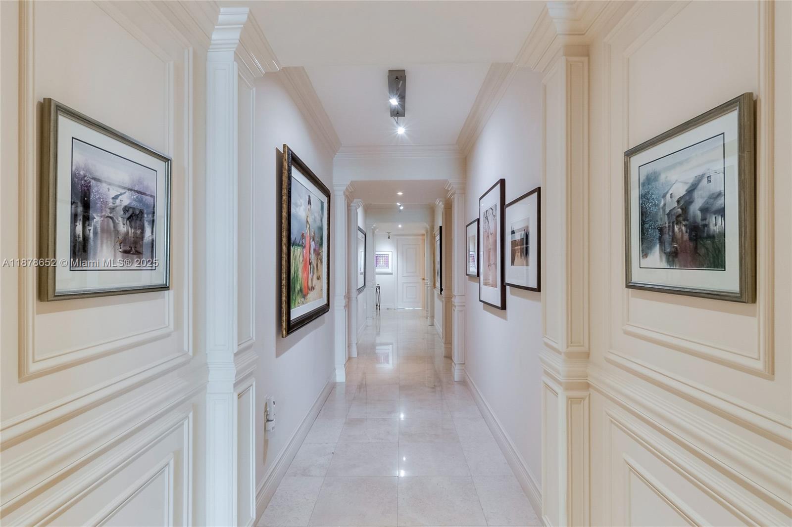 Step off the private elevator and enter the large foyer to your spacious and luxurious condo. The original owner has maintained this home to perfection. Breathtaking views of the intracoastal and ocean welcome you from the large living and dining rooms, with decorator custom built-ins throughout. Enjoy casual living in the media room, with large wine cooler . Gallery hallway leads to the bedroom wing, with 3 bedrooms, 3 baths, and terraces. Separate oversized utility/storage room, offers room for all the extras...plus large storage room of garage. Two parking spaces included. Wonderful peninsula amenities included 2 gyms, 2 pools, cafe, tennis, valet and more. best priced condo in the building.