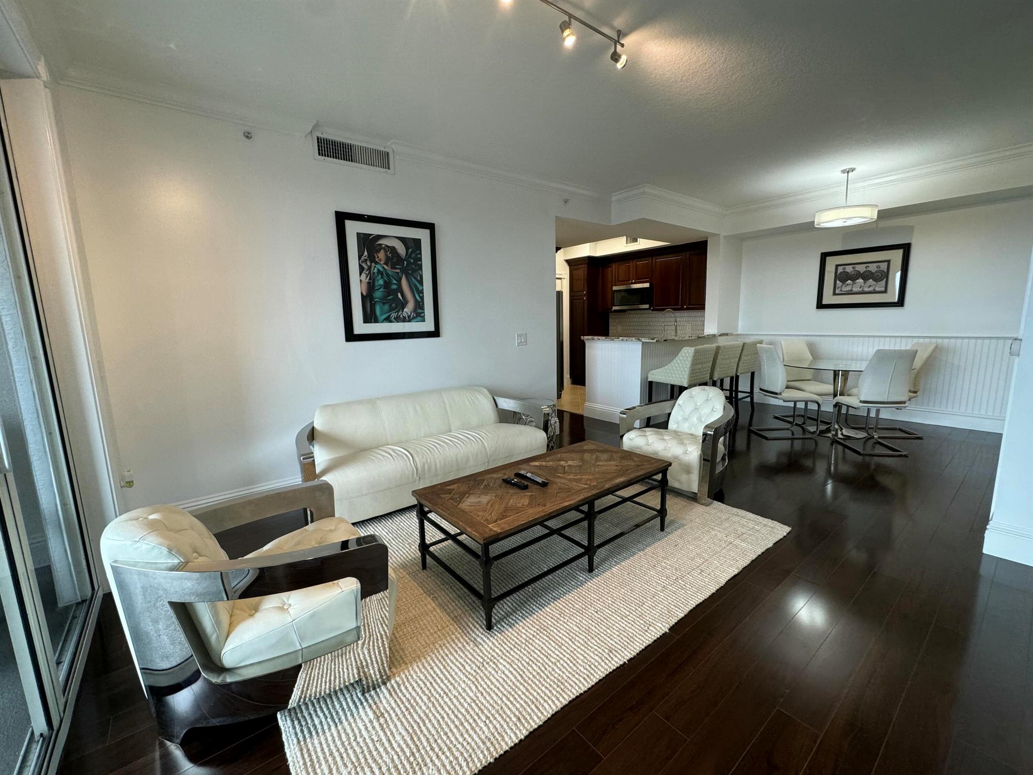 Renovated Penthouse, bright and spacious with hardwood flooring and crown moldings throughout, stainless steel appliances, new granite counter top with breakfast bar in the kitchen, designer bathrooms. Washer and dryer inside the unit. Cable, Internet and water are included, Two car assigned parking inside the garage. Excellent amenities, 3 pools, hot tub, award winning club house, fitness center, indoor basketball court. Close to shops, fine dining and the beach.MOTIVATED SELLER