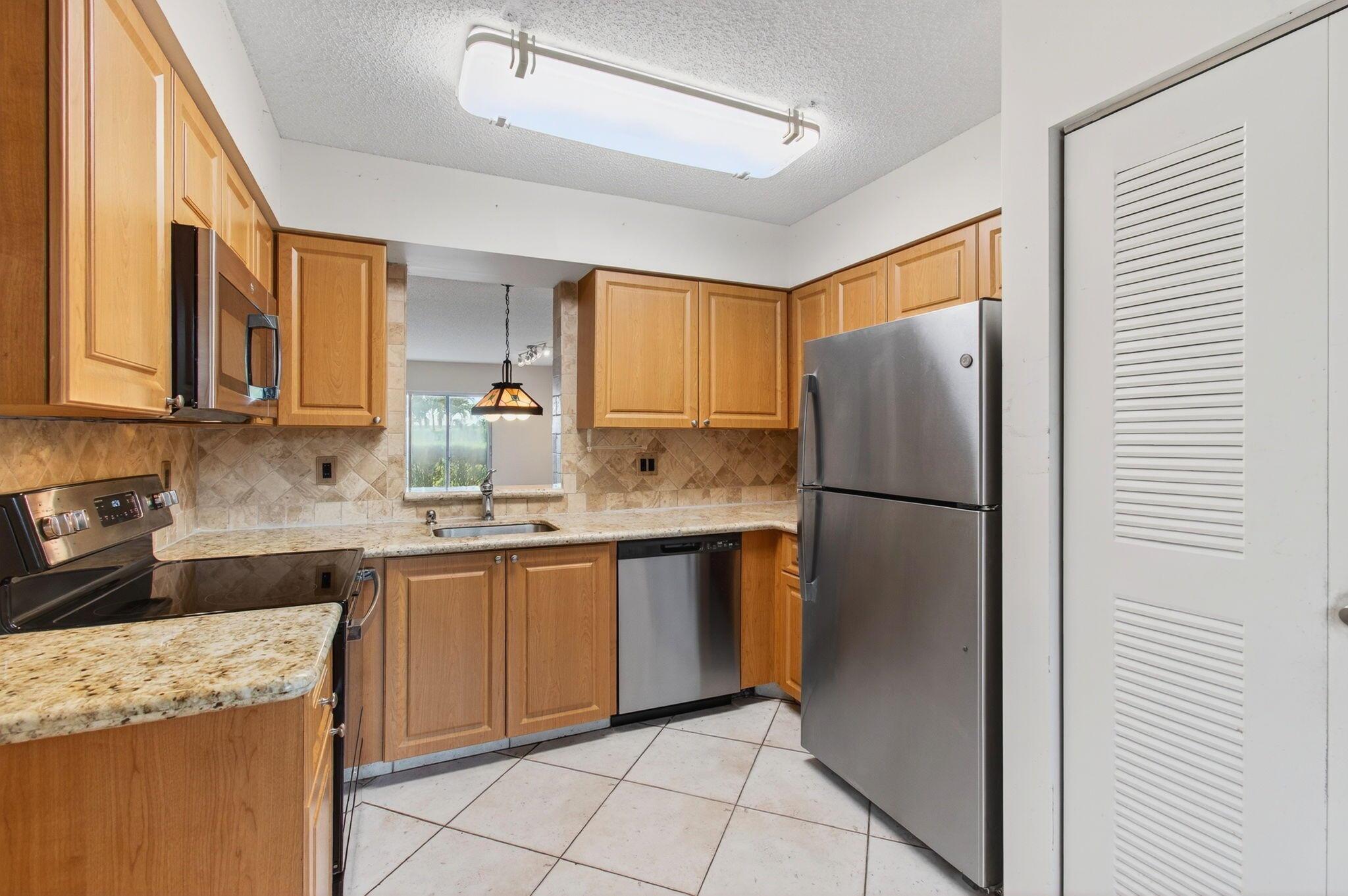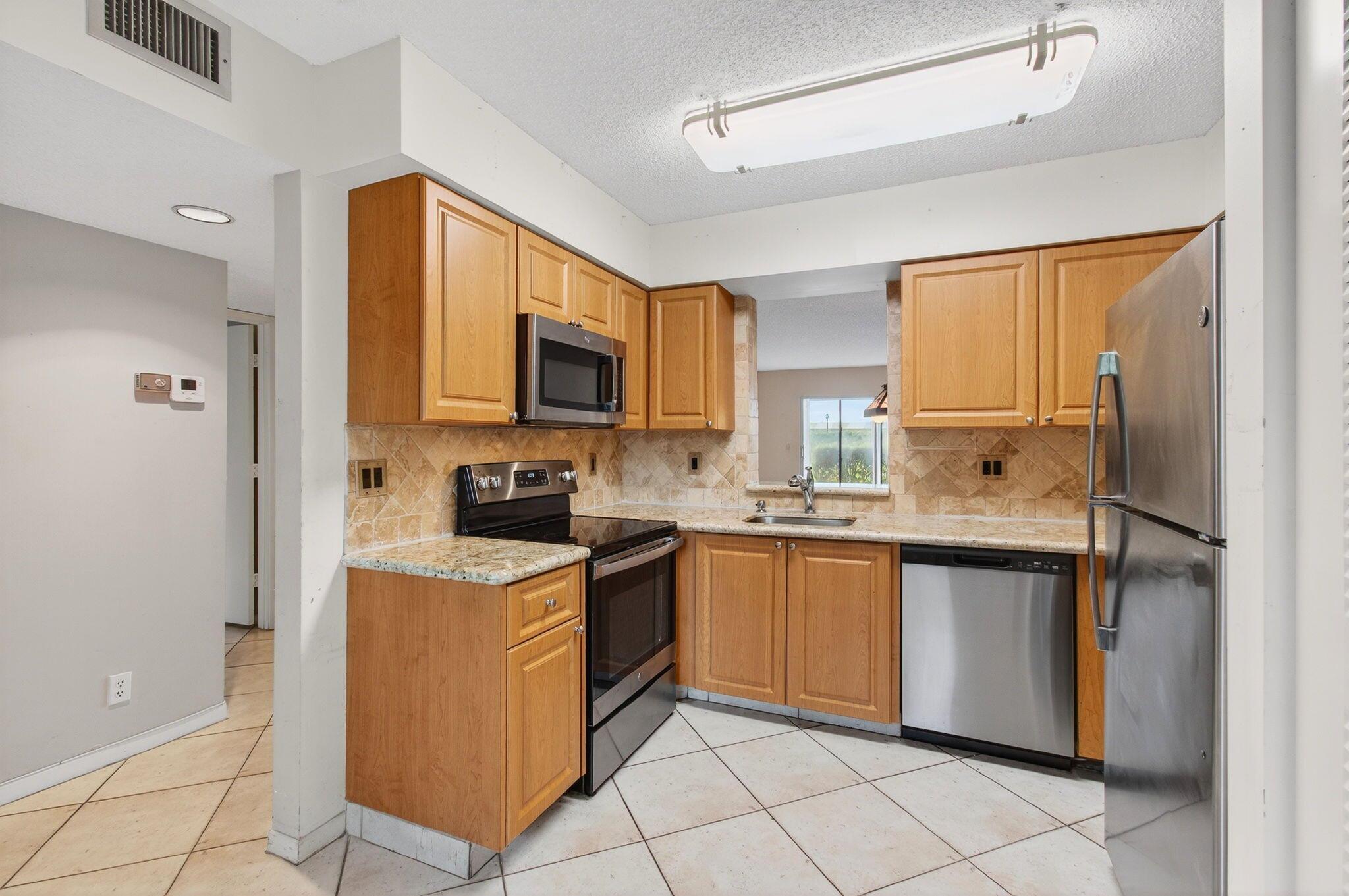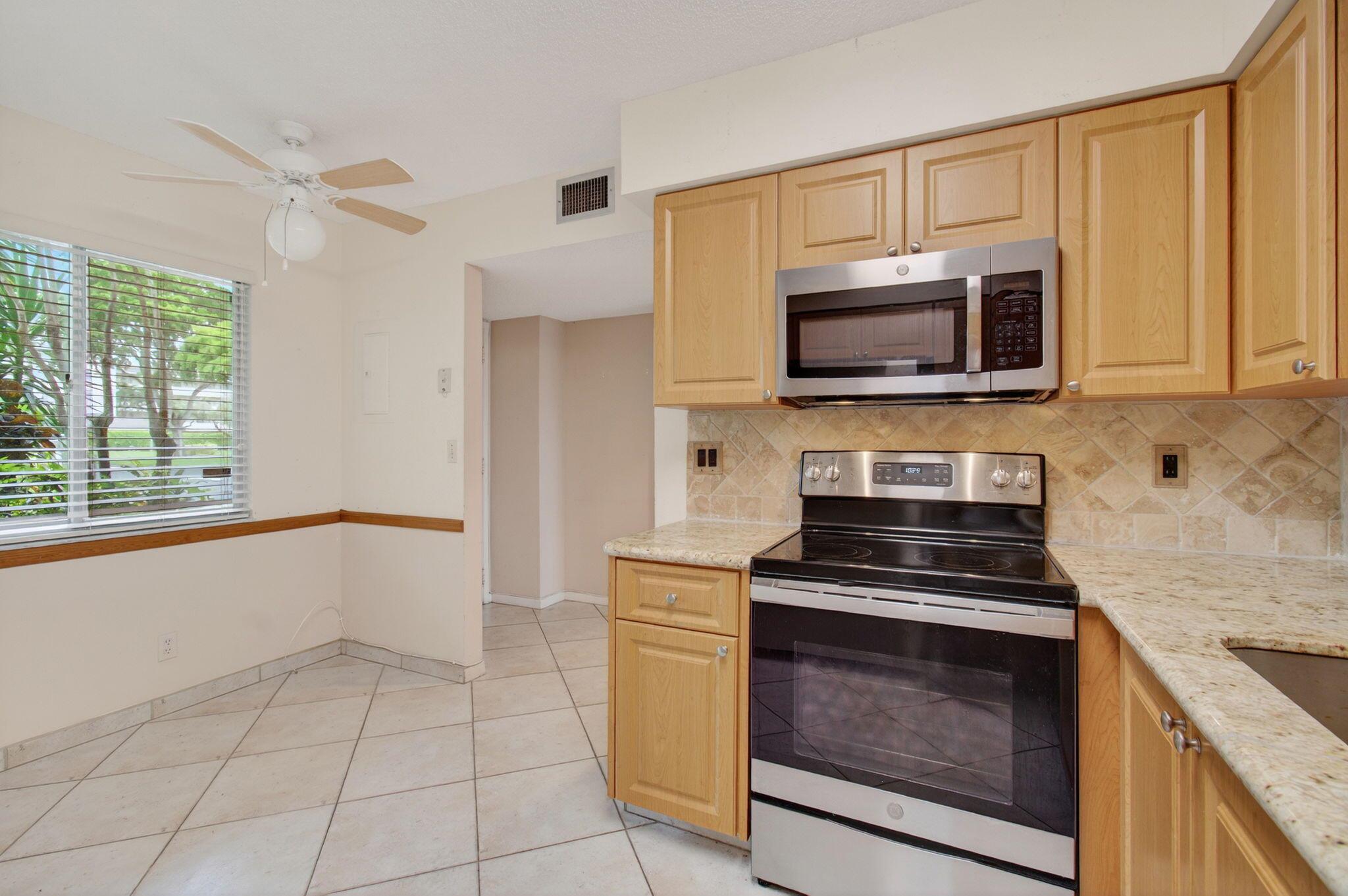HUNTINGTON LAKES---PRESTIGIOUS, SUPER ACTIVE ADULT COMMUNITY--55+.Welcome to section 3 of Huntington Lakes, a Tranquil location. Immerse yourself in the serene community of Huntington Lakes, located in the sought-after locale of Delray Beach, Florida. Promising comfortable living, the unit situated on the ground floor boasts enduring tiles expanded throughout the entire domicile, including the inviting patio.Venture inside to discover a kitchen fittingly designed for culinary enthusiasts. Outfitted with granite countertops, a captivating stone backsplash, and gleaming stainless steel appliances, the kitchen effortlessly melds style and functionality. An eat-in area, flooded by natural light from the large window, provides the perfect setting for morning coffee.