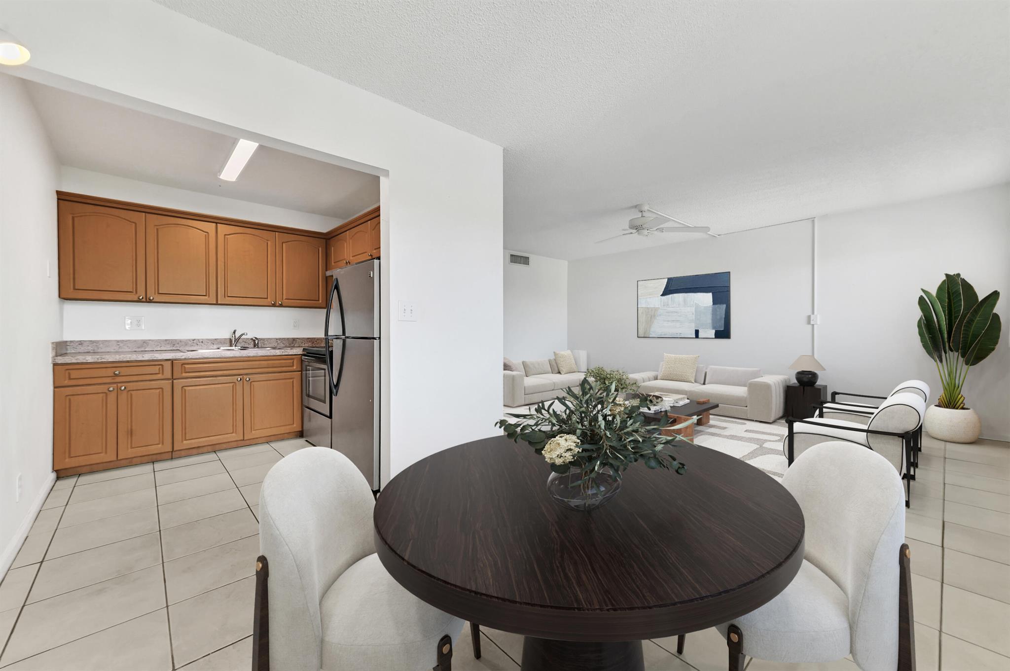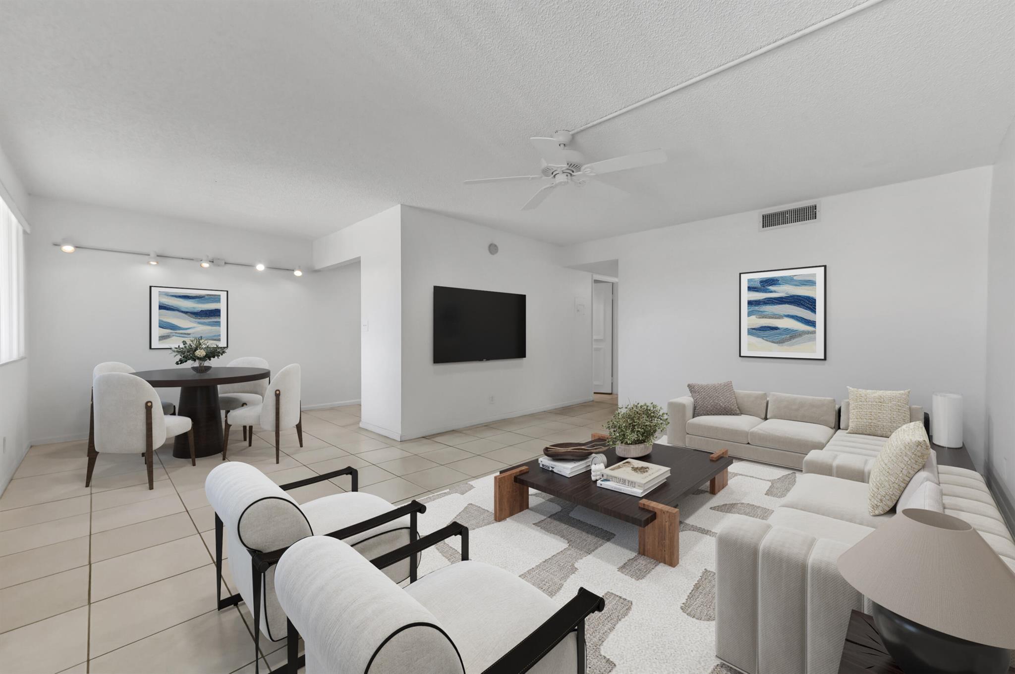 Experience the perfect blend of comfort and convenience in this deceivingly spacious, move-in-ready condo, an ideal retreat for a 55+ adult. This beautifully updated, 2-bedroom, 1.5-bath unit offers a fresh and modern feel. The entire living area, along with both bedrooms, is finished with elegant ceramic tile flooring, creating a seamless and easy-to-maintain living space. The bathrooms have vanities and stylish top-flush toilets.