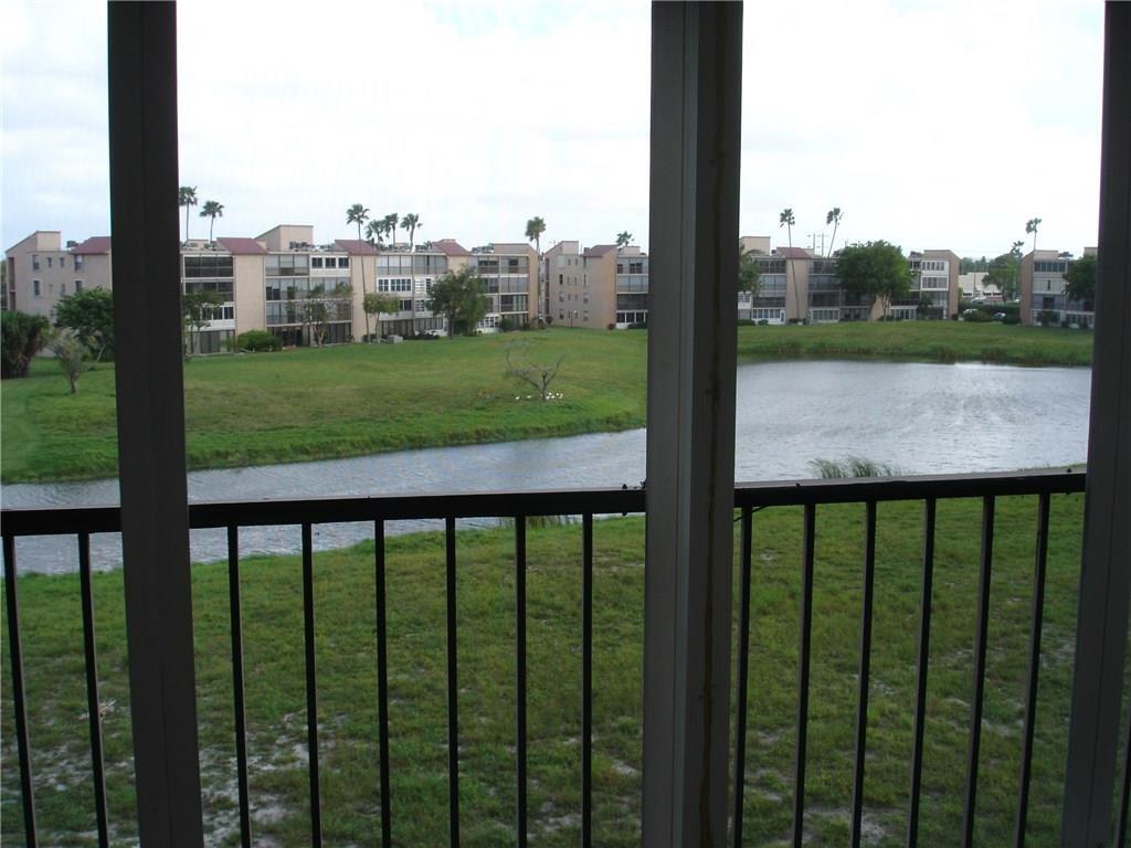 LOCATION! LOCATION! LOCATION! AMAZING WATER VIEWS FROM THIS 4TH FLOOR CORNER UNIT! LARGE TILED PATIO WITH ROLL-UPS. NORTH/SOUTH EXPOSURE! THIS 2 BEDROOM 2 BATH CONDO IS SPACIOUS & BRIGHT WITH THE EXTRA WINDOWS! EAT IN KITCHEN. WASHER AND DRYER IN THE UNIT. WALK IN CLOSET IN MASTER BEDROOM. HURRICANE WINDOWS! PET FRIENDLY COMMUNITY ALLOWS 2 PETS UNDER 20 LBS EACH. NEW FRONT DOOR TO BE INSTALLED BY ASSOCIATION. EXTRA STORAGE UNIT. WALKING DISTANCE TO POOL/TENNIS. CLOSE TO NEW PUBLIX, SHOPPING, WALGREENS, RESTAURANTS, & TRANSPORTATION! ASSOCIATION STATES 55+ COMMUNITY, $40,000 INCOME AND 650+ CREDIT SCORE.