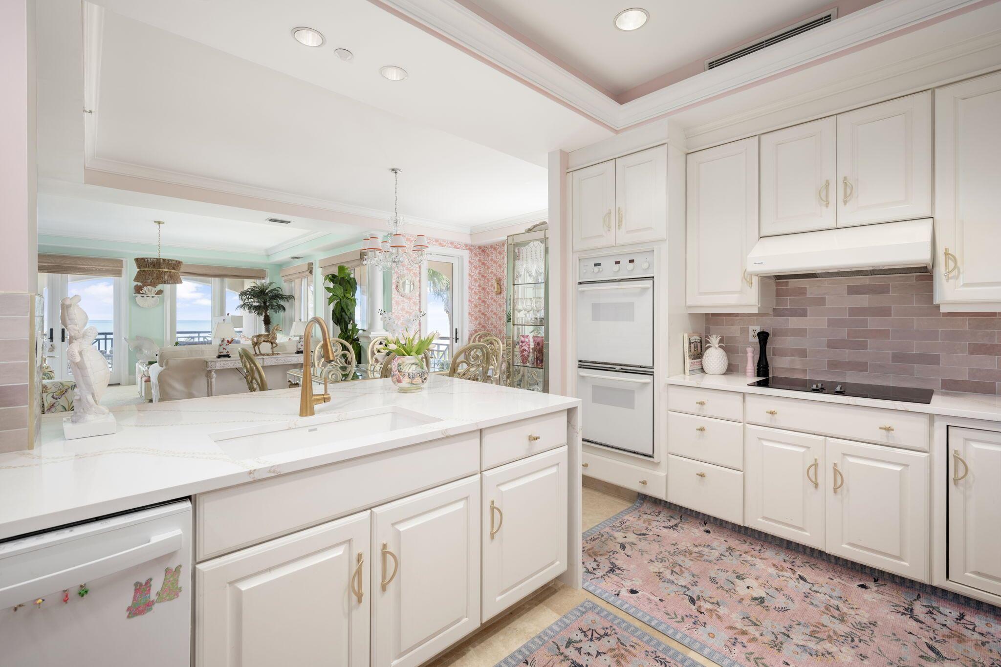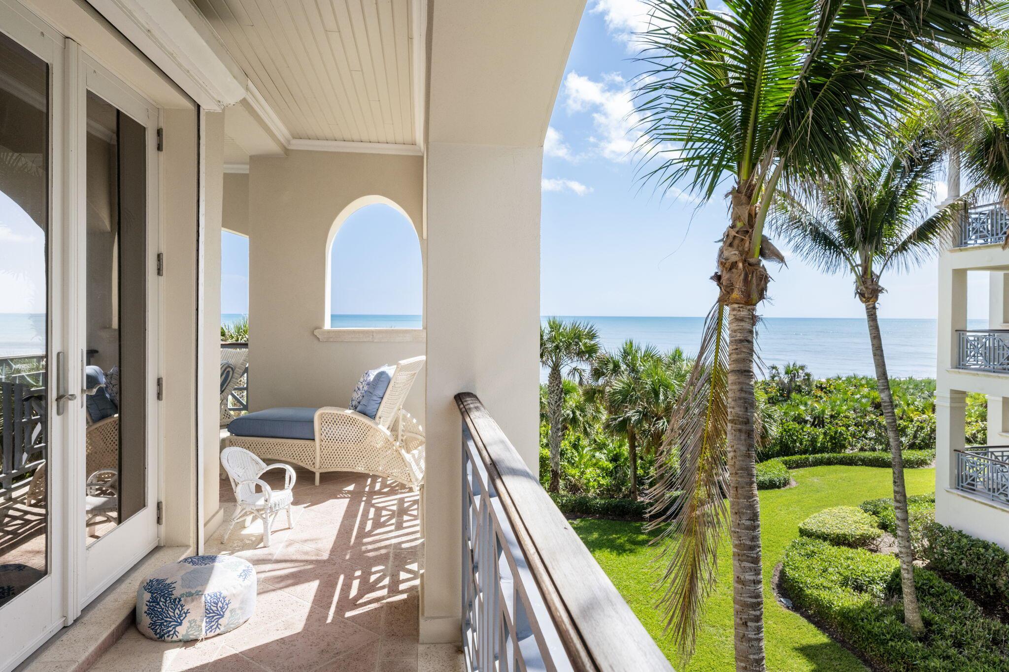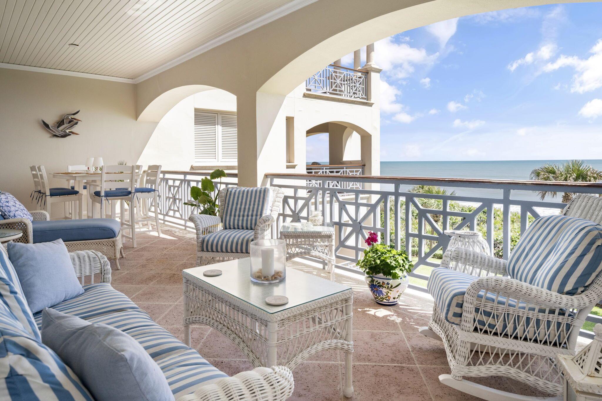 Oceanfront luxury with breathtaking panoramic views! This stunning condo offers a wraparound porch with full southern exposure--perfect for sun-soaked mornings and ocean breezes. Just steps from the beach, enjoy 10-foot ceilings, extensive molding, and an open, airy layout. Located in a guarded, golf community offering privacy, security, and top-tier amenities. Live the fabulous Florida lifestyle in style and comfort with unmatched views and coastal elegance. A rare gem!