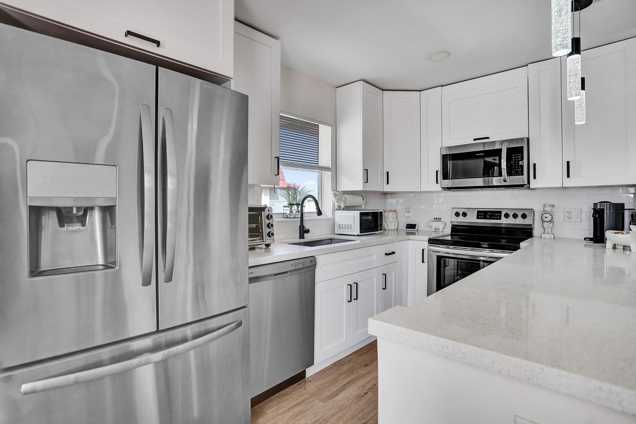 THE ONE YOU'VE BEEN WAITING FOR! Water & Pool VIEWS and RENOVATED in 2022. Move right in to this 2nd floor unit overlooking the canal and pool. Walk up or take the elevator. Enter to your updated eat-in kitchen and great room. Open concept with plenty of square footage to entertain. Two spacious bedrooms in rear of unit; primary has large WIC & each has access to covered/screened balcony overlooking canal & pool. Stacked W/D unit in balcony utility closet. Two full updated baths. Kings Point offers indoor & outdoor pools, golf, tennis, manned gate, theater, restaurants, bus service and tons more! One assigned space per unit. Must own 2 years before leasing. Located in Delray Beach close to shopping, restaurants, shops & major roadways. Call today for private showing!