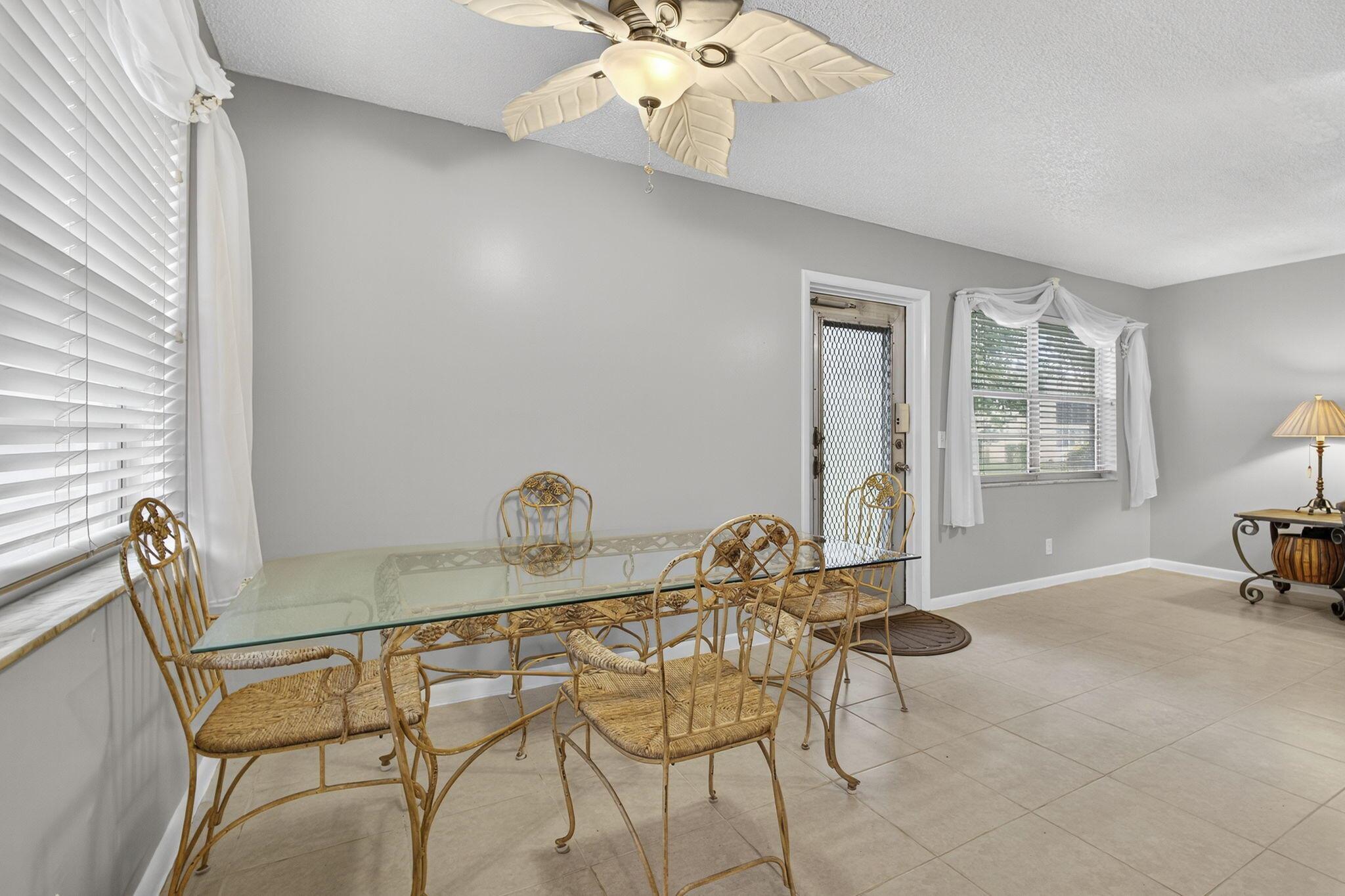 SAY HELLO TO YOUR DREAM RETREAT 2 BED, 1 1/2 BATH GROUND FLOOR UPDATED CORNER CONDO. FURNISHED AND READY FOR YOU TO MOVE INTO. LOCATED INTHE SOUGHT AFTER CENTURY VILLAGE OF W.P.B., A GATED COMMUNITY FOR ACTIVE ADULTS 55+ . EMBRACE THE FLORIDIAN FLAIR WITH ITS BRIGHT AND AIRY SPACES THAT CREATE A WELCOMING ATMOSPHERE. KITCHEN IS COMPLETE WITH QUARTZ COUNTERTOPS AND STAINLESS STEEL APPLIANCES. CENTRAL AIR TILE THROUGHOUT STYLISH FURNITURE PLENTY OF CLOSET SPACE.ENJOY BEAUTIFUL GARDEN VIEW. STEPS TO THE DORCHESTER POOL AND CLOSE TO HASTINGS FITNESS CENTER. WELL MANAGED ASSOCIATION. laundry room, assigned parking spot plus visitor parking available; local bus for errands/shopping both within & outside the village. COME & ENJ RESORT STYLE LIVING IN THIS VERY CLEAN &SUNFILLED UNIT. CLU
