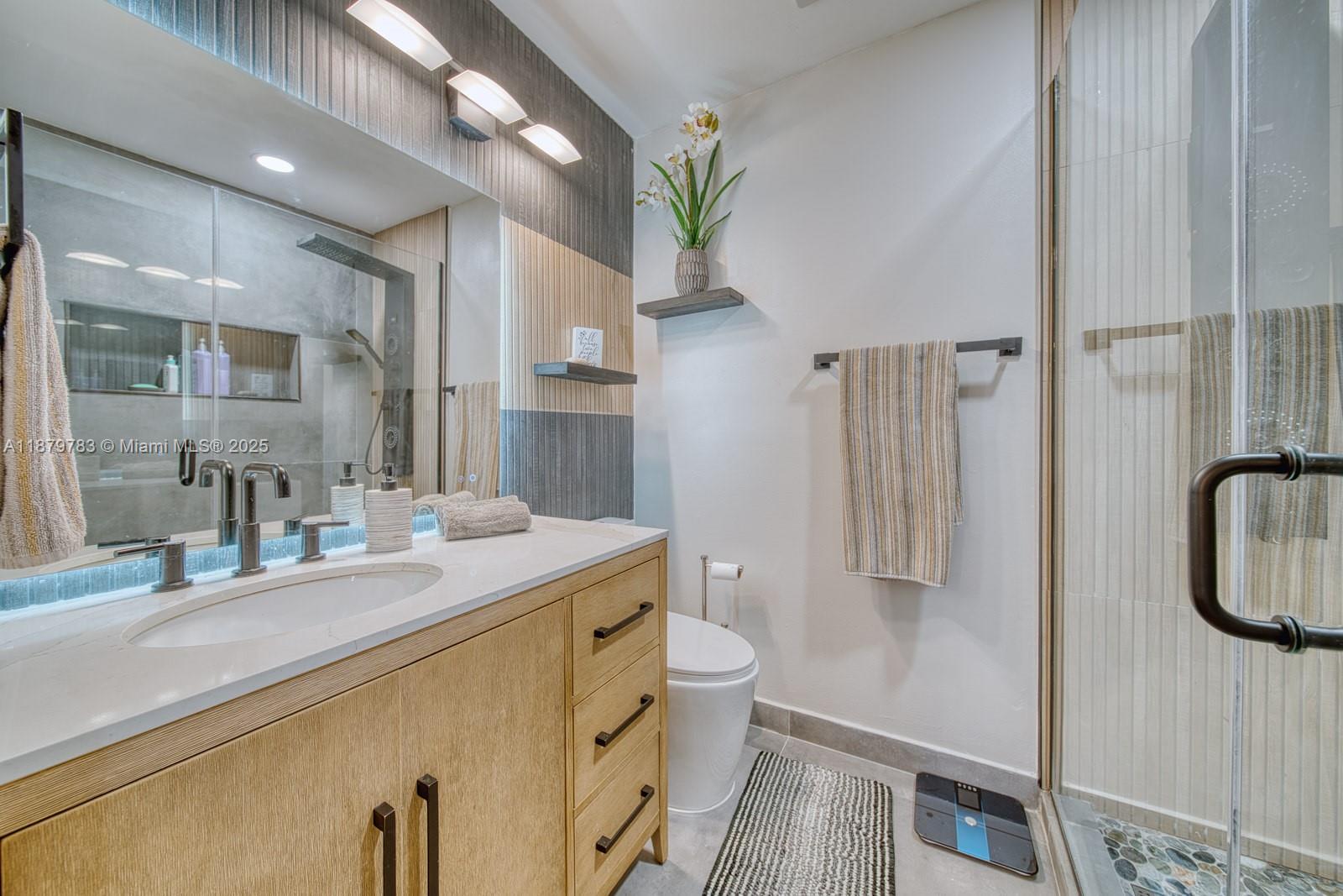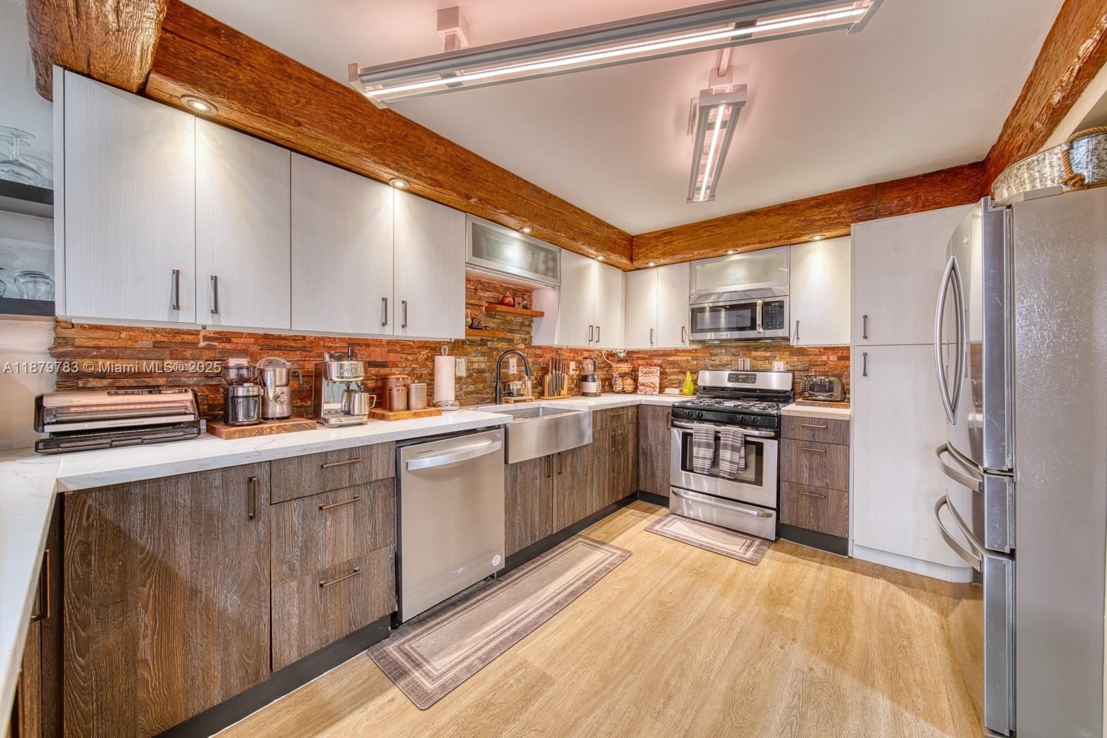 One of a kind Snapper Village unit with one of the largest and beautifully paved patios in the community. This rarely available rustic chic townhome has been fully remodoled and well taken care of by it's owners for the last 10 years.New impact windows throughout. The kitchen features Calcatta Quartz countertops, undermount lighting, and faux beams. New LVP flooring on both floors.Main ensuite bathroom has been designed with high end tile and glass shower enclosure featuring a multijet shower system. Guest bathroom boasts a jacuzzi tub, large format tiles, and beautiful white cabinets.A spacious half bathroom downstairs adorned with a unique glass sink and custom wood countertops welcome all guests. The ceilings have been upgraded with led lighting in the living areas. Pet-friendly.
