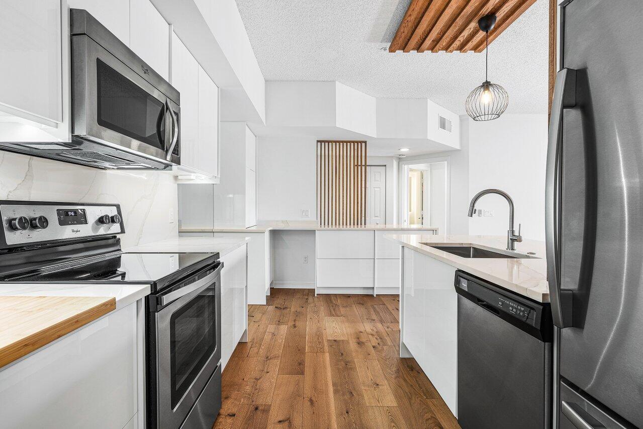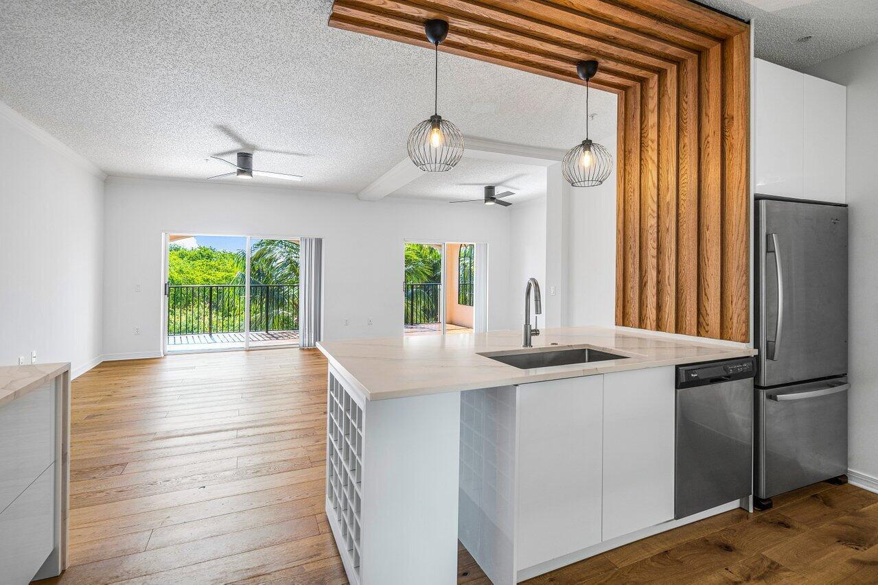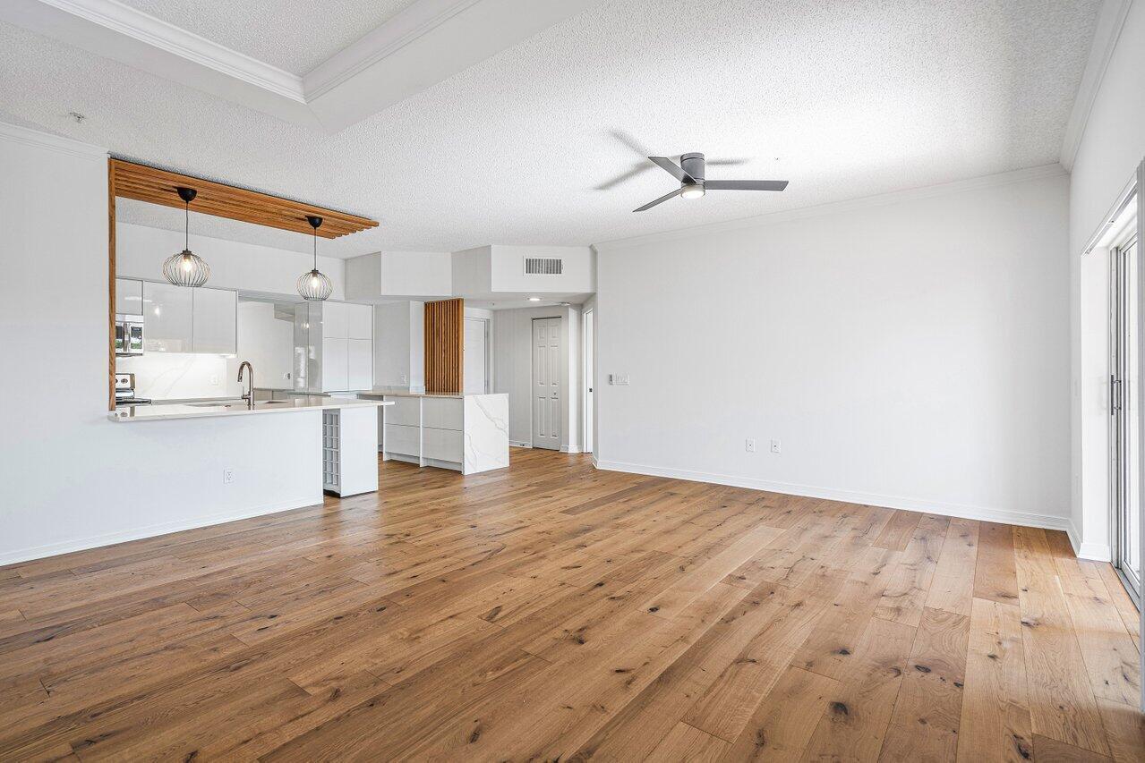 Sophisticated corner penthouse residence with walls of windows and timeless oak floors throughout. The reimagined open layout highlights a chef's kitchen with Stainless Steel Whirlpool Appliances, extended Golden Calcutta Quartz counters and custom cabinetry. Enjoy the convenience of an in-unit washer/dryer and relax on the expansive tiled patio with serene preserve views and accordion shutters. Thoughtfully curated design and refined finishes elevate this beautifully remodeled home.Amenities include clubhouse, pool, fitness, tennis, pickleball, library, picnic area, on-site manager. Plus Car Wash area by Bldg 4. Parking spaces: 620 (covered) & 878. Leasing ok, 2x/year, 3 month min. 2 pets allowed. AC 2018.