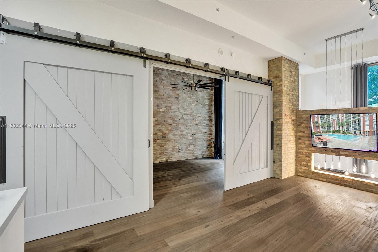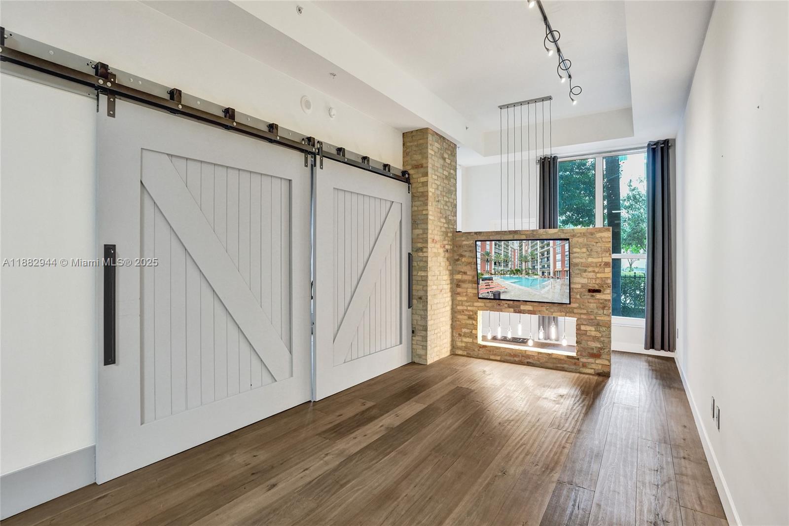 One-of-a-kind 1st floor unit with 12' ceilings in one of downtown WPB's premier buildings. Open floorplan with incredible upgrades including reclaimed brick walls, wide-plank wood flooring, 13' wide custom barn doors (creating a separate sleeping area when closed), concrete counter tops and private direct exterior entry which is perfect for pets. Assigned, covered parking on 1st floor steps from unit. NEW AC. Resort-style, full service luxury building with a 24-hr concierge/doorman, valet, infinity pool, fitness center, sauna/steam/massage rooms, outdoor/indoor kitchens and more! All is included in HOA payment along with exterior ins, water, cable & internet. The Square, Kravis Center, Brightline station and Convention center right outside your door. 1.5 miles to beach. 2 pets-60 lbs max