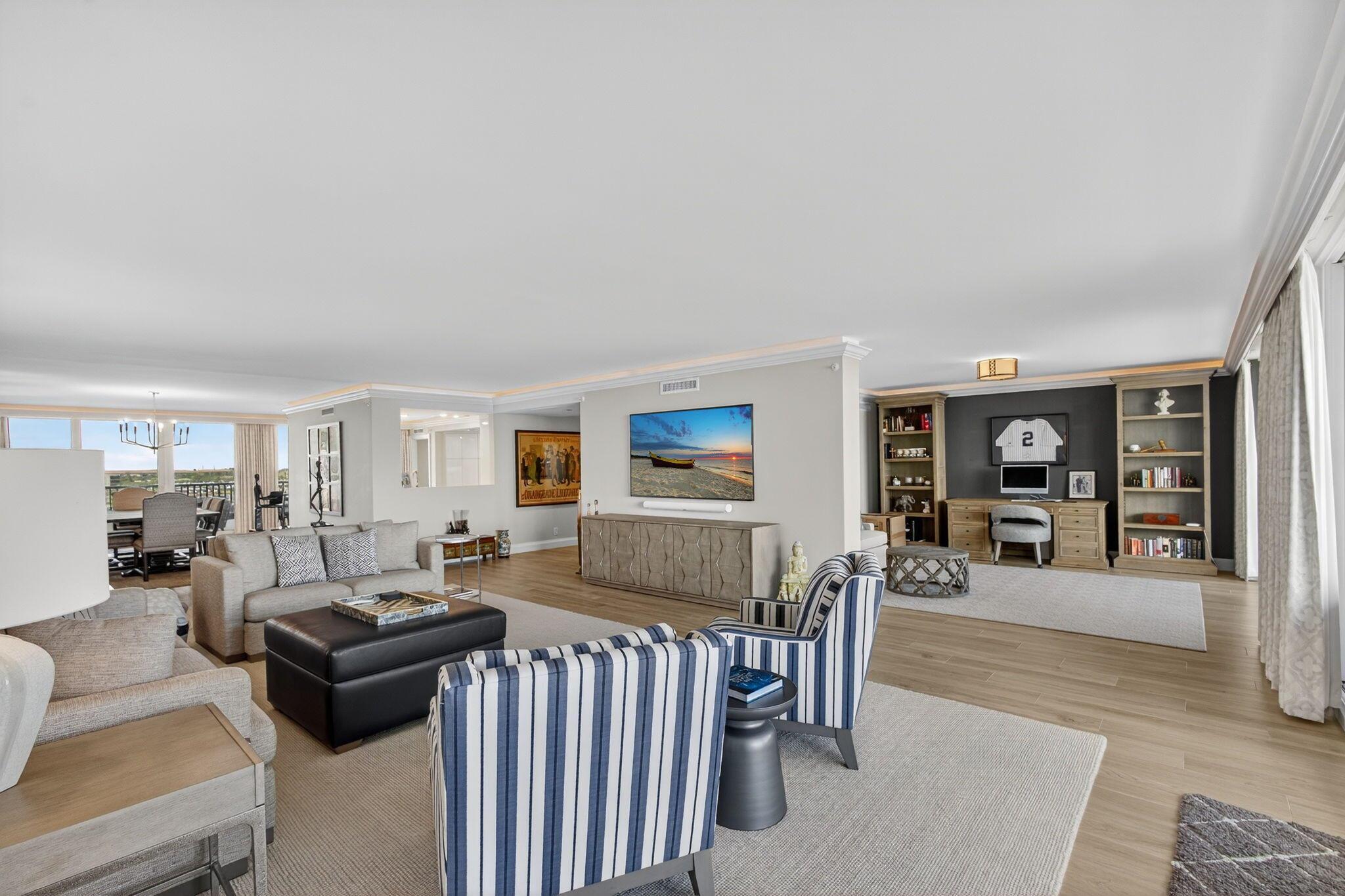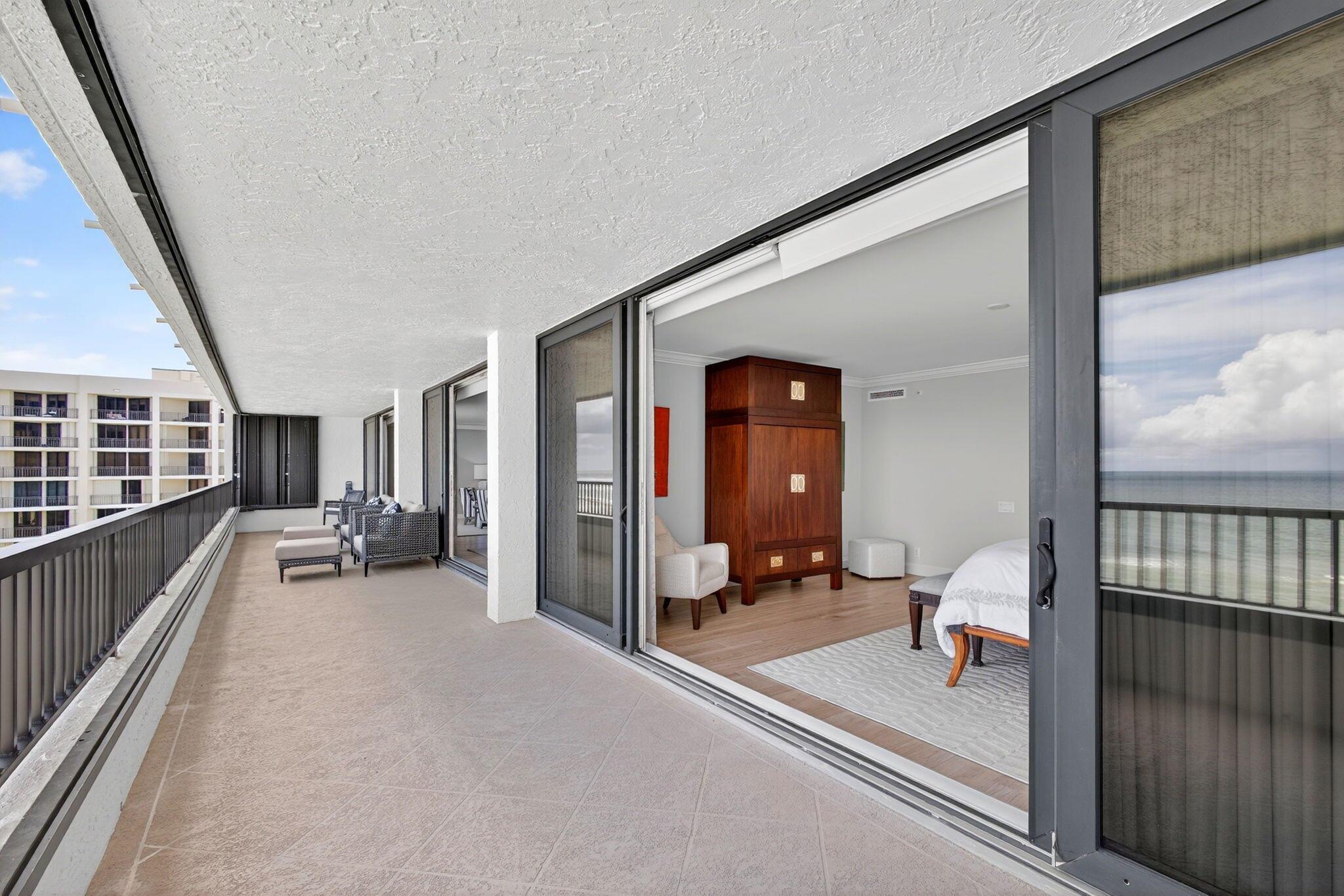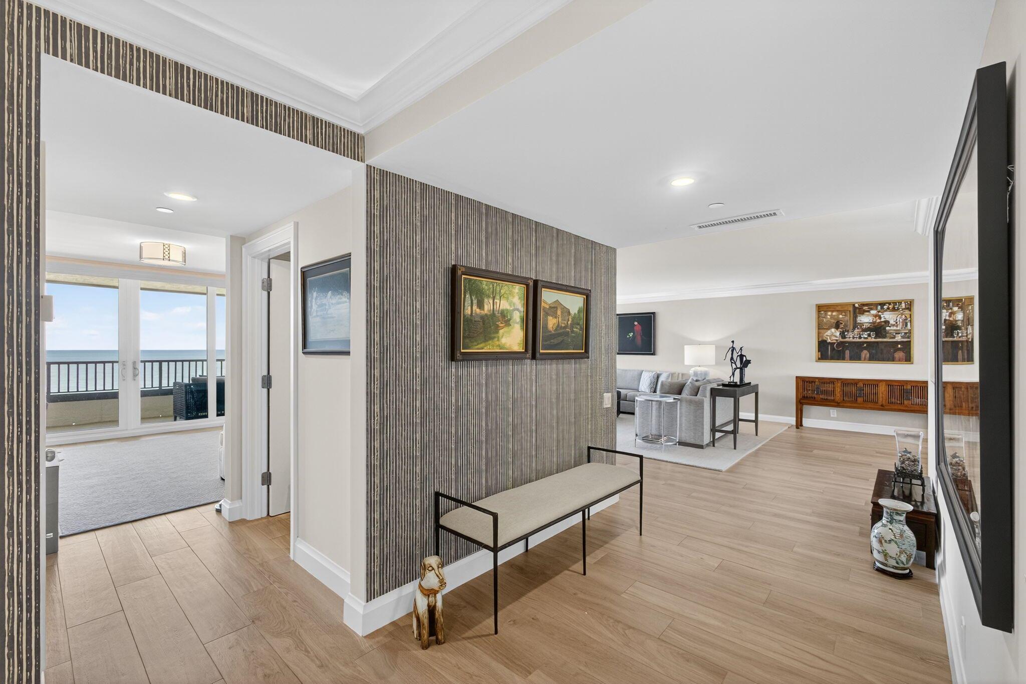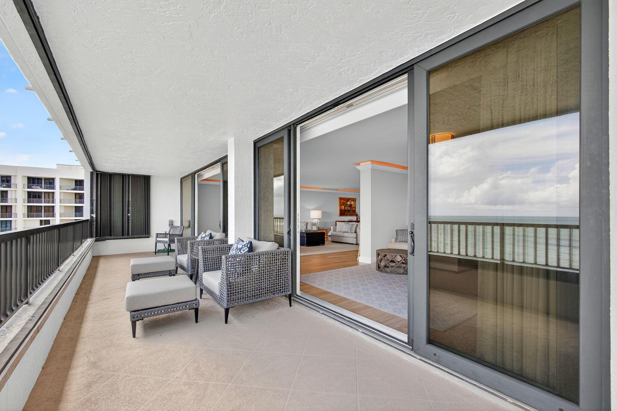 A rare opportunity awaits to own a bespoke residence within one of Jupiter Island's most exclusive enclaves. This fully reimagined 2 bedroom 2 1/2 baths home with a private office offers refined coastal living framed by sweeping views of both the Atlantic Ocean and Intracoastal Waterway. Thoughtfully designed with an open, airy floor plan, this residence exudes understated elegance. Custom finishes and meticulous craftsmanship are showcased throughout, from serene white on white kitchen with quartz countertops to expansive living areas that flow seamlessly to terraces on both sides of the residence. Impact glass, custom window treatments provide comfort and peace of mind. With only 28 residences in the building, privacy and exclusivity are paramount.