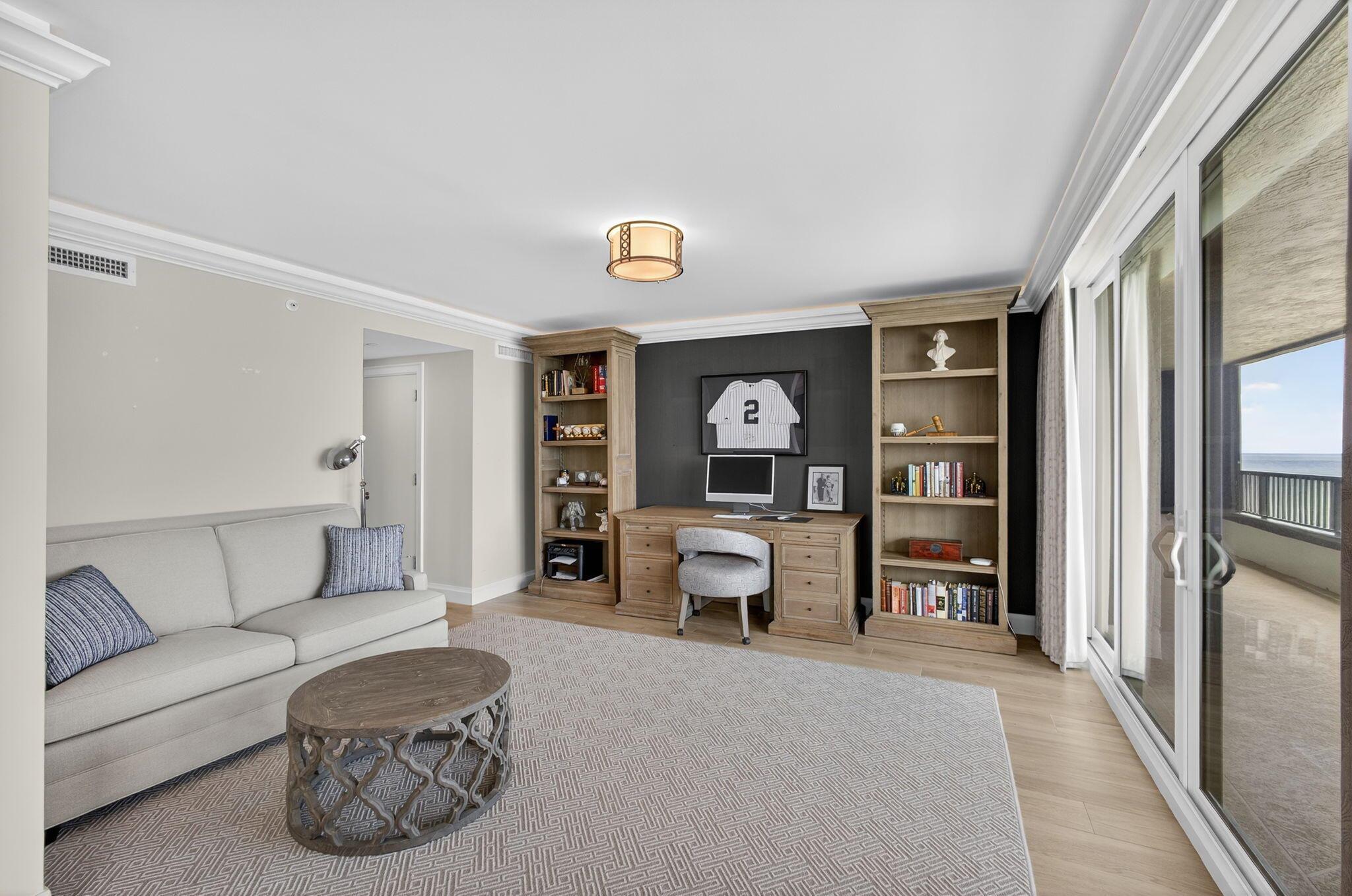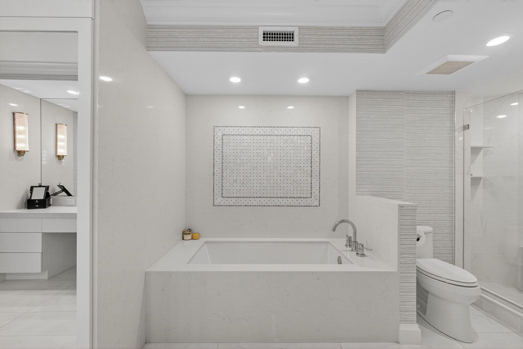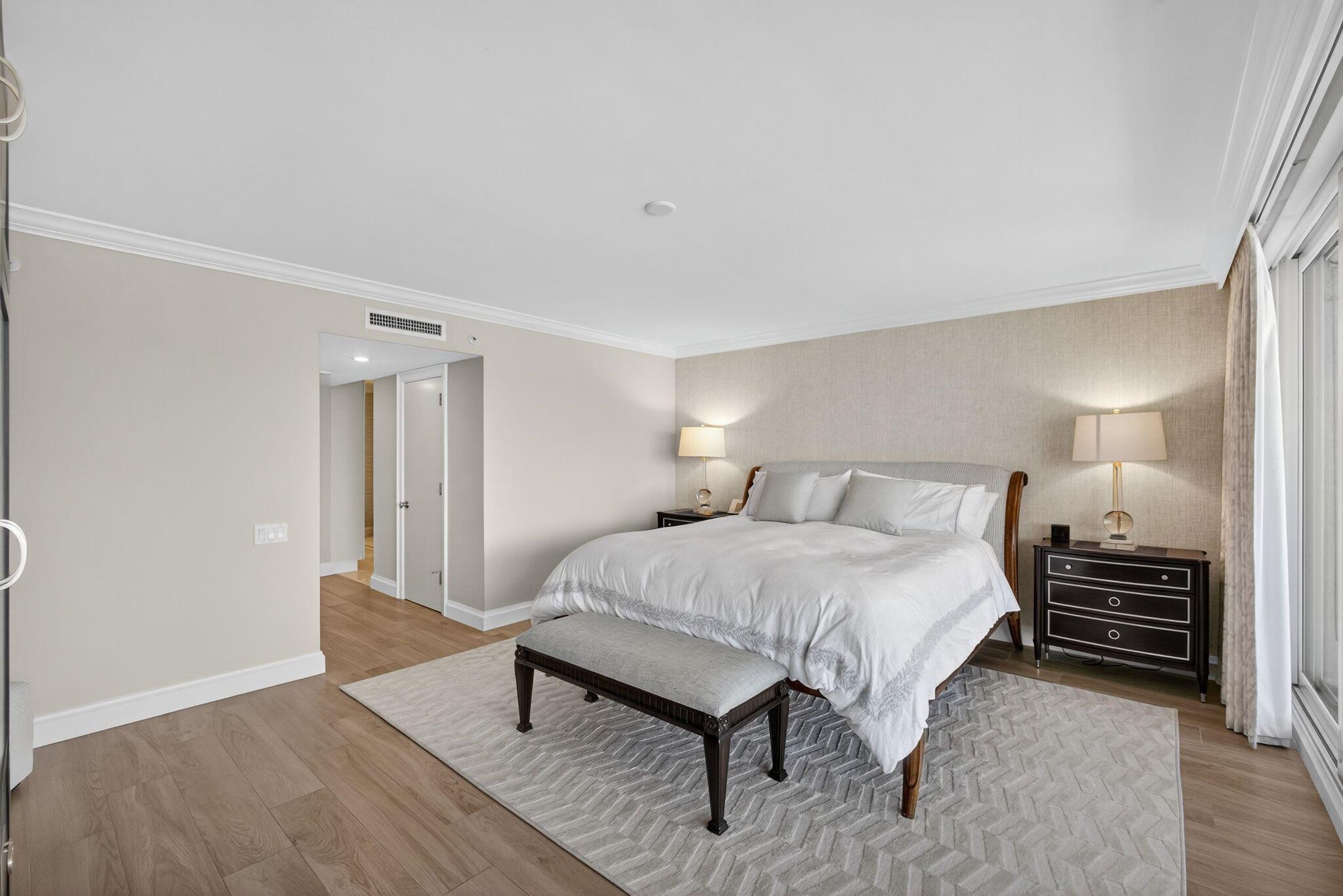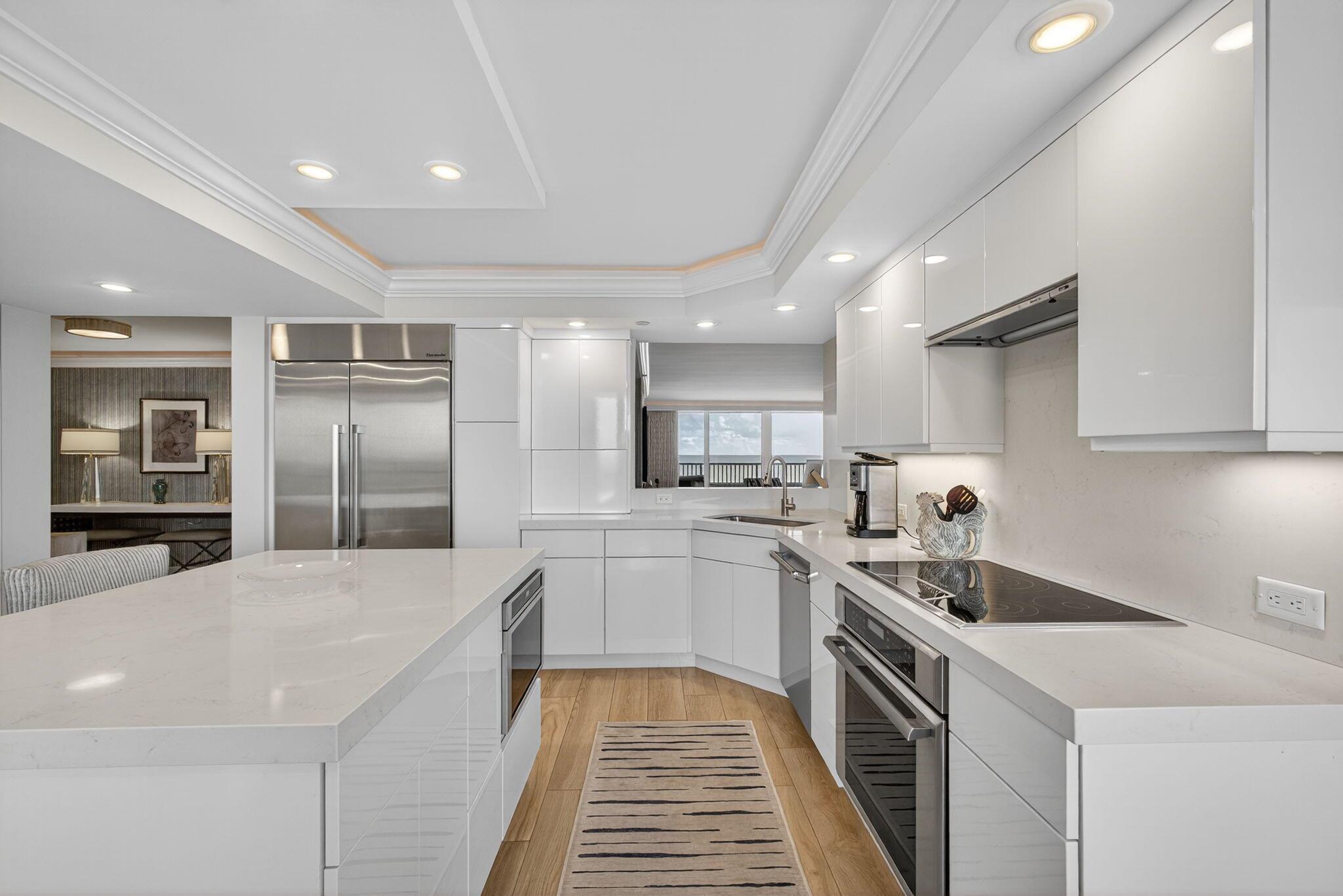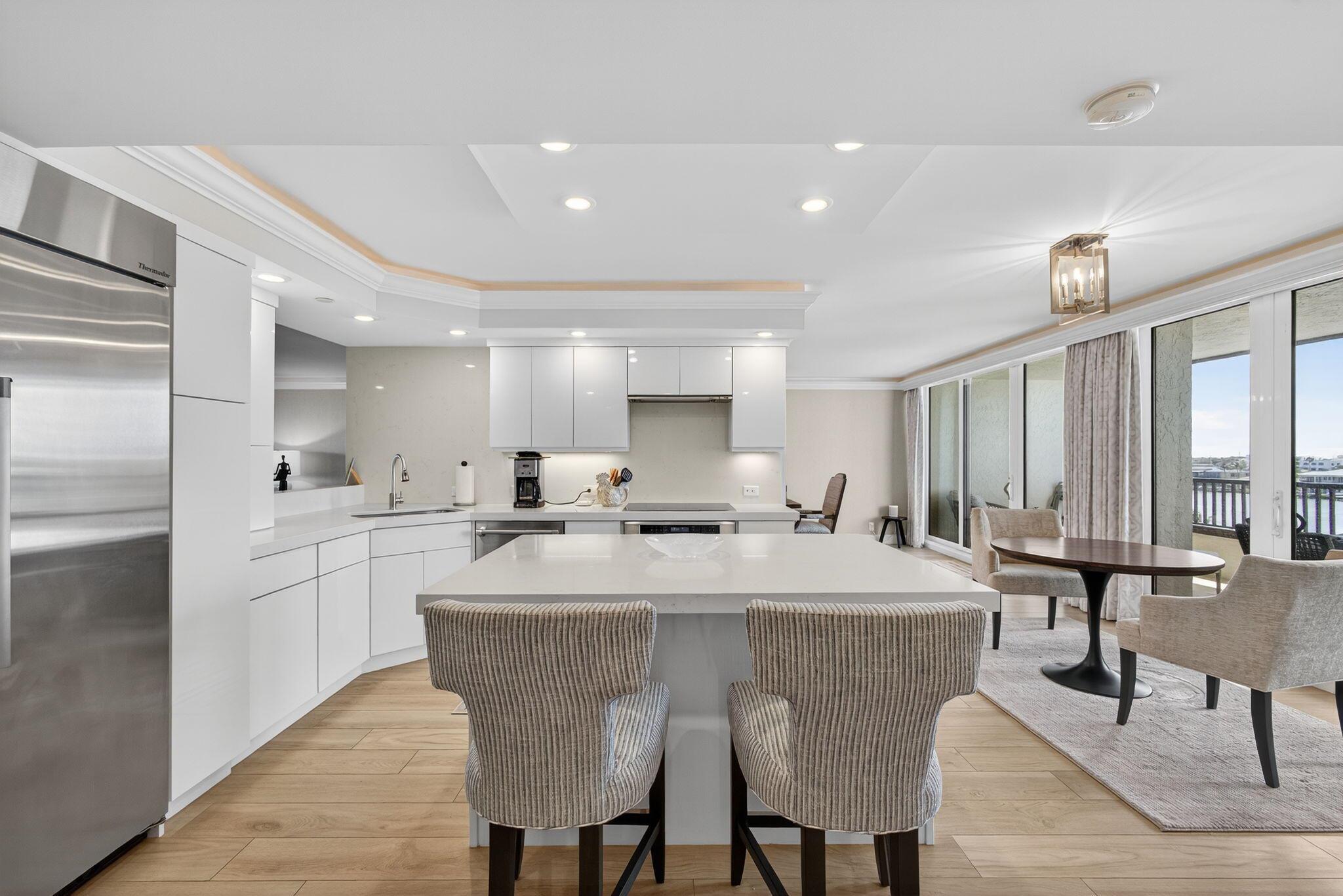 A rare opportunity awaits to own a bespoke residence within one of Jupiter Island's most exclusive enclaves. This fully reimagined 2 bedroom 2 1/2 baths home with a private office offers refined coastal living framed by sweeping views of both the Atlantic Ocean and Intracoastal Waterway. Thoughtfully designed with an open, airy floor plan, this residence exudes understated elegance. Custom finishes and meticulous craftsmanship are showcased throughout, from serene white on white kitchen with quartz countertops to expansive living areas that flow seamlessly to terraces on both sides of the residence. Impact glass, custom window treatments provide comfort and peace of mind. With only 28 residences in the building, privacy and exclusivity are paramount.