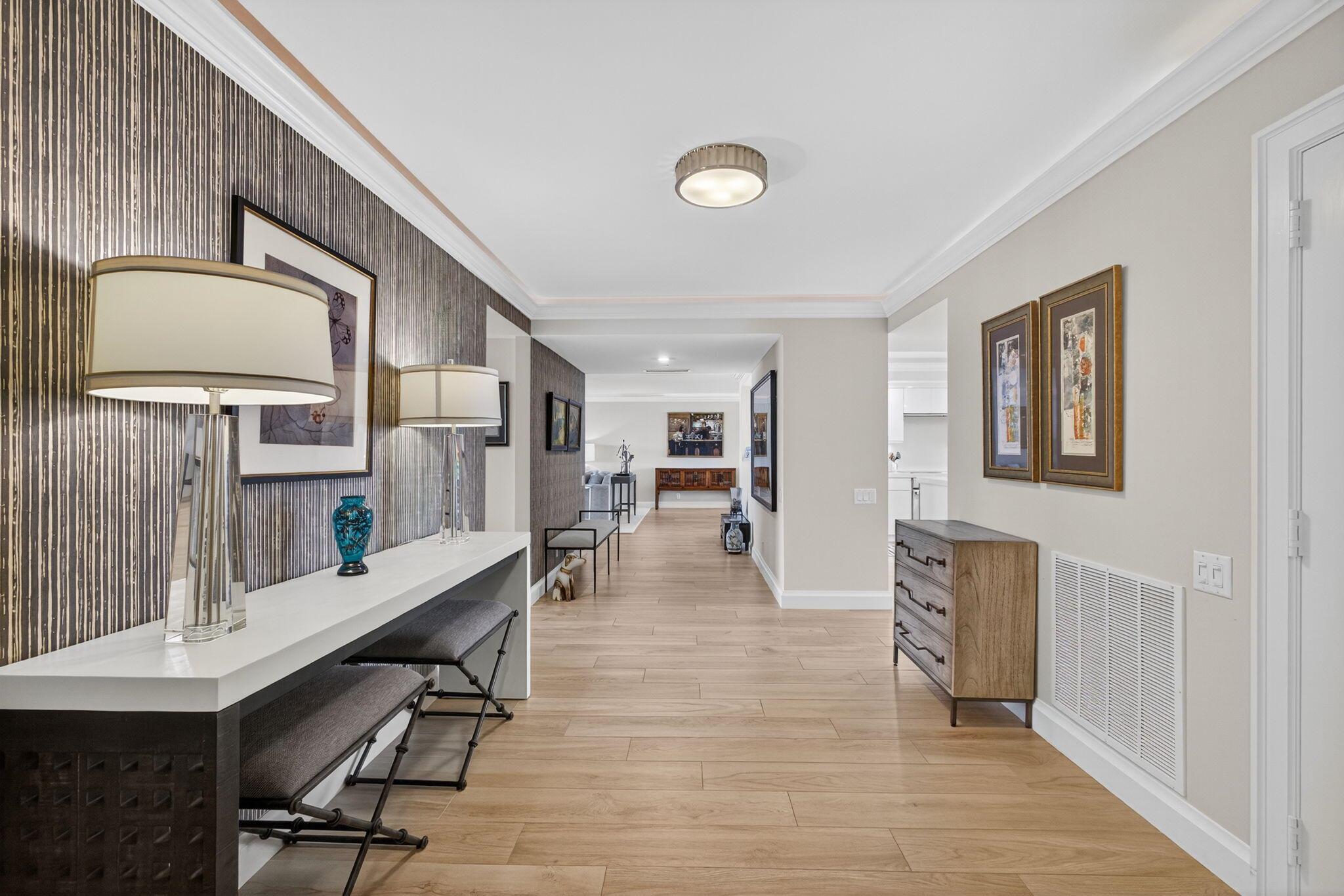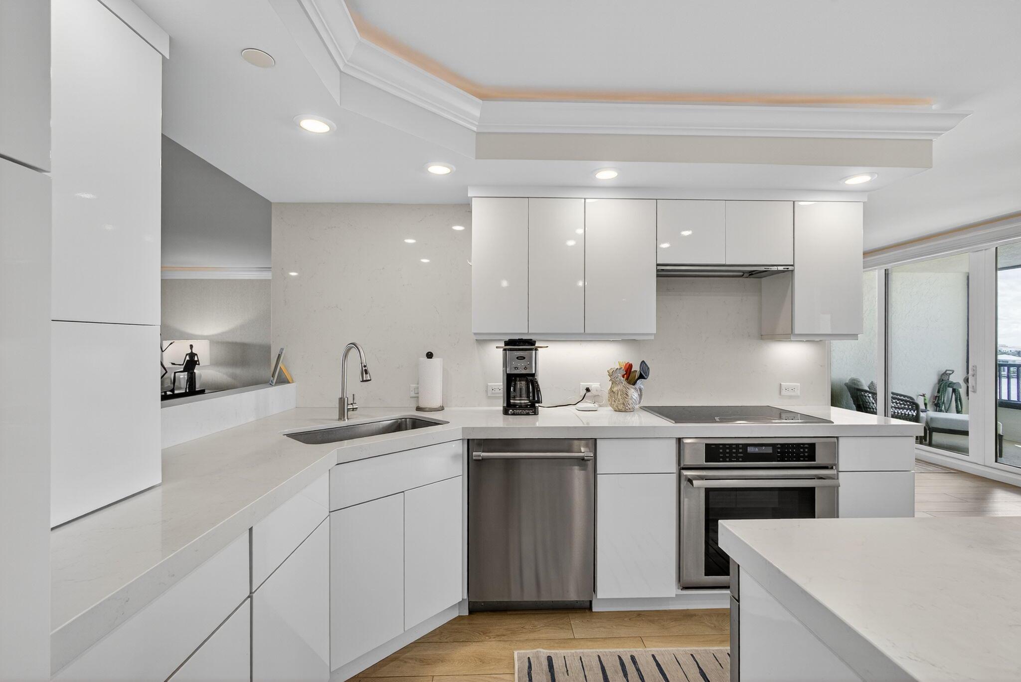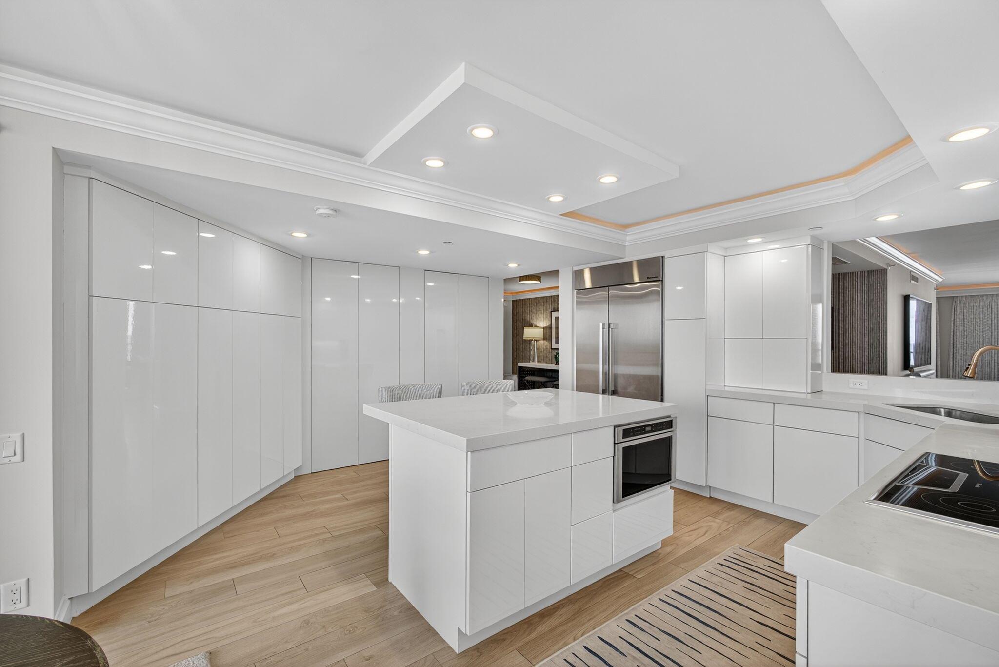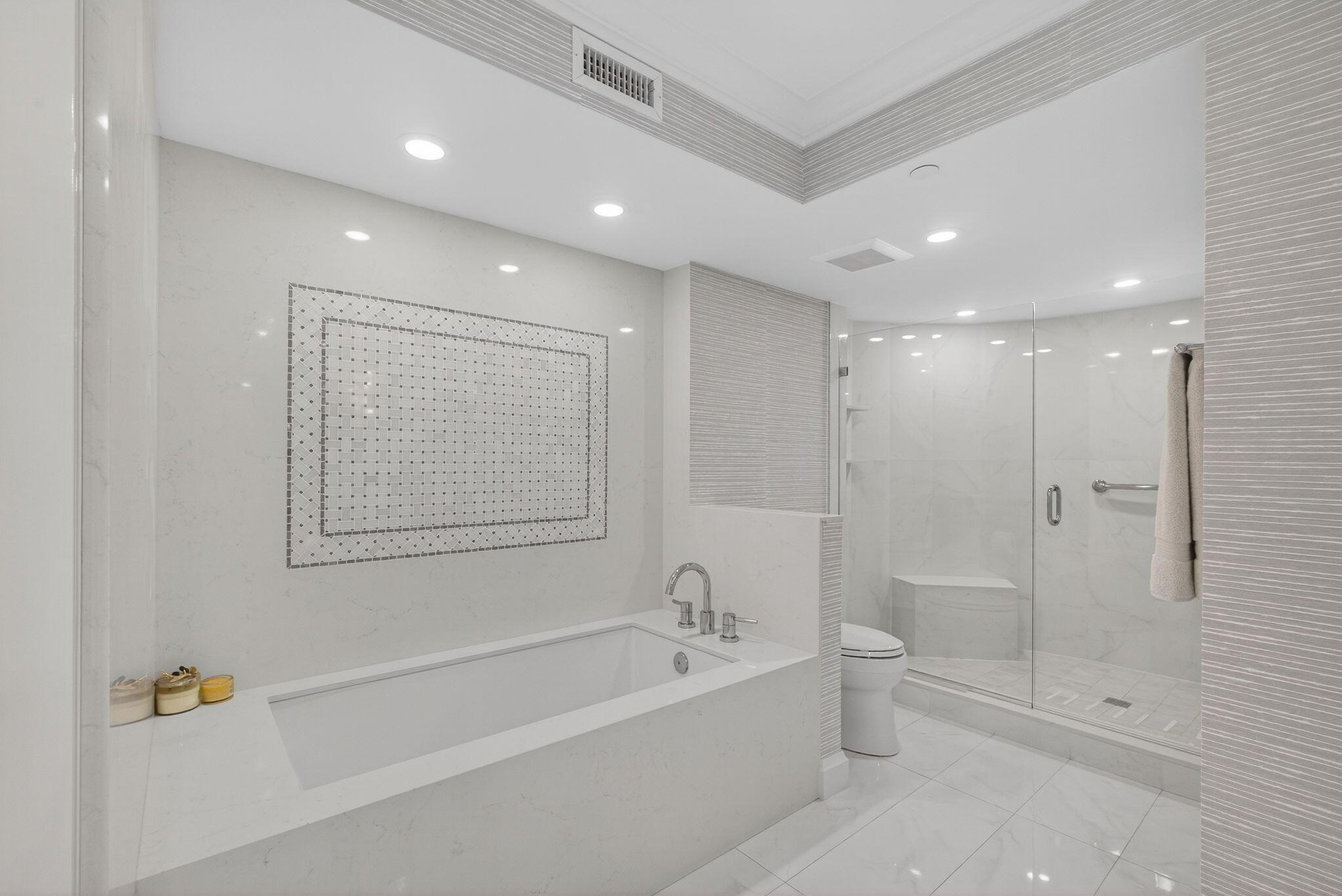 A rare opportunity awaits to own a bespoke residence within one of Jupiter Island's most exclusive enclaves. This fully reimagined 2 bedroom 2 1/2 baths home with a private office offers refined coastal living framed by sweeping views of both the Atlantic Ocean and Intracoastal Waterway. Thoughtfully designed with an open, airy floor plan, this residence exudes understated elegance. Custom finishes and meticulous craftsmanship are showcased throughout, from serene white on white kitchen with quartz countertops to expansive living areas that flow seamlessly to terraces on both sides of the residence. Impact glass, custom window treatments provide comfort and peace of mind. With only 28 residences in the building, privacy and exclusivity are paramount.