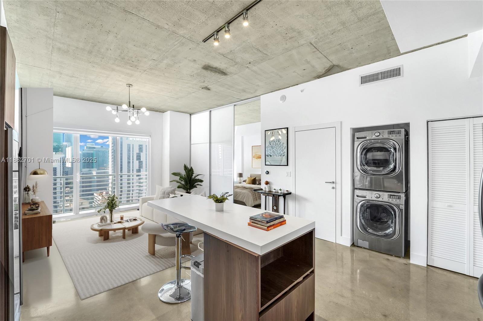 Contemporary 2BR/2BA loft-style condo in the heart of Downtown Miami with incredible skyline and bay views from the 31st floor. Features 10ft ceilings, impact windows, polished concrete floors, custom renovated kitchen with Italian cabinetry, island, stainless steel appliances, built-in XL 122-bottle wine cooler, in-unit washer & dryer, remodeled baths, smart technology and custom closets with great storage. Enjoy resort-style amenities: rooftop & lap pool, spa, fitness center, clubroom, and 24/7 concierge. Steps to Brickell City Centre, Brightline, Kaseya Center, Bayfront Park, Miami’s best dining, and MetroMover (15 min to airport, 10 min to South Beach). Lease up to 12 times per year with a 30-day minimum—ideal for investors or end-users.
