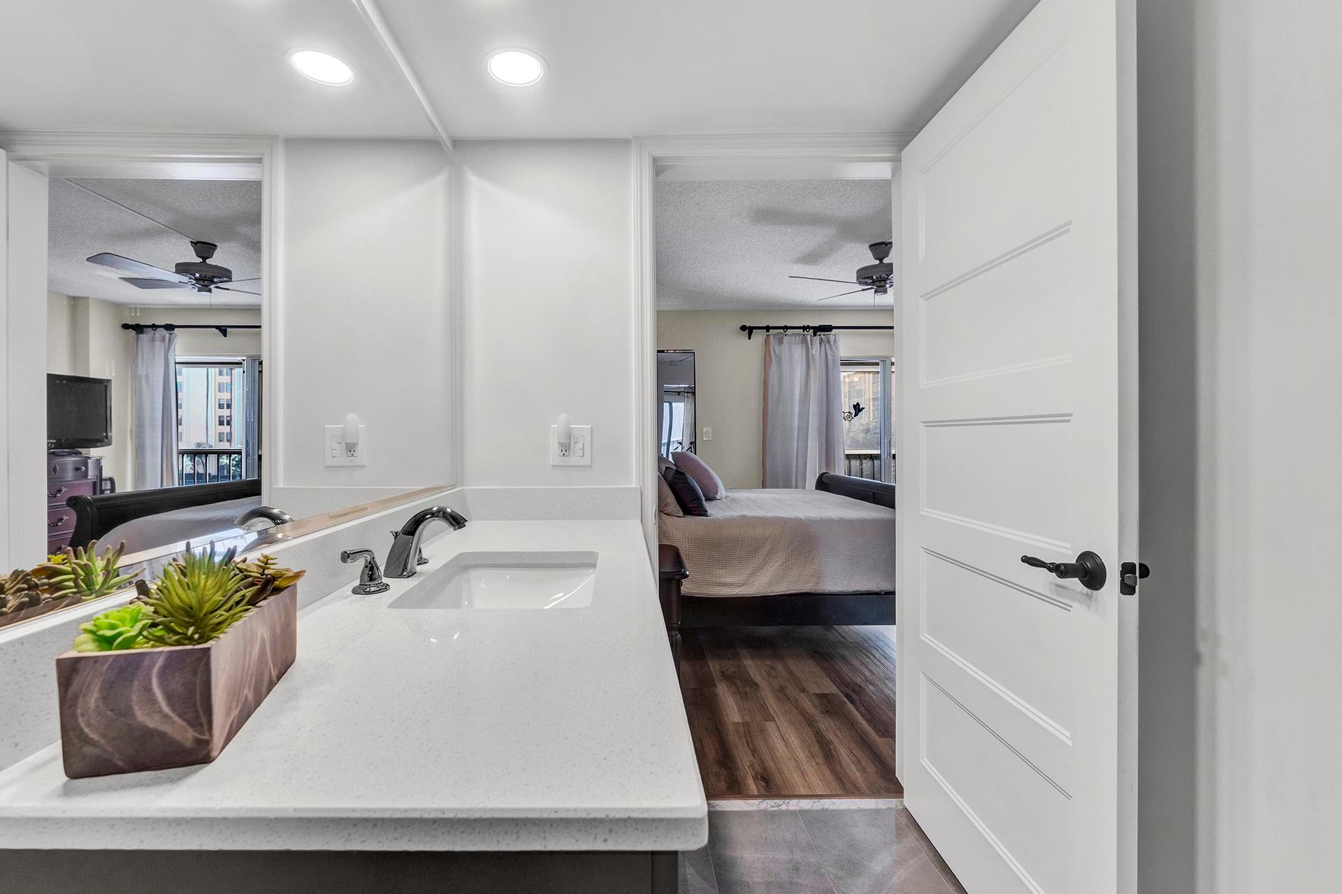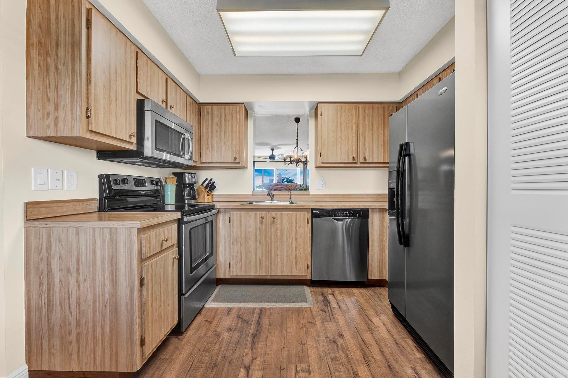 :Welcome to this beautifully updated and meticulously maintained condo in Huntington Lake. Gorgeous wood flooring throughout the living area. Updated kitchen w/ stainless steel appliances. Full sized stackable washer/dryer in the pantry. Plantation shutters. This condo is turnkey furnished w/ high end furniture. Just unpack your bags and start enjoying the great lifestyle. The living-dining area shows like a model w/ gorgeous furnishings. The large main bedroom has 2 custom walk-in closets and a gorgeous remodeled bathroom. Lovely guest bedroom with a hall bathroom. This unit has tinted sliding balcony doors. Great lake view from your balcony. A nice addition to the living space. Section pool right downstairs. Don't miss the stunning recently renovated clubhouse. Very active community.