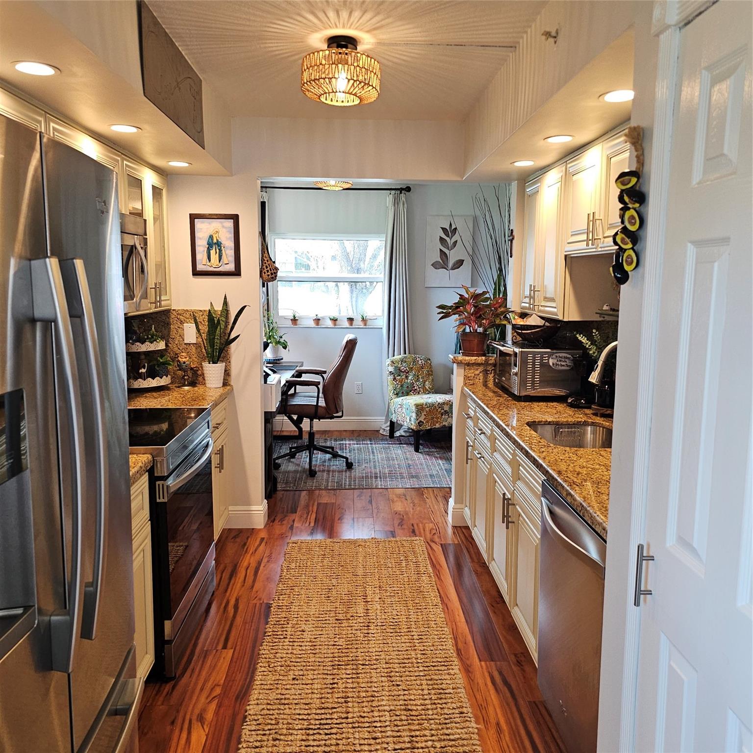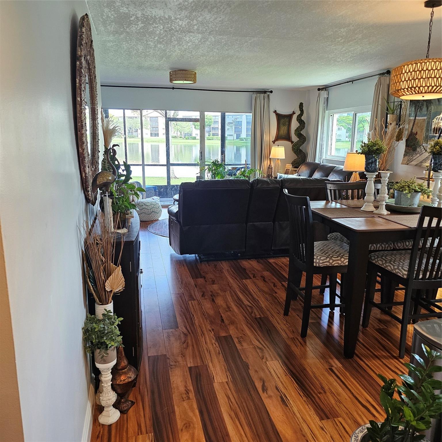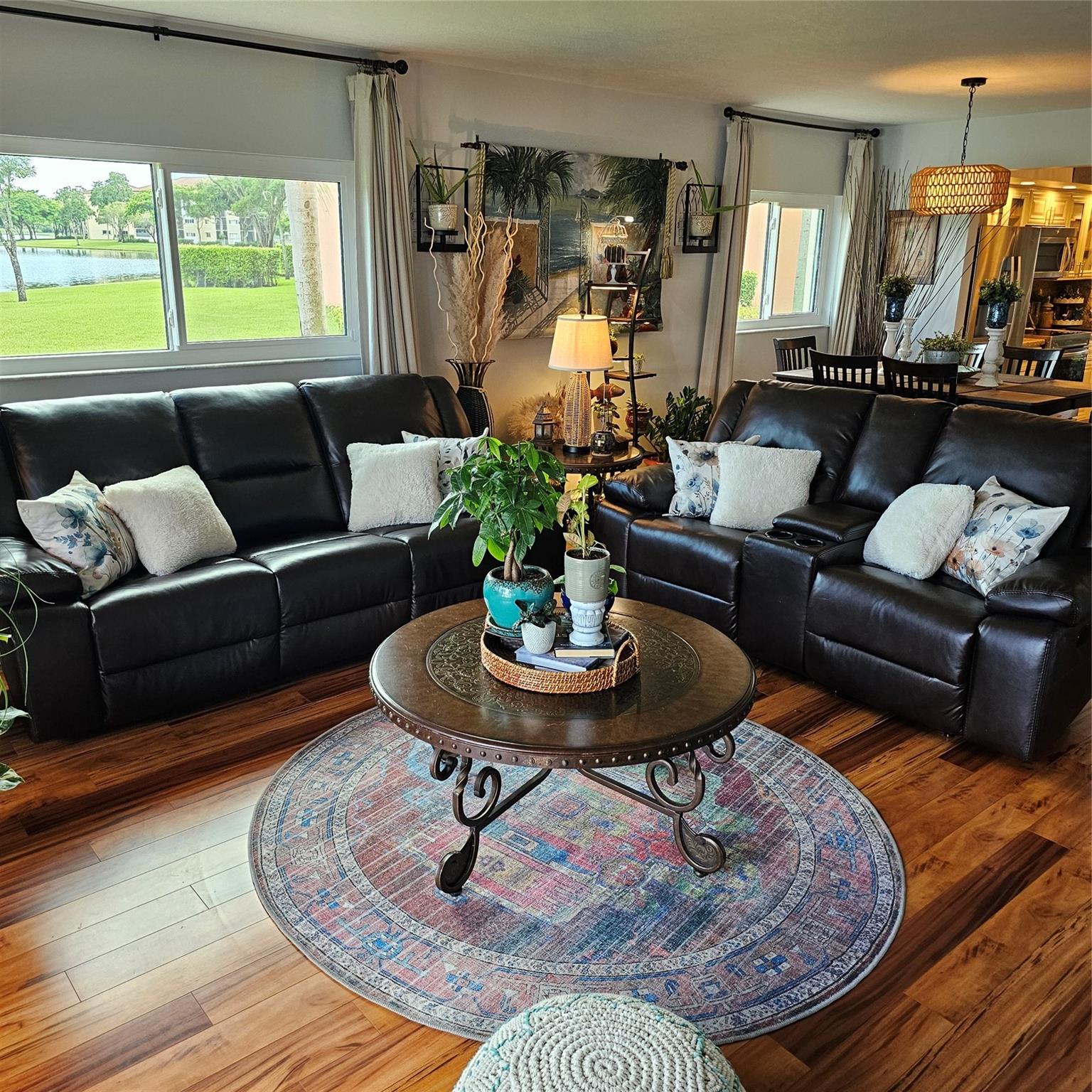 CORNER, CORNER! FIRST FLOOR, FIRST FLOOR! DON'T DRAG YOUR GROCERIES UP THE STAIRS, OR INTO THE ELEVATOR! WAKE UP TO BREATHTAKING LAKEFRONT VIEWS FROM 6 OF THE 8 WINDOWS IN THIS RARE FIRST FLOOR CORNER RESIDENCE. THE LARGEST FLOOR PLAN IN THE COMMUNITY. FLOODED WITH MORNING SUNLIGHT FROM THE EAST AND AMAZING BREEZE. THIS COMPLETELY UPDATED HOME BLENDS MODERN ELEGANCE WITH EVERYDAY COMFORT. HIGH QUALITY LAMINATE FLOORING, SOFT CLOSE HIGH END WOOD CABINETS, STAINLESS STEEL APPLIANCES, GRANITE COUNTERTOPS IN KITCHEN AND BATHROOMS. HOME IS COMPLETELY RENOVATED. NEW WINDOW TREATMENTS, IMPACT WINDOWS AND SLIDING GLASS DOOR. SCREENED PATIO WITH SHADES AND ADDITIONAL SLIDING GLASS DOOR. BRAND NEW AIR CONDITIONING UNIT, TANKLESS WATER HEATER. TOTAL APPLIANCE WARRANTY CONTRACT IN PLACE.