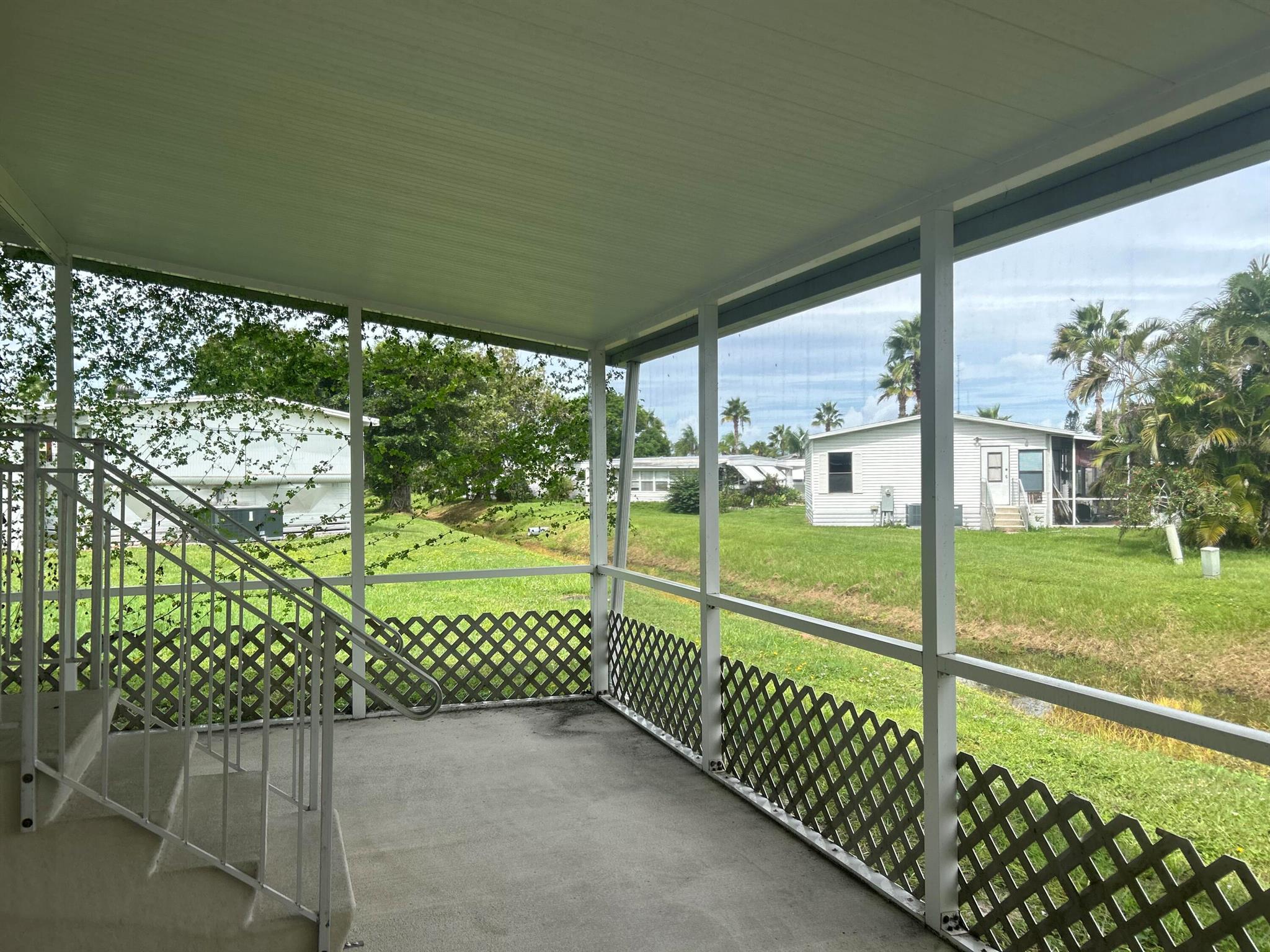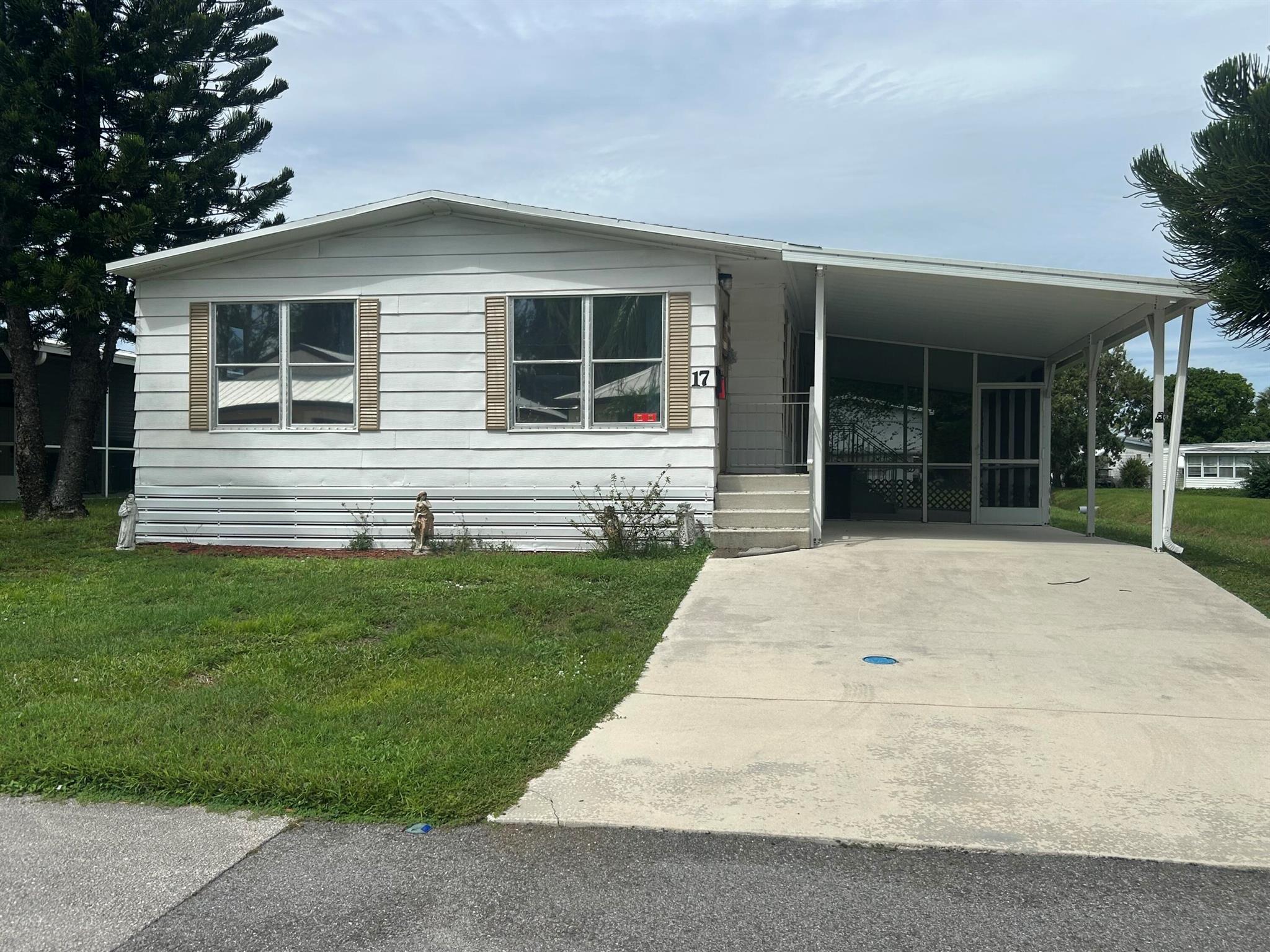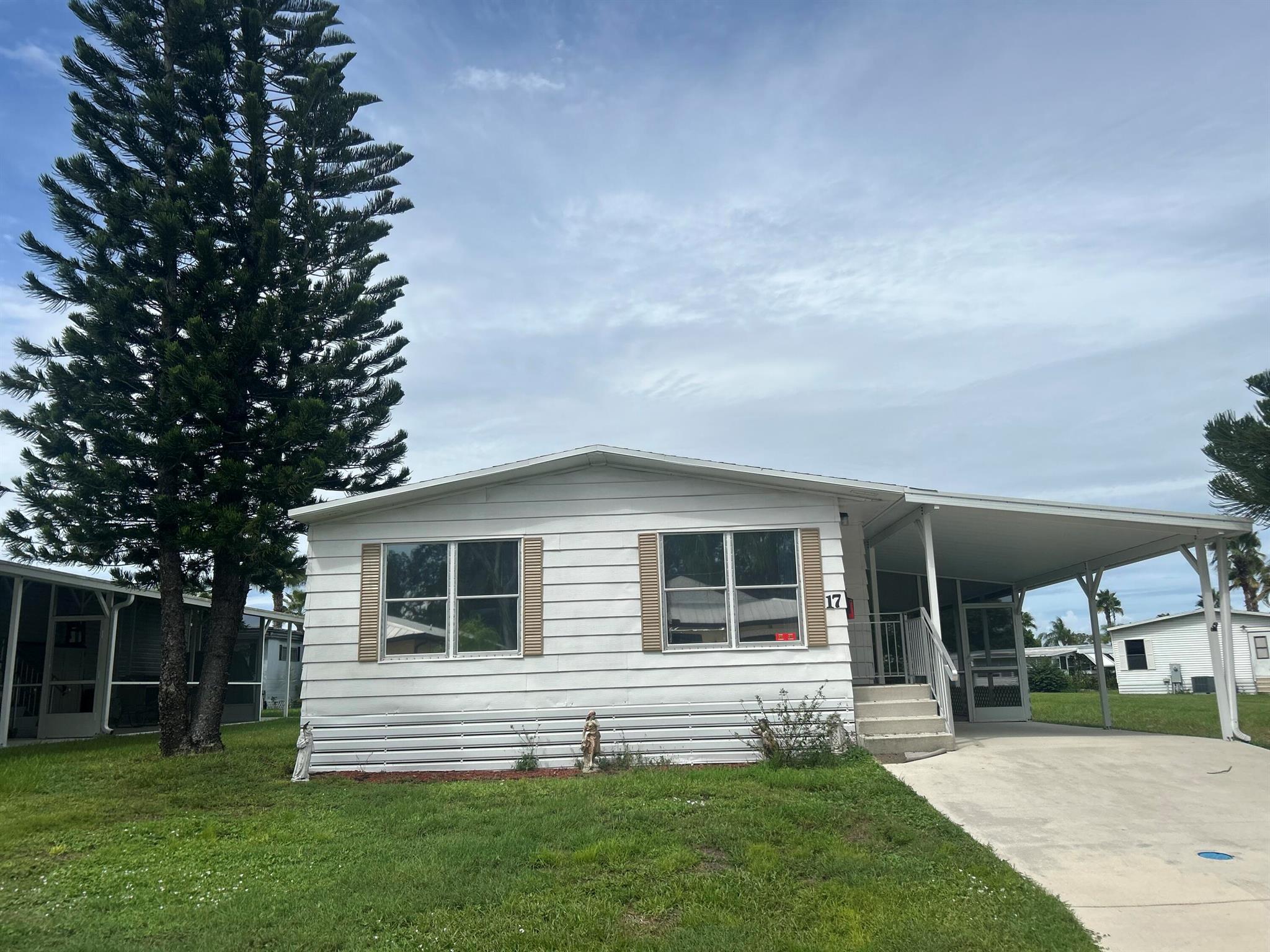 Charming, spacious 2bed/2bath home w/ beautiful water views. Roof 2020! Large screened in porch, perfect to watch the ducks & birds glide by. You will be pleased w/ this prime location; close to the beach, mall, grocery stores, shopping, post office, banks, hospitals & more. Lot lease 842.53 includes security, cafe, Clubhouse w/activities, lawn care, trash, free private golf course, bingo, heated pool, pickleball, tennis, workshop, shuffleboard, bocce, gym, library, cards, Mahjong, clubs & more! Grab your slice of paradise in the highly desired town of Port St Lucie!