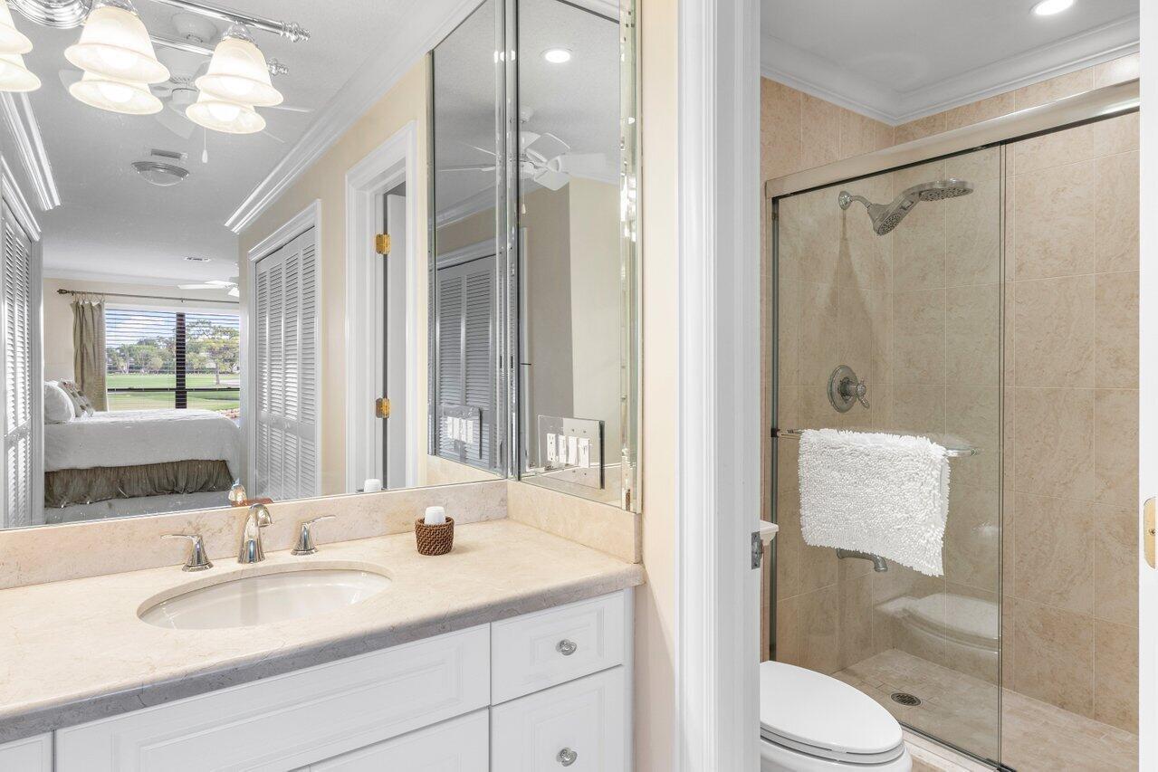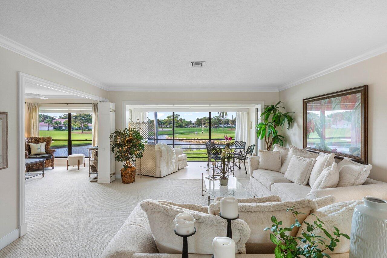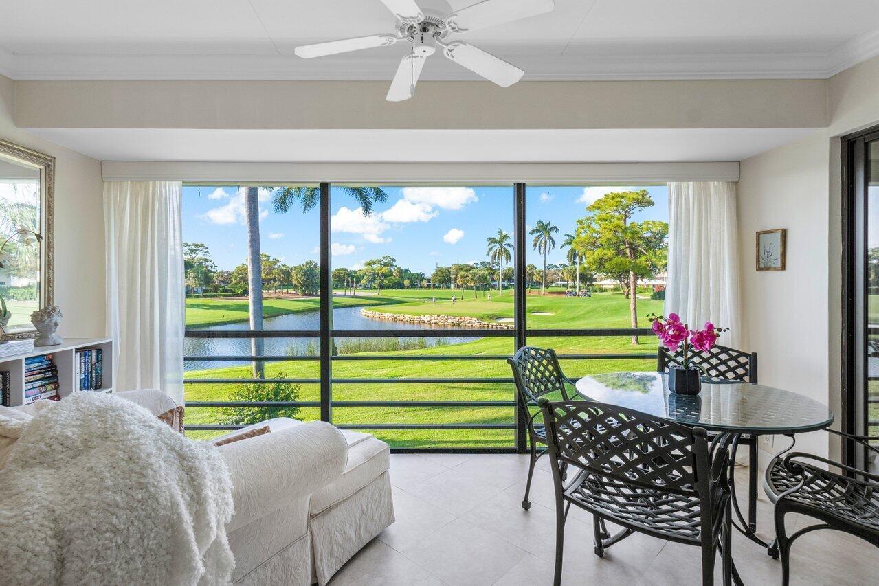 Enjoy gorgeous golf course and lake views from this stunning 3-bedroom, 2-bathroom second-floor residence in the Bobwhite A area of Quail Ridge. The spacious and airy layout includes a screened breakfast terrace, perfect for enjoying peaceful mornings. The versatile third bedroom/den features sliding doors for added privacy, making it ideal for guests or a home office. Experience the best of country club living with picturesque surroundings and elegant comfort. Quail Ridge is a mandatory membership, private club community offering golf, tennis, pickleball, spa & fitness and a beautiful clubhouse. New roof!