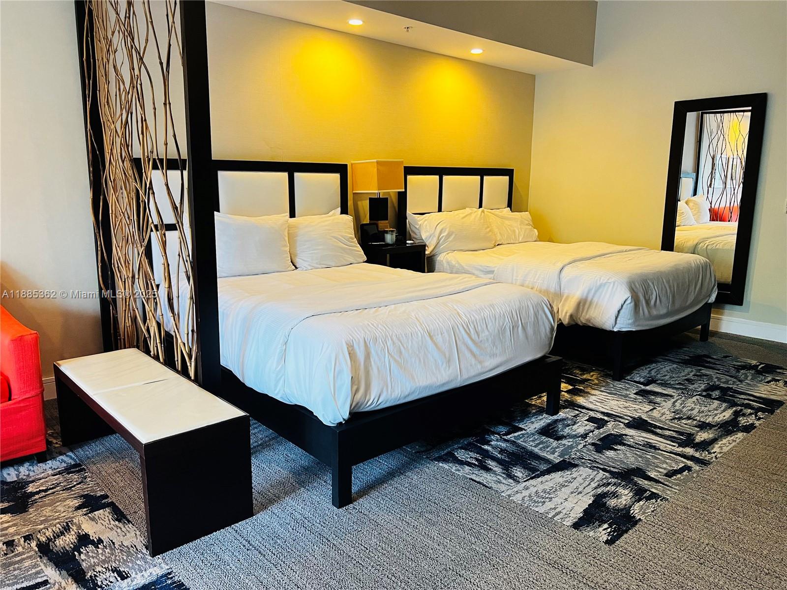 Beautifully fully furnished Condo/Hotel, Studio 705 Sq.Ft. kitchen, balcony, 1 full bath, shower and tub, Resort style, pool, spa, fitness 24 hours, excellent restaurants across from downtown Doral, at walking distance. Condo Association fee includes all utilities. enjoy a full list of massage and beauty service an equipped 24-hour fitness center. Owner can occupied 6 months and rent the rest of the year with the hotel program or by him self, some restrictions apply. Just steps away from Trump National Golf, city place and Downtown Doral. Condo fee include: Water, electricity, cable, internet. Easy to show.