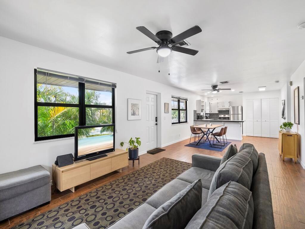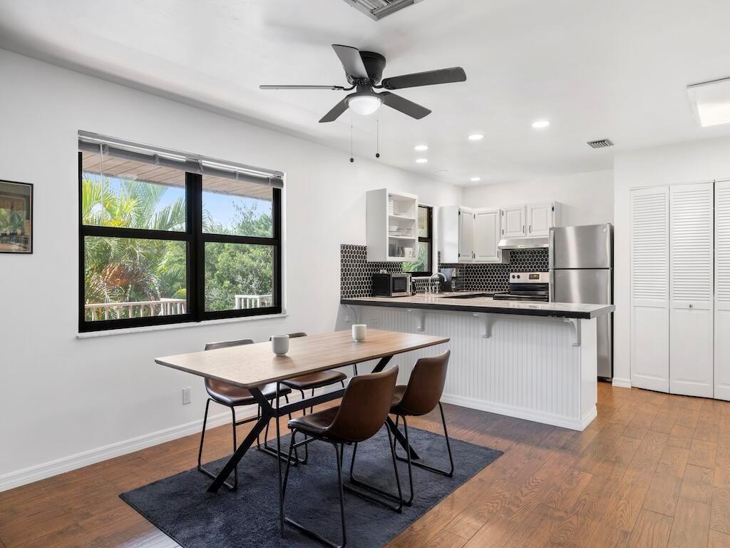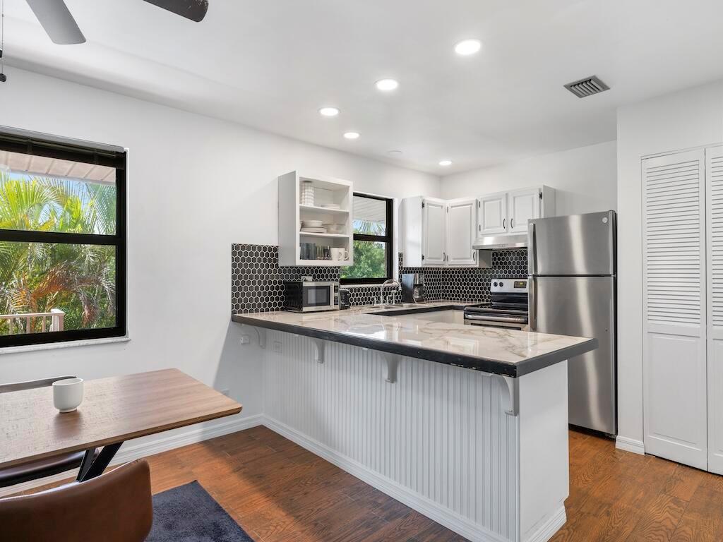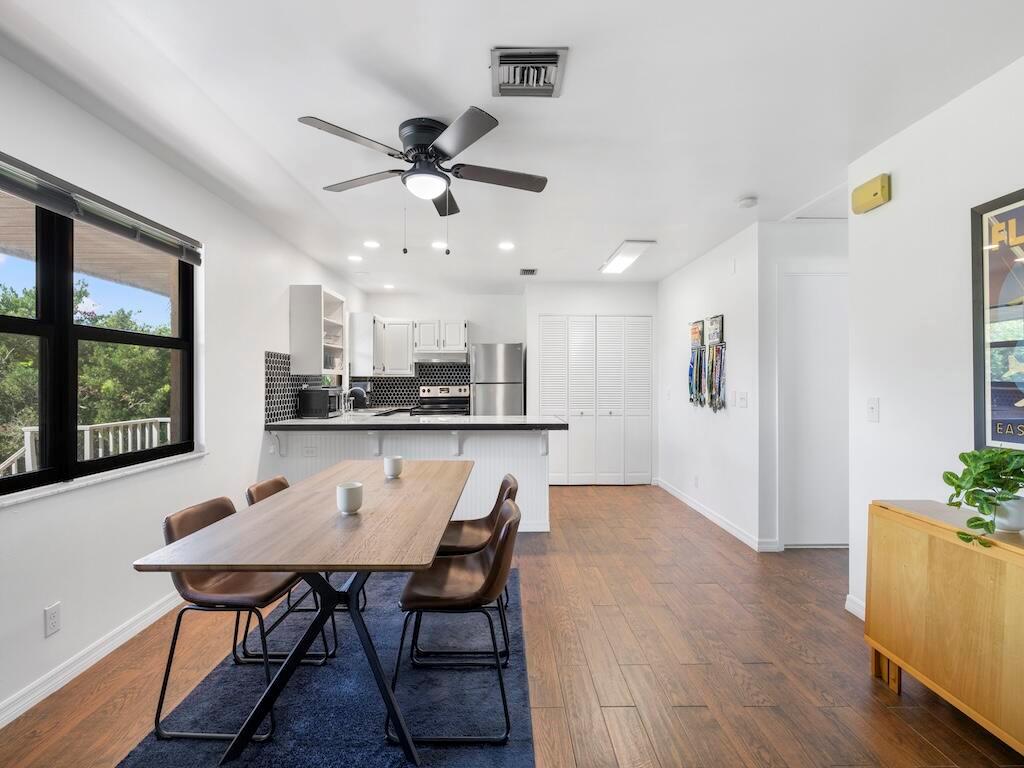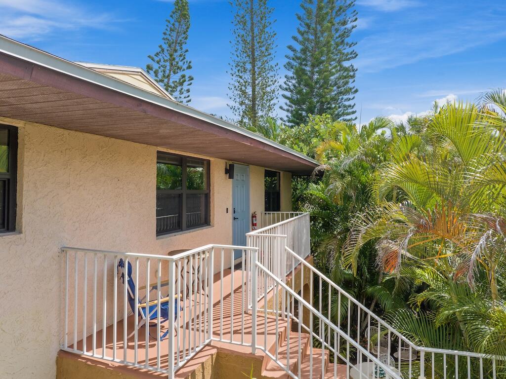 It's more than a condo, it's the Florida Beach lifestyle!!! Just Two Blocks from the BEACH! PRIME Location on Hutchinson Island on North Beach, where A1A ends in a community that directly borders the Fort Pierce Inlet State Park--340 acres of protected land and pristine coastline--this beautifully renovated 2-BR, 2-bath condo w/ new hurricane windows and sliding door, offers the ultimate coastal lifestyle. Only a 4-unit complex, walking distance to a secluded beach, was built with CBS construction and topped with a 2023 roof. The community is just moments from boat ramp, fishing piers, kayak launches, and local favorite, Little Jim's, setting the tone for a laid-back, island rhythm. Step onto your private balcony to take in lush, tropical views from this elevated second-floor condo.