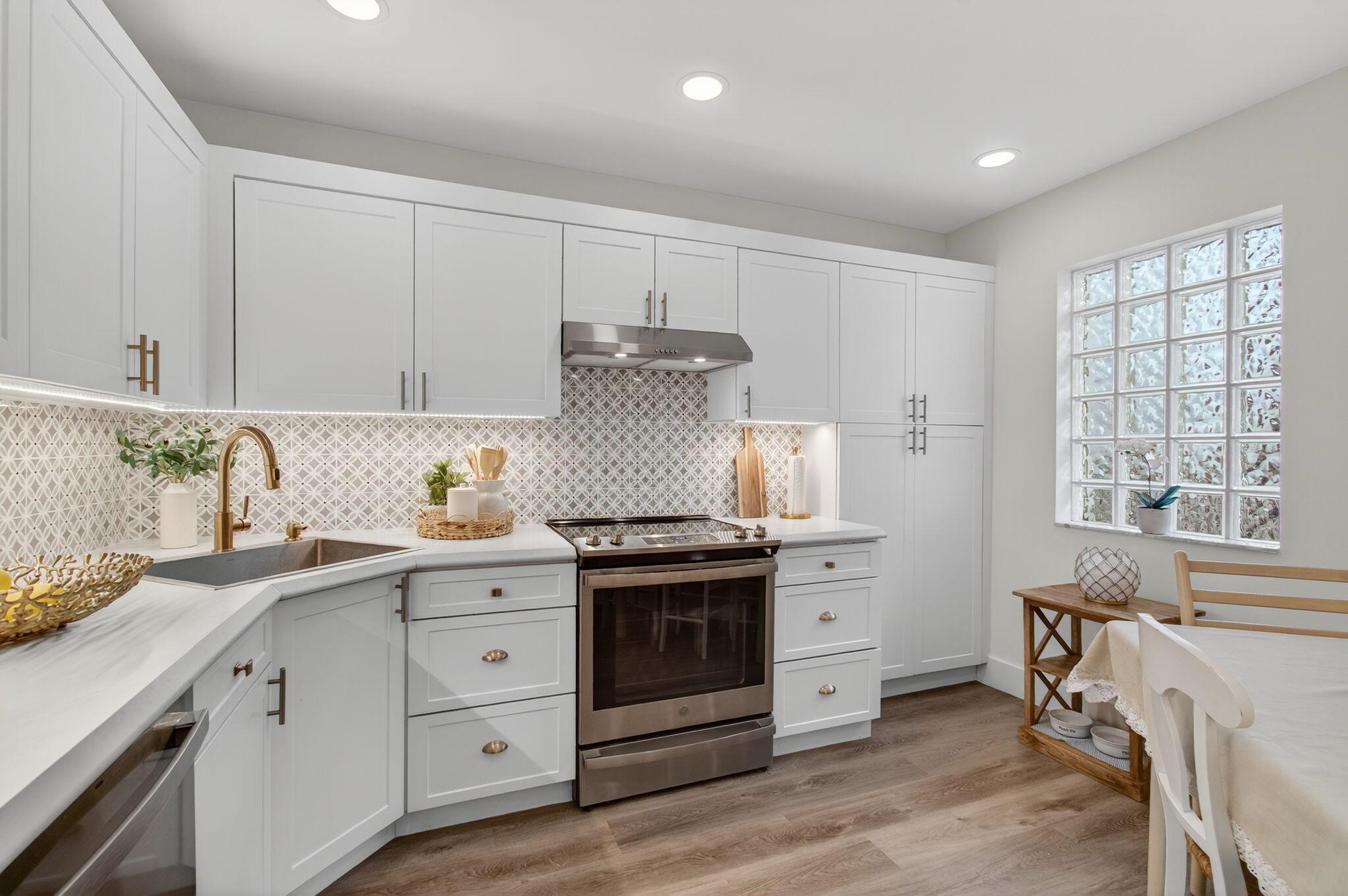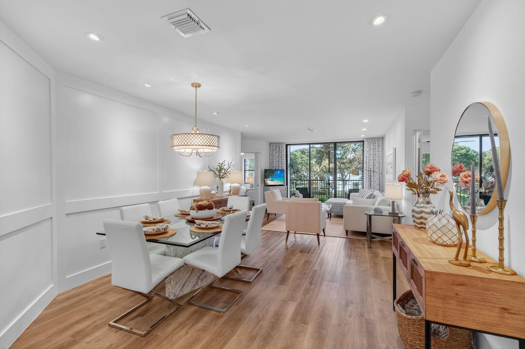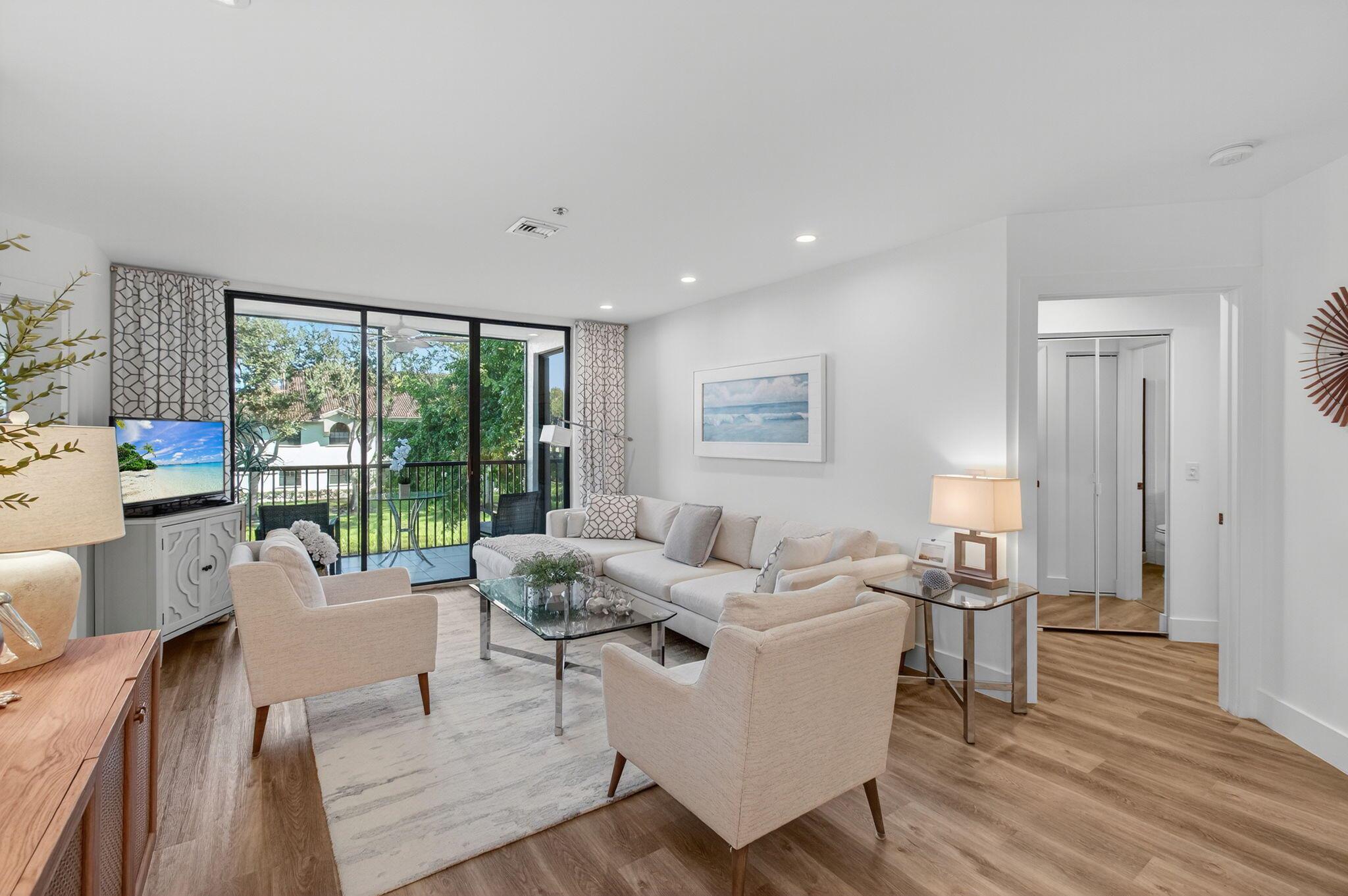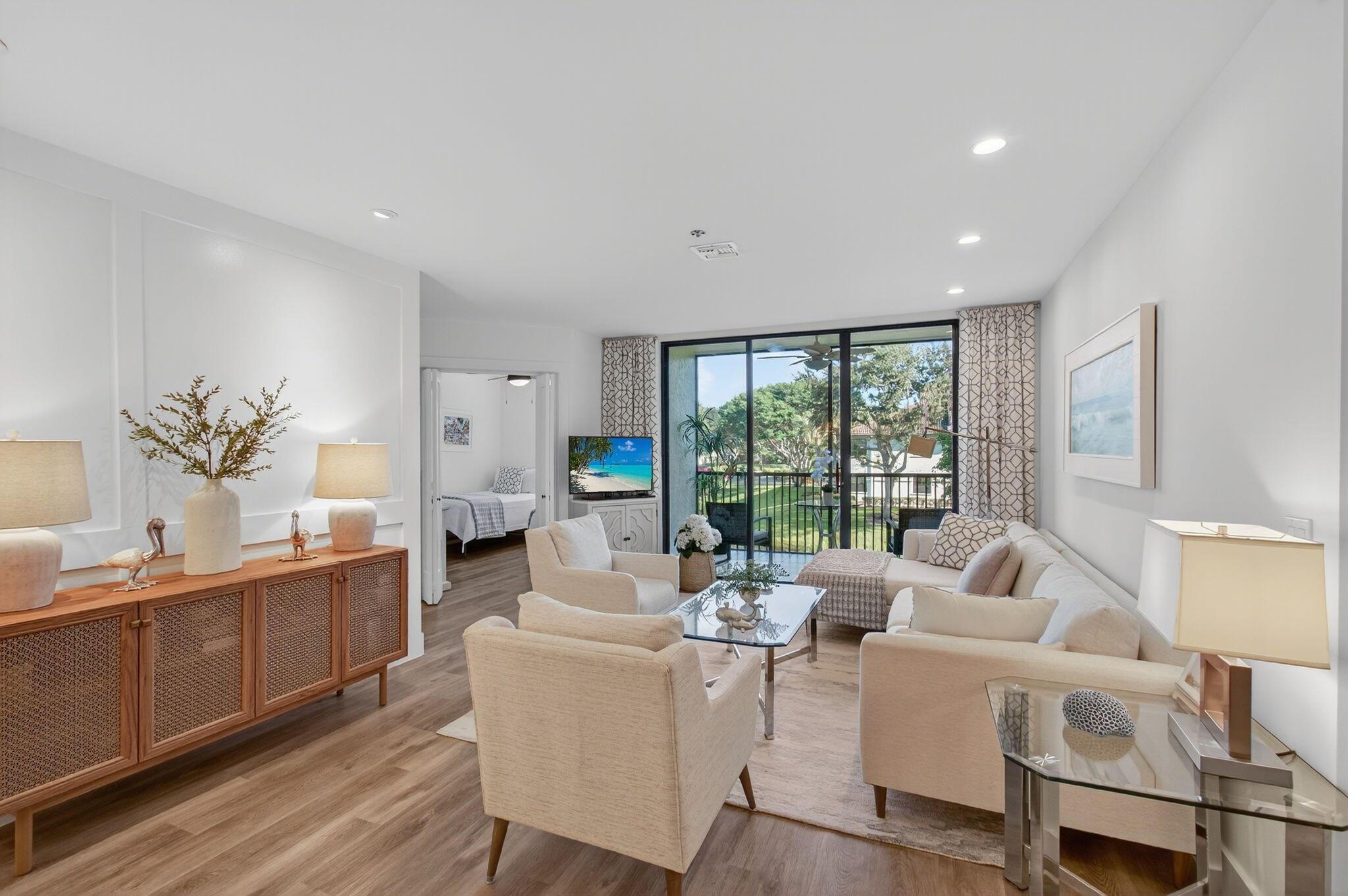 Exquisite three bedroom, two bath condo in Platina's Illustre Village offers a picturesque lake view from every window. This immaculate condo is is right out of an episode of HGTV! Beautifully decorated with extensive contemporary wood trim, high hat lighting and updated kitchen. The spacious master bedroom features a walk-in closet, plus updated master bathroom. The split floor plan provides privacy, while luxury vinyl flooring makes clean up a snap. Full-size washer and dryer (2023), a water heater (2022), and a recently updated air conditioning system (2024). The screen-enclosed balcony is ideal for enjoying morning coffee or relaxing while gazing at the serene lake. Perfect for all year or seasonal living.