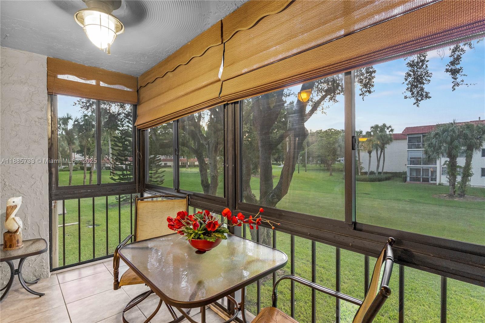 55+resort-style community. Beautifully maintained 2-bedroom, 2-bathroom condo is located on a lushly landscaped golf course. Front row parking spot in front of unit. Free golf, 14 tennis courts, 7 pools, theater, fitness center, restaurant, 24 hr. security, Assoc. represents housing for older persons auth. (HOPA). Unit has impact windows and alarm system. New appliances and cabinets not original to home.