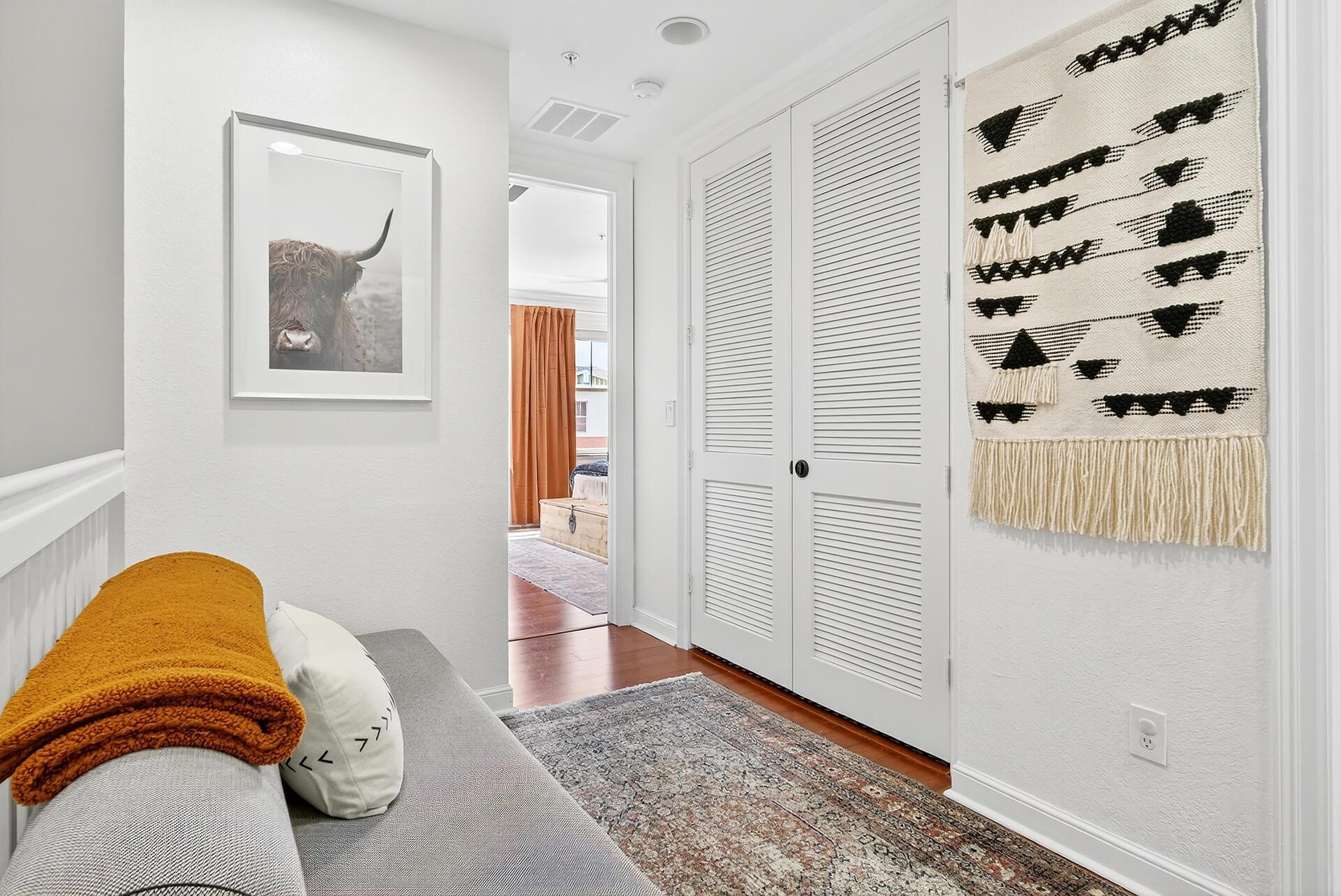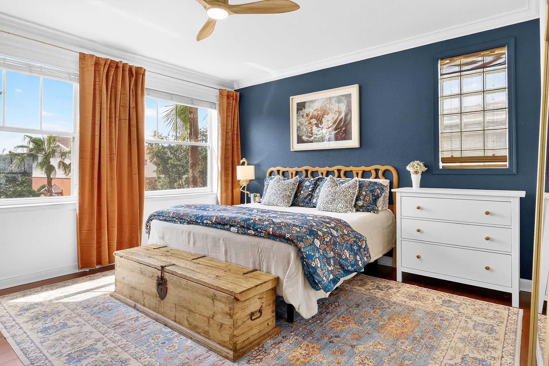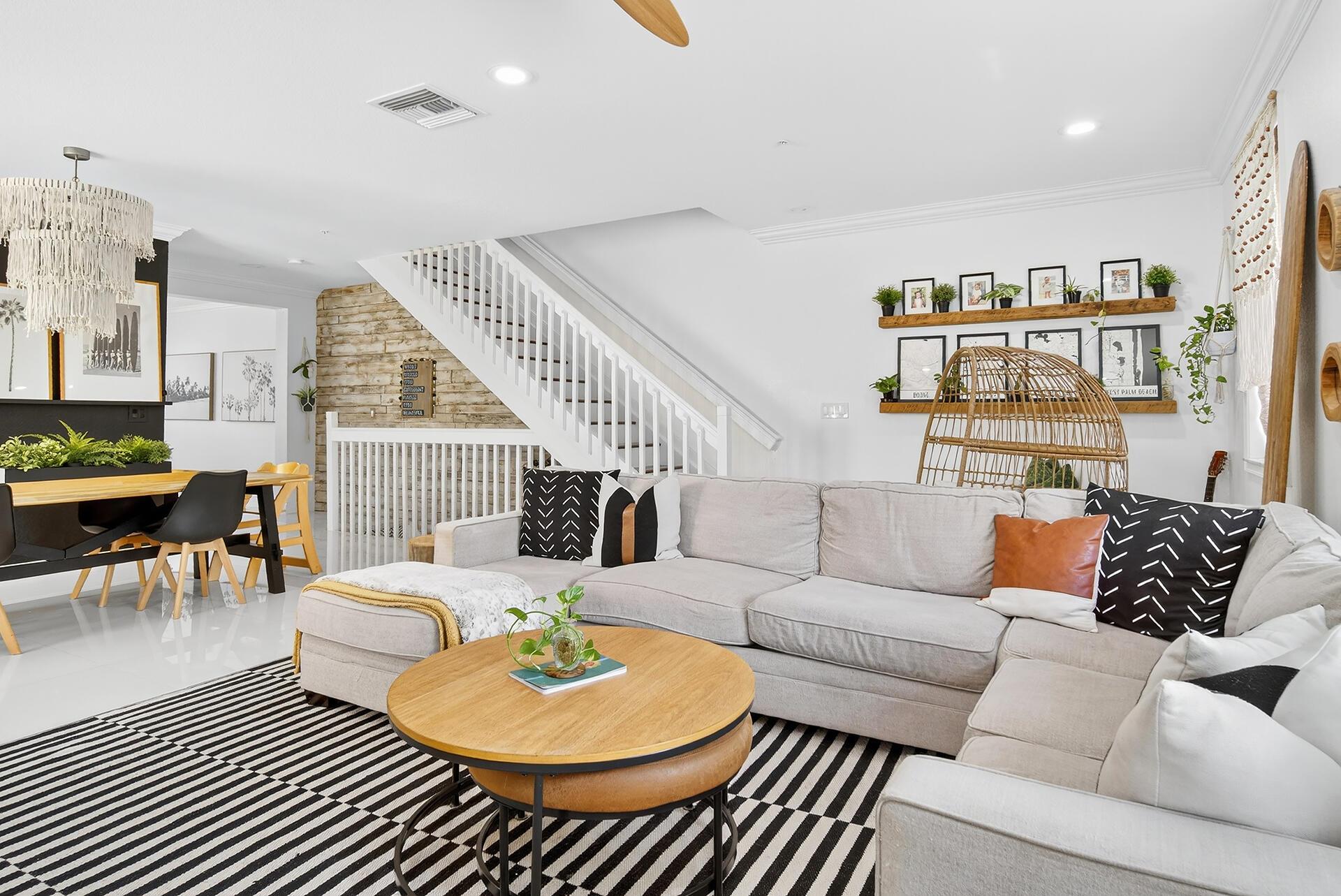 Stunning! Thoughtfully upgraded 4 bed 3.5 bath corner unit offers bright, open living with soaring 10' ceilings & tons of natural light. Features 32'' white tile & wood floors, crown molding, accent wall entry, modern fans, HUE lights, Nest thermo, etc. BRAND NEW kitchen is a showstopper, boasting granite waterfall edge with bar seating, slow-close cabinetry with 42'' uppers, open shelves, shiplap siding, black work station sink, & spacious pantry with a sliding barn door. Outfitted with top of the line Samsung Bespoke appliances, including a Family Hub touchscreen refrigerator & 3-drawer wine/beverage cooler, this kitchen is both stunning & smart. All bathrooms have been beautifully updated with new floors, counters, sinks, toilets, lighting & fixtures. New Bespoke W/D. 2 car garage.