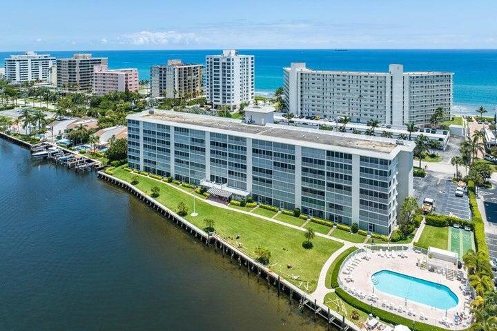 2 bedroom and 2 bathrooms. Watch the boats go by from your large open balcony. Enjoy piece of mind with hurricane glass doors. The unit offers a bright open layout with endless potential. Both bedrooms are generously sized with large closets. The expansive balcony is ideal for indoor -outdoor living, capturing breezes and waterfront scenery . Beach access is across the street. This property combines the best of coastal living with incredible views and value. The Atlantic ocean is steps away while beautiful sunsets on the back porch are enjoyed. The association offers a pool, BBq area, shuffleboard court.