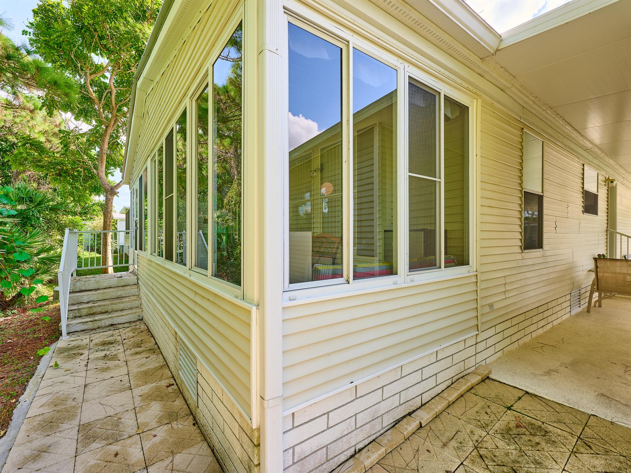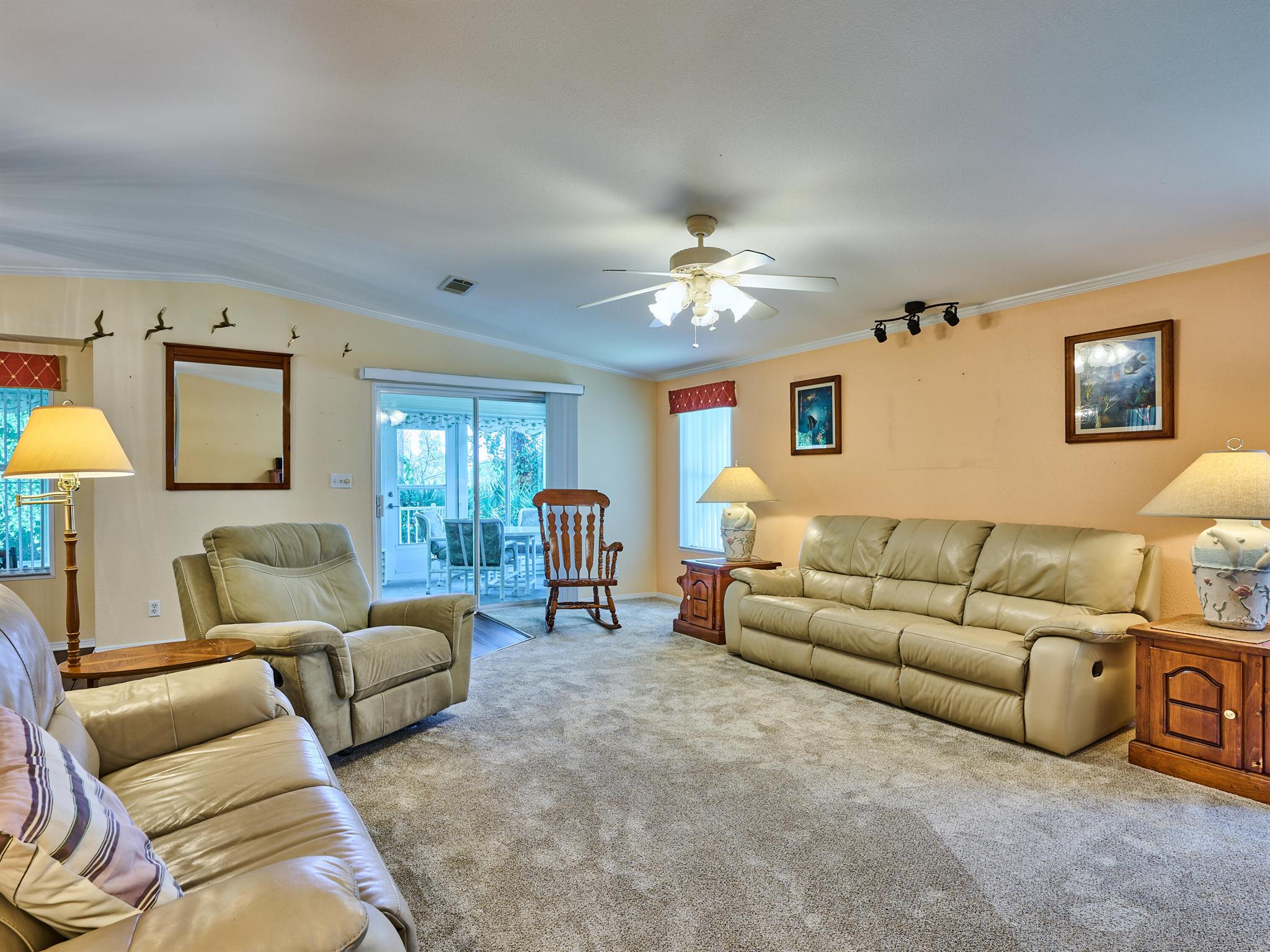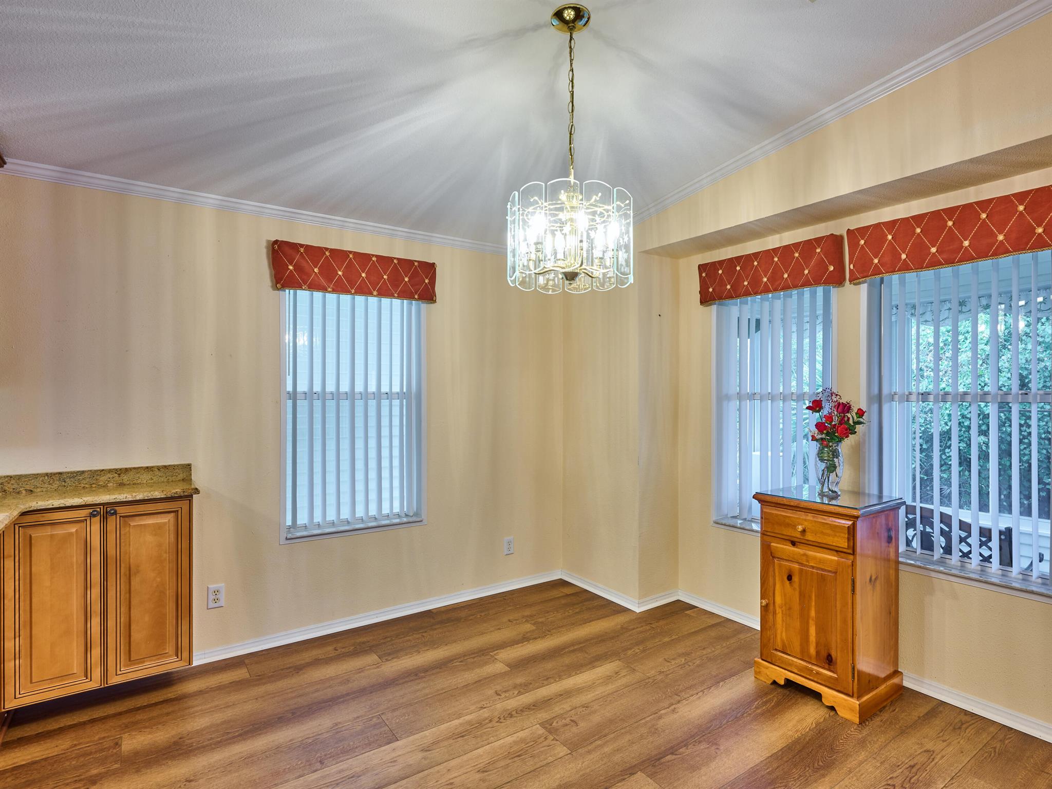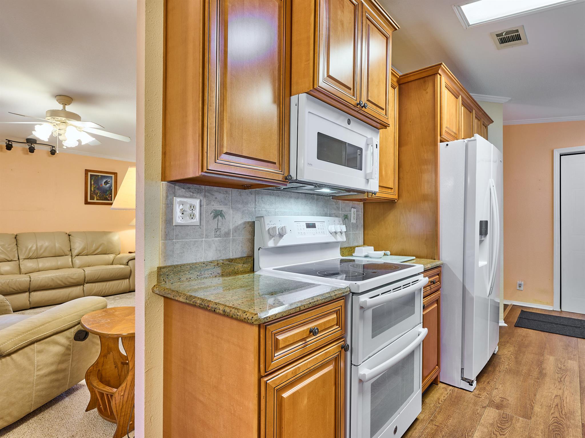 Welcome to this beautifully maintained 3 bedroom 2 bath Palm Harbor manufactured home in the sought-after 55+ community of Pinelake Gardens & Estates. This spacious residence blends modern updates with comfort and convenience.Featuring a new 2024 metal roof and a 2023 A/C system, the major updates are already done for you. Inside, the kitchen has been tastefully renovated with rich wood cabinetry, sleek granite countertops, and newer white appliances--perfect for cooking and entertaining. The adjoining dining area boasts new flooring, while the living room has fresh carpet, creating a warm and inviting atmosphere. Pinelake Gardens & Estates is a vibrant, active community offering resort-style amenities, including two clubhouses, pools, tennis, shuffleboard, and a social