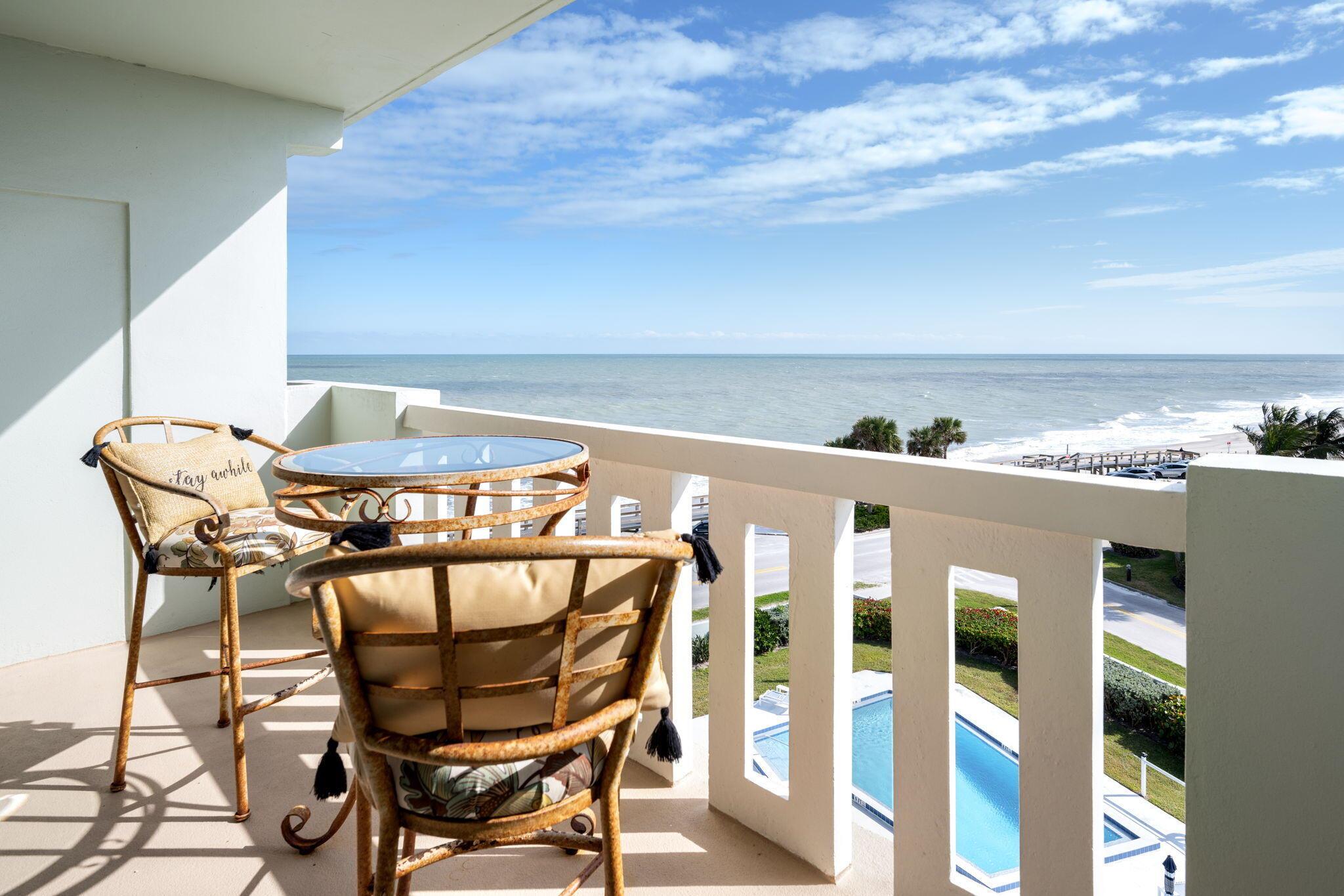 Wake up to endless ocean views in this furnished 5th-floor 2 bed, 2 bath condo in Vero Beach, FL. This beautifully designed unit offers a bright open floor plan with kitchen island, breakfast bar, crown molding, and new 2024 A/C & hot water heater. Includes under-building garage parking and is located steps from Ocean Drivea(tm)s boutiques, dining, and seaside village. Perfect for year-round or seasonal living, this luxury condo with ocean views combines comfort, style, and the best of Vero Beach coastal living.
