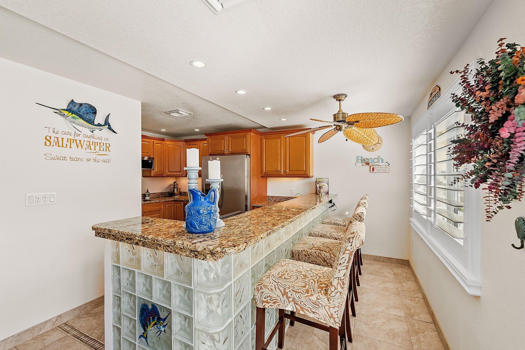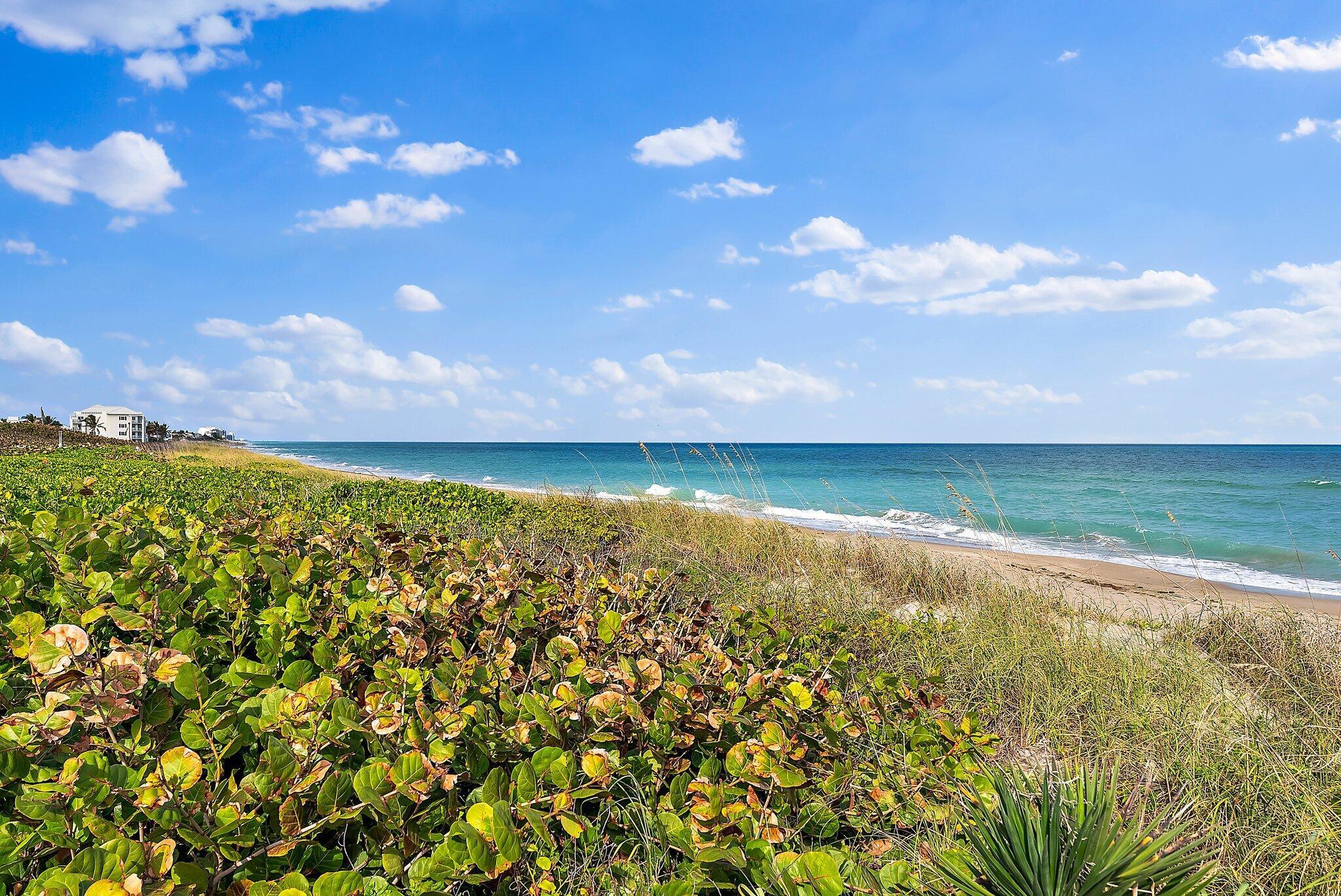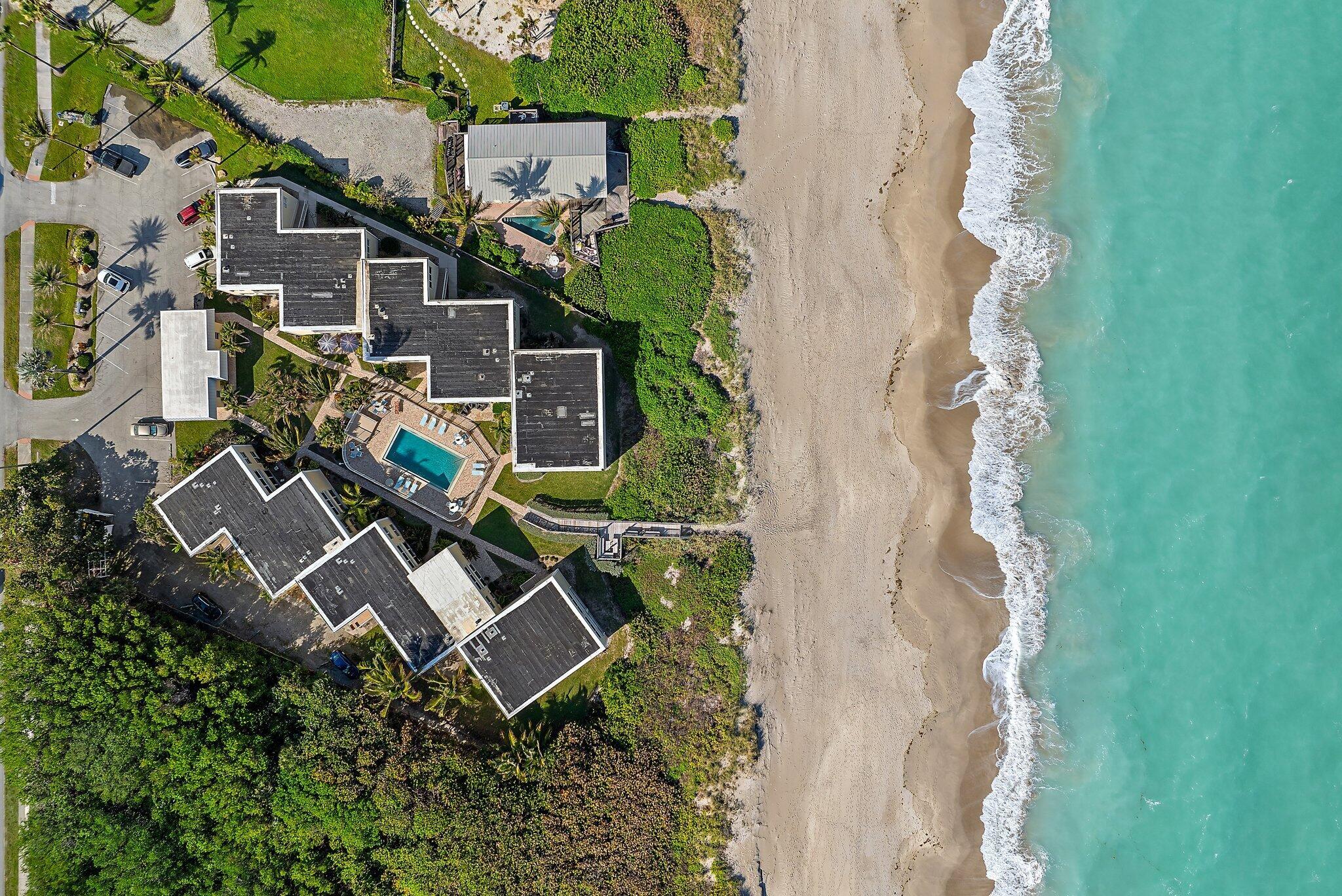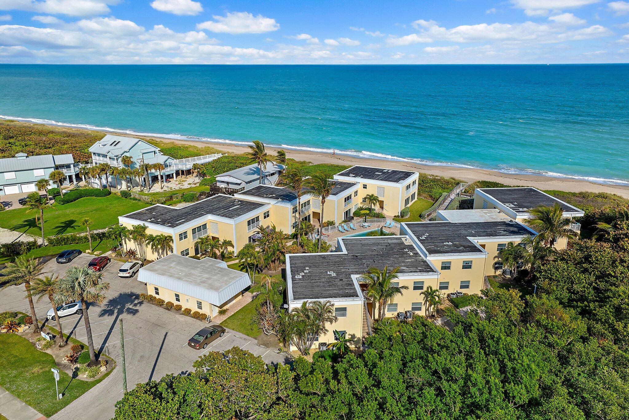 Stunning 2BR/2BA condo in the desirable oceanfront community of Seaside on Hutchinson Island! Enjoy private beach access, heated pool, and sundeck in a resort-style setting. Shows like a model home, it is impeccably updated with hurricane impact windows, plantation shutters, tile flooring, renovated baths, upgraded granite kitchen, new S/S appliances, custom lighting, stackable W/D, new water heater, and updated A/C. Spacious living and dining areas open to a sunny breakfast room and huge breakfast bar. Owner's suite offers a wall of closets and private bath; guest suite includes a full bath. Relax on the expansive brick paver patio overlooking the pool and garden. Concrete restoration completed 2022.
