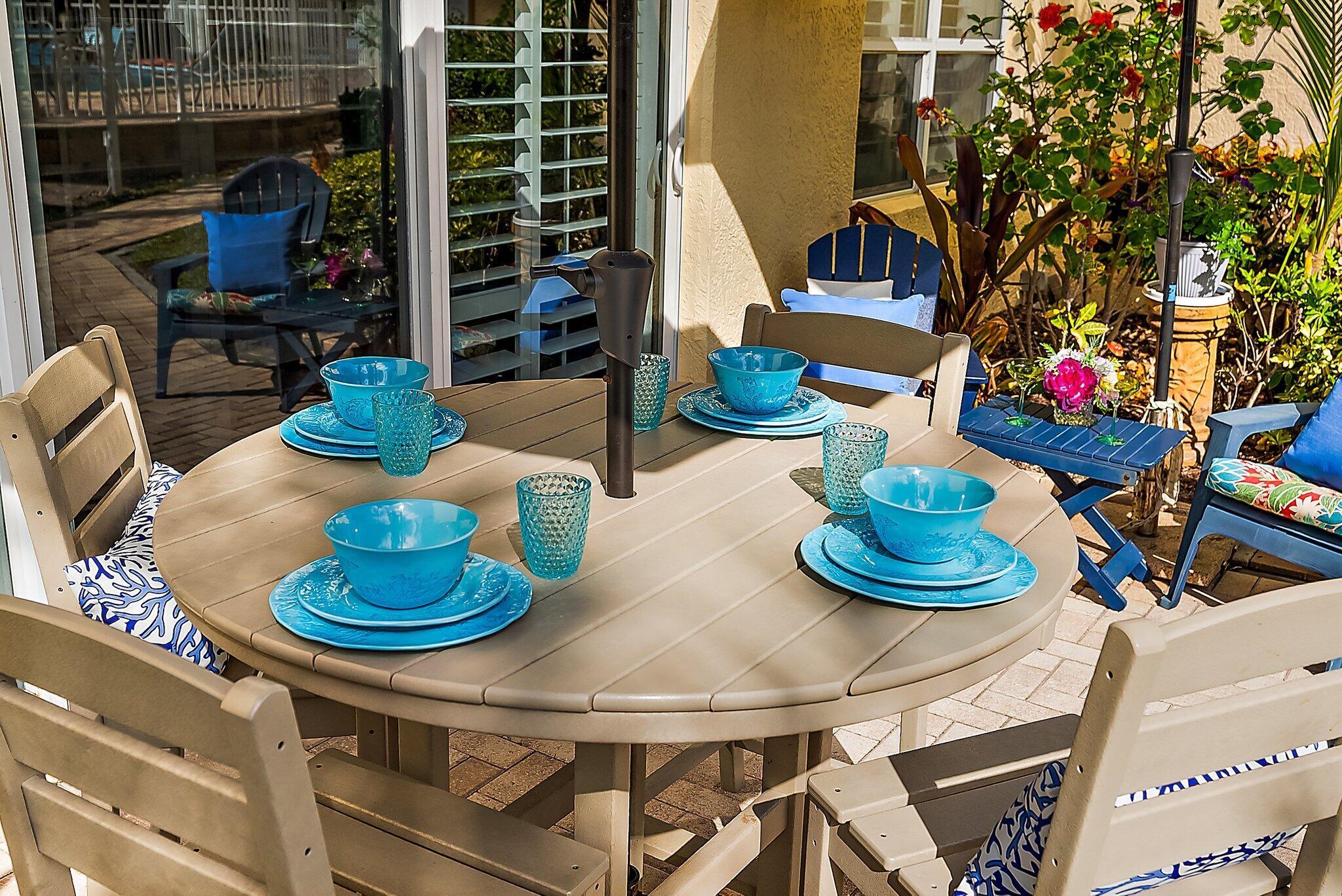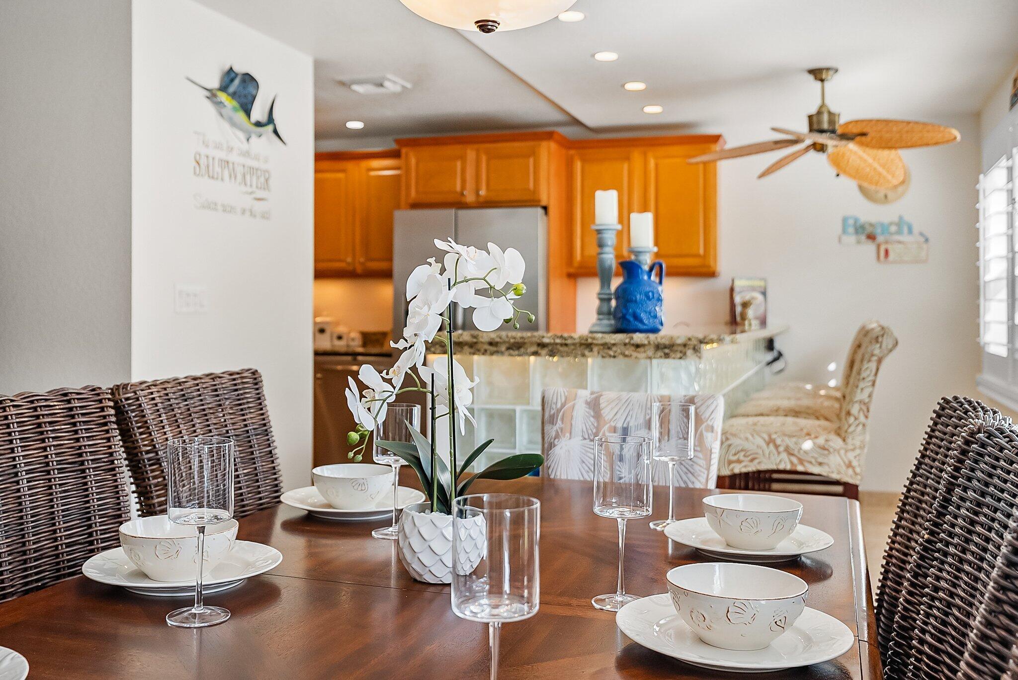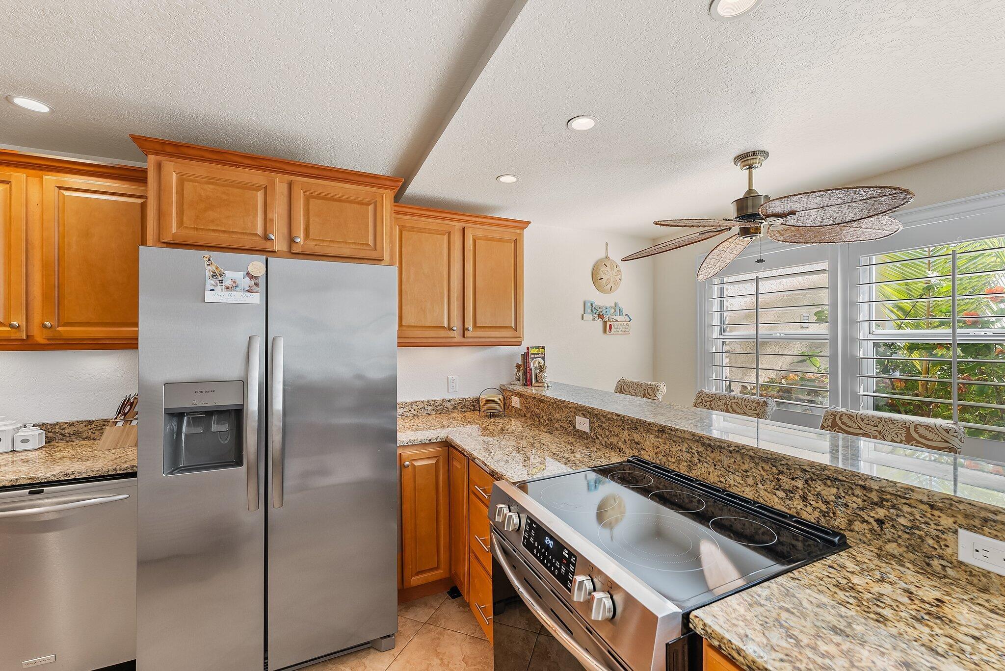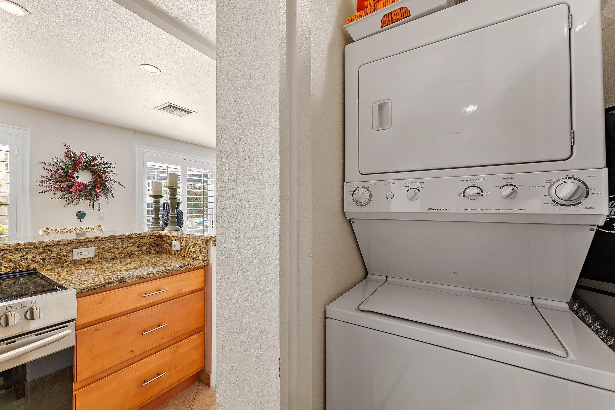 Stunning 2BR/2BA condo in the desirable oceanfront community of Seaside on Hutchinson Island! Enjoy private beach access, heated pool, and sundeck in a resort-style setting. Shows like a model home, it is impeccably updated with hurricane impact windows, plantation shutters, tile flooring, renovated baths, upgraded granite kitchen, new S/S appliances, custom lighting, stackable W/D, new water heater, and updated A/C. Spacious living and dining areas open to a sunny breakfast room and huge breakfast bar. Owner's suite offers a wall of closets and private bath; guest suite includes a full bath. Relax on the expansive brick paver patio overlooking the pool and garden. Concrete restoration completed 2022.