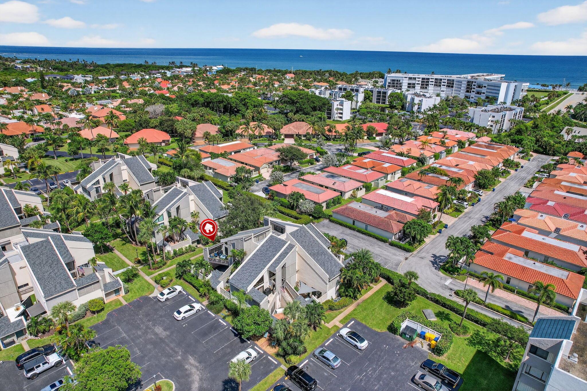 Coastal Living at Its Finest - Just a 10 minute walk to the Beach!Welcome to your dream home in Jupiter Ocean and Racquet Club! This beautifully updated two-story, 2 bedroom, 2 bath condo offers the perfect blend of comfort, style, and coastal charm, just two blocks from the Atlantic Ocean. Whether you're looking for a full-time residence, seasonal getaway, or income-producing property, this one checks all the boxes.This condo which lives like a townhome offers a large private courtyard as well as an upper level deck off of the living and dining area, perfect for entertaining! The well-appointed kitchen has been updated with new cabinets, counters and appliances. The main floor also features an ensuite bedroom. Outside, enjoy your own private courtyard -- a tranquil space perfect