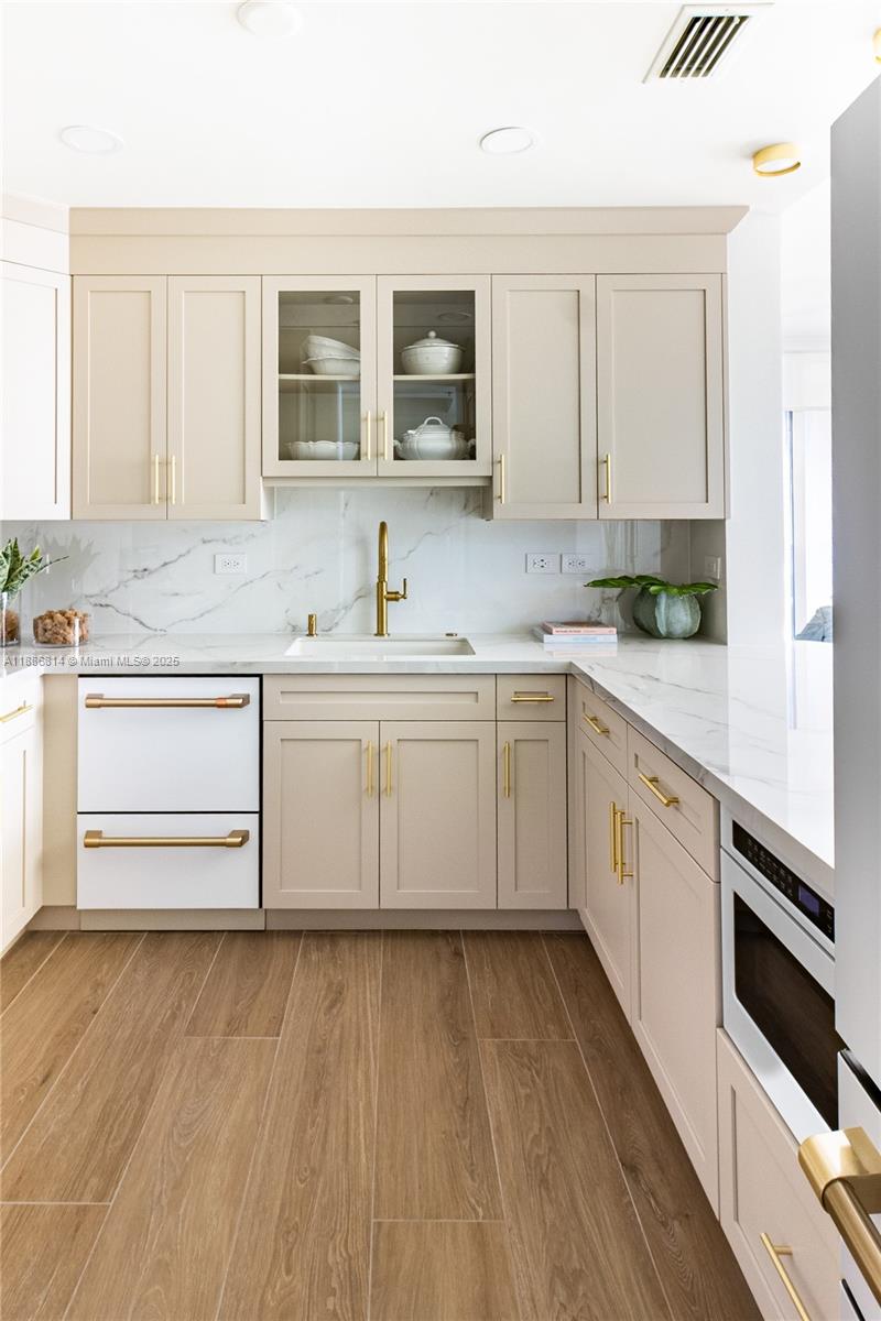 Newly RE-PRICED! Experience elevated living in this ultra chic, newly renovated, & luxurious 3b/2ba condo in the heart of Coral Gables! Overlooking the lush Granada Golf Course, this stylish residence reflects the highest level of craftsmanship showcasing sleek finishes, & abundant natural light throughout. Featuring: Curated EMTEK hardware, Visual Comfort lighting, Italian porcelain wood-like floors throughout, marble bathrooms, custom cabinetry in closets, bath, laundry & kitchen. High ceilings with floor to ceiling new impact glass doors & windows. Tailored kitchen offering built in organization behind every door with a full suite of brand-new SMART GE Café Series appliances. Building offers 24-hour concierge, 2 newly renovated meeting rooms, fitness center, and pool.