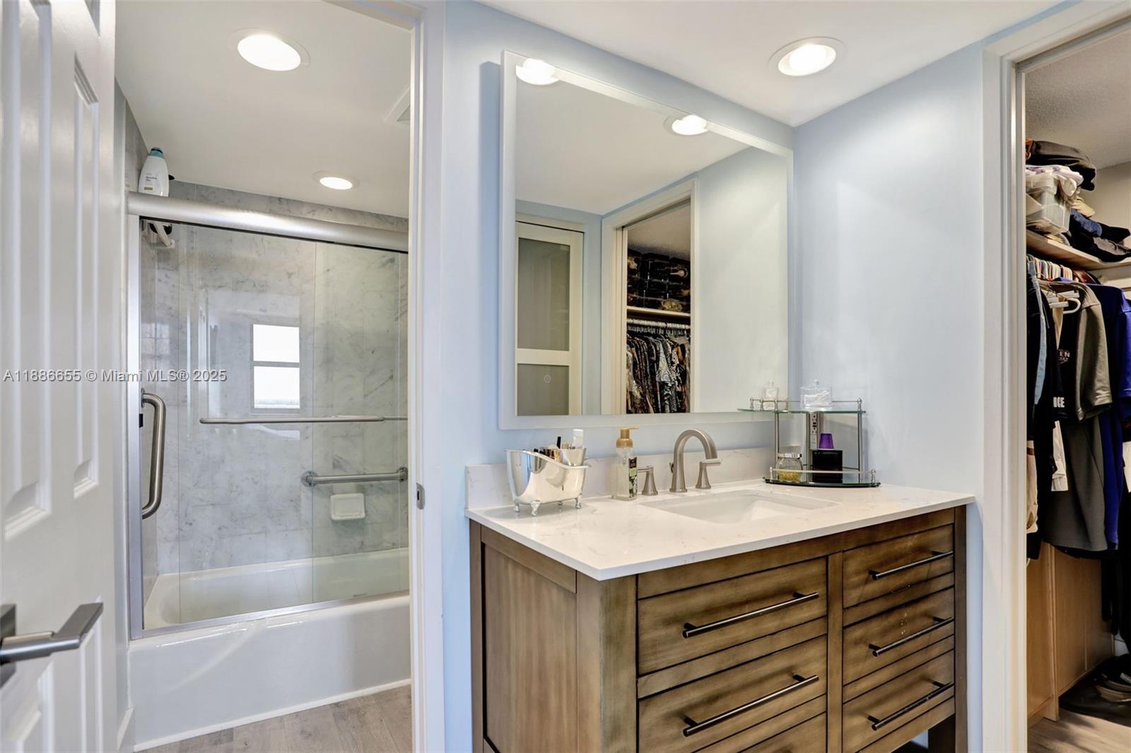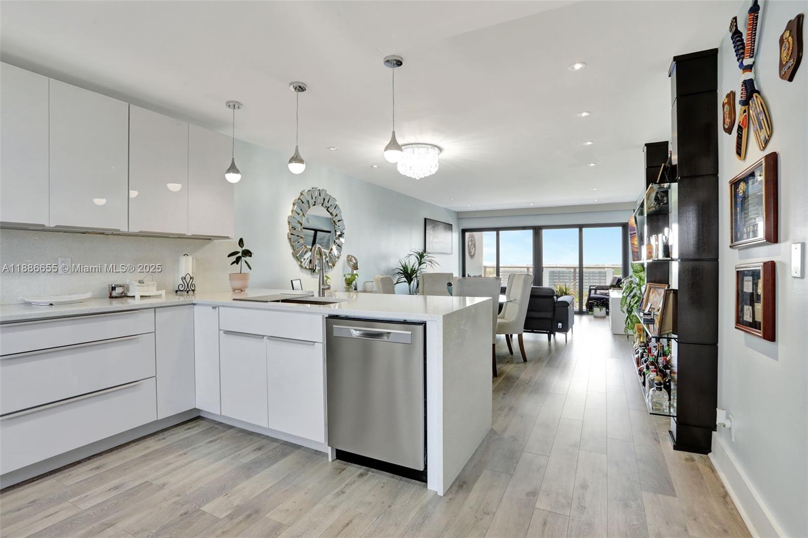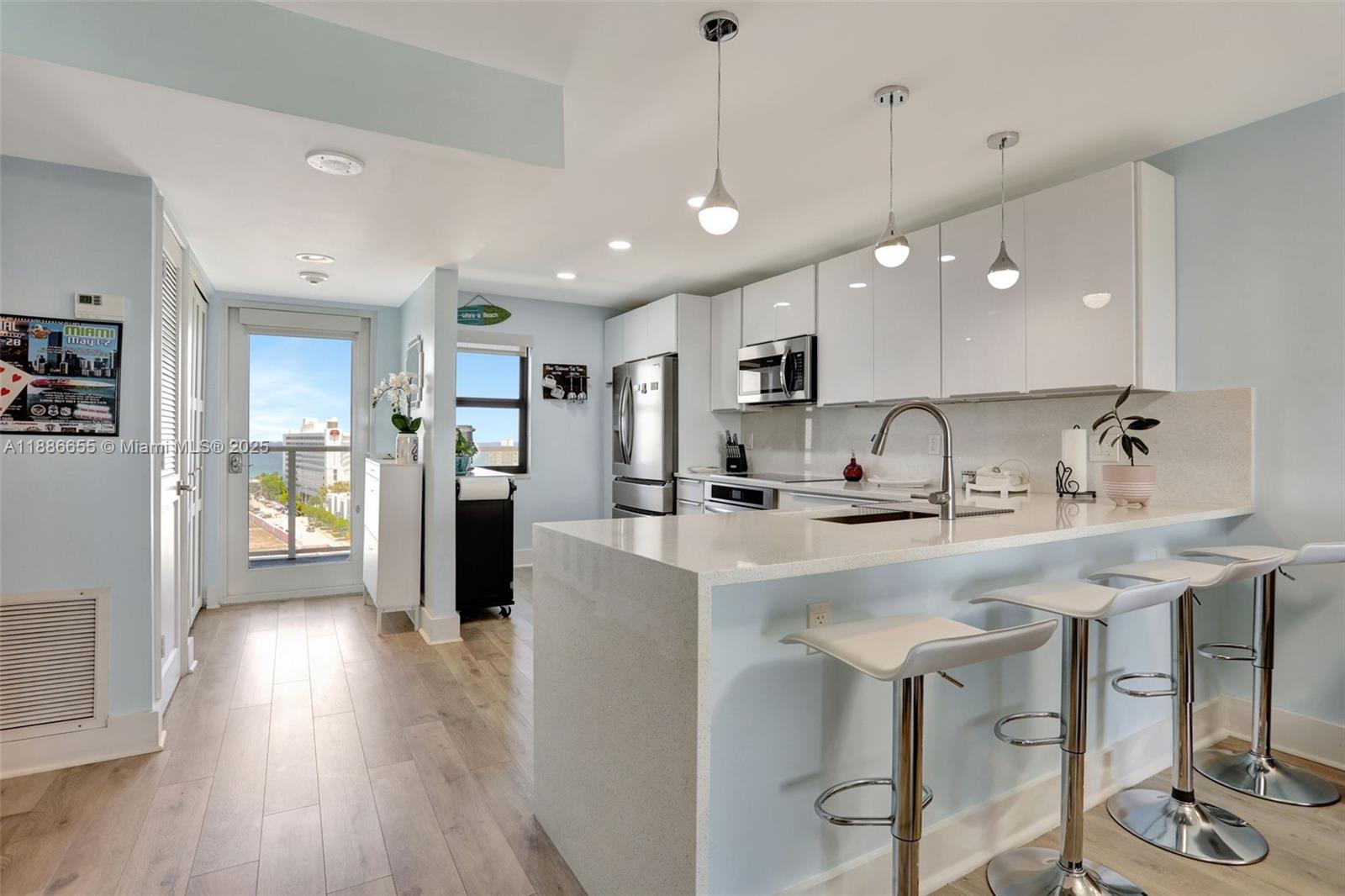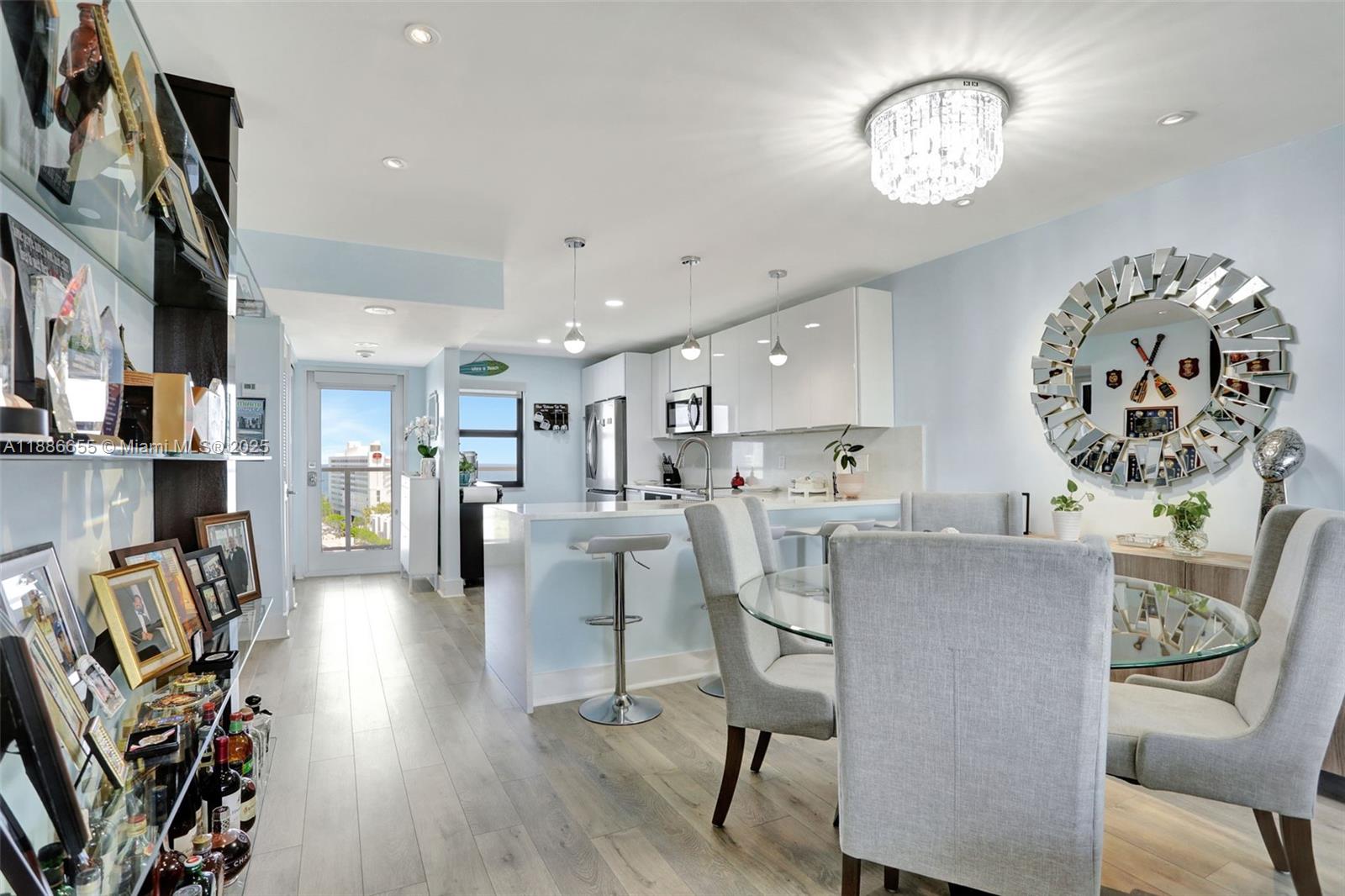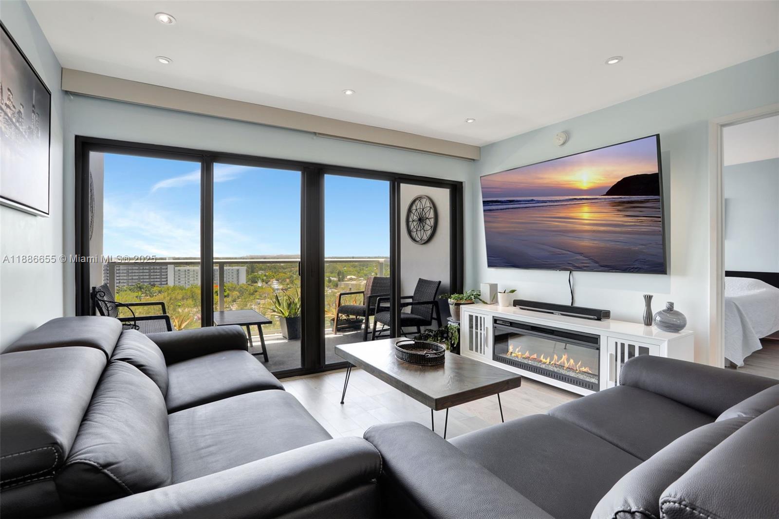 TURNKEY & amazing location define this beautiful condo; breathtaking ocean, intracoastal and city views. Open-concept layout with plenty of natural light. The kitchen features modern finishes, SS appliances, quartz countertops, waterfall edge,sleek cabinets. Spacious master suite w/walk in closet, renovated en-suite bathroom. 2nd bed has a built-in Murphy bed, guest bath fully remodeled. New vinyl flooring throughout, new fixtures. IMPACT DOORS/WINDOWS throughout. Motorized shades with Smart Control. All ages, boutique building. Spacious private balcony with incredible sunset views! Passed 40YR Building Inspection/Certification.Newer AC/WH. Enjoy sunrises & sunsets. Close to Pompano Beach Pier, restaurants. Amenities include pool, fitness center, clubhouse, barbecue area. 2 parking spaces.