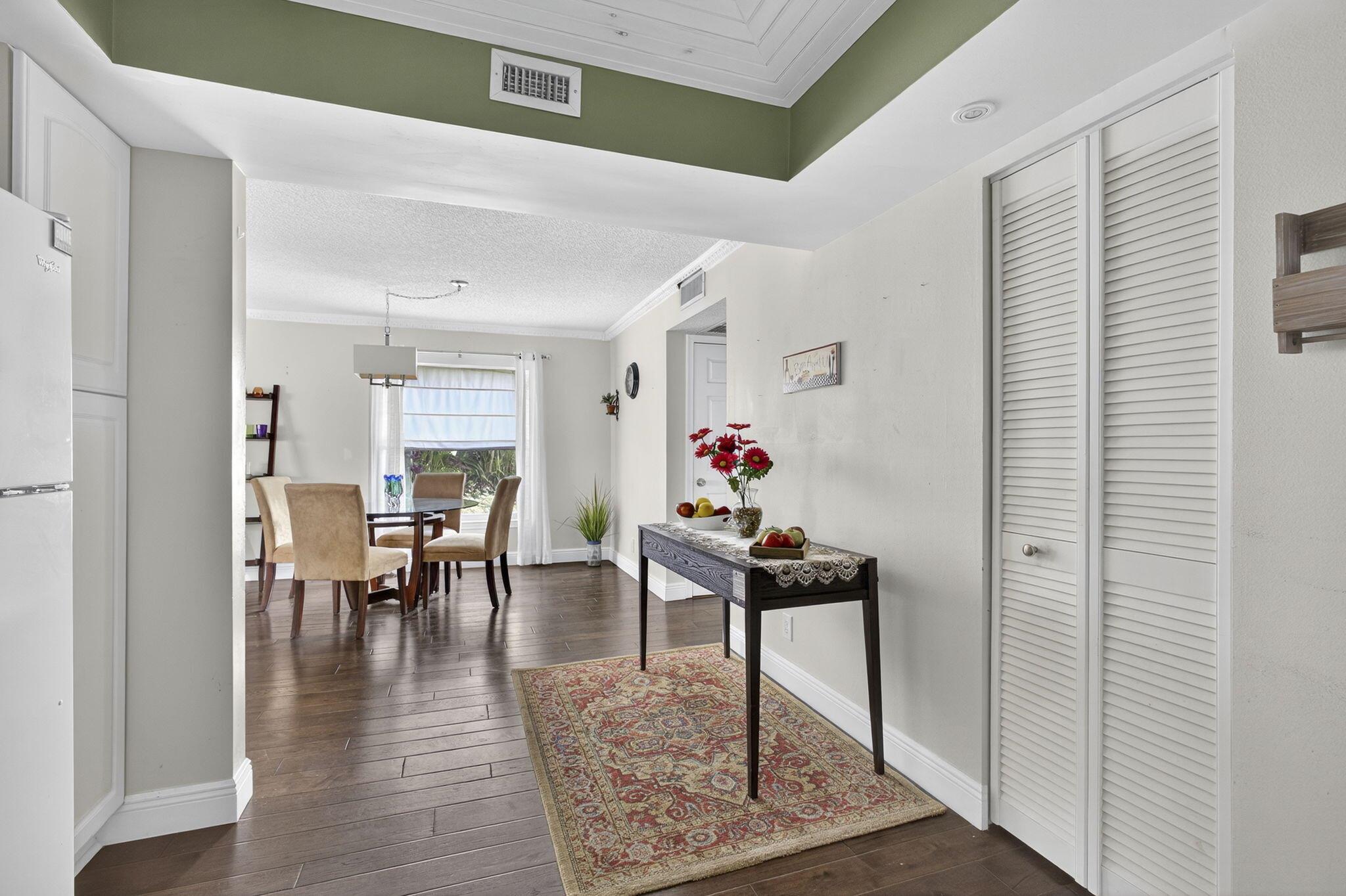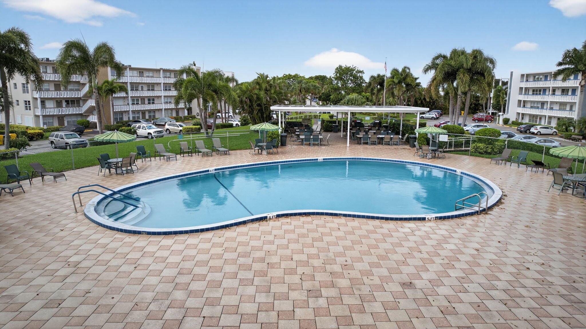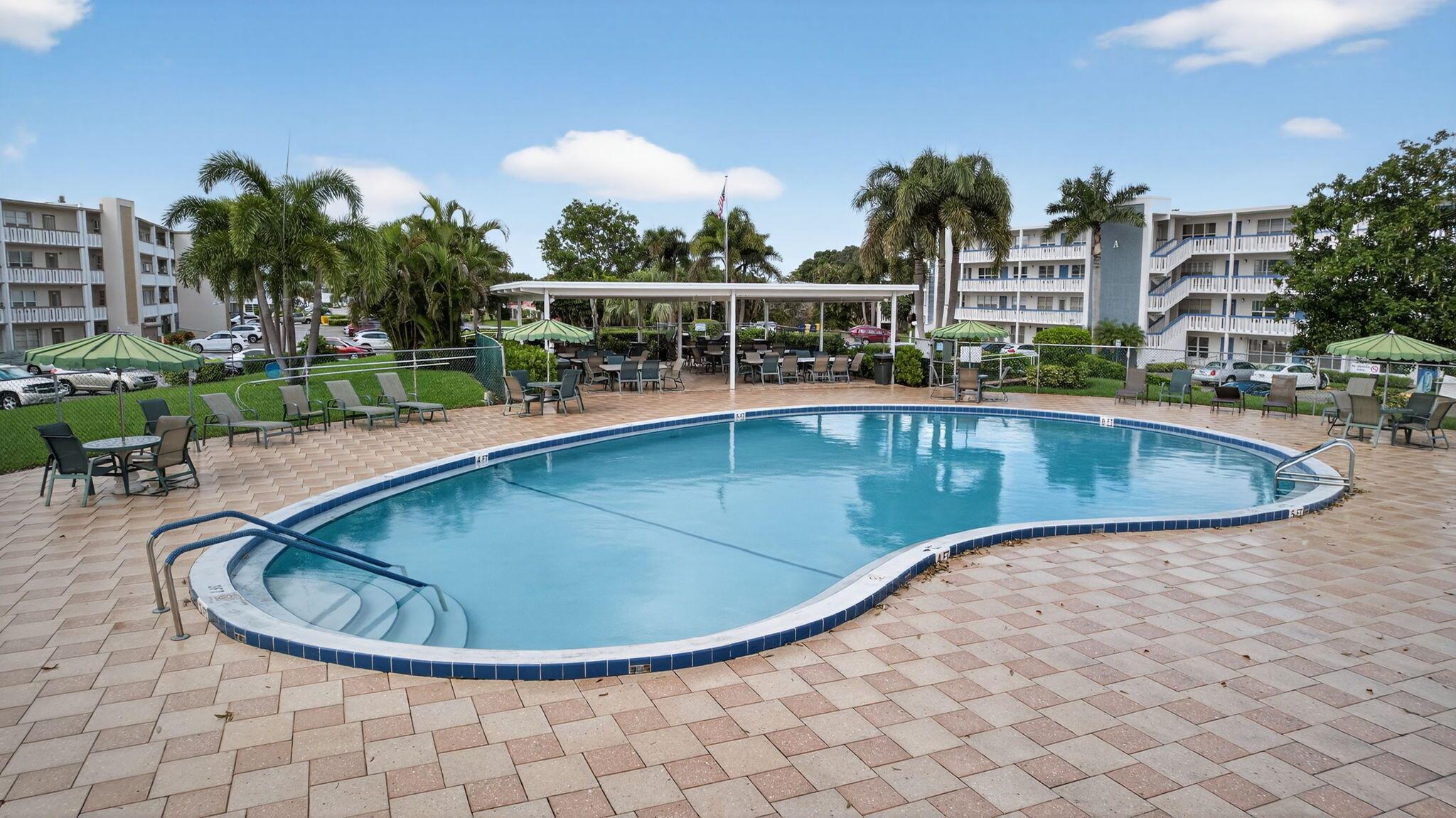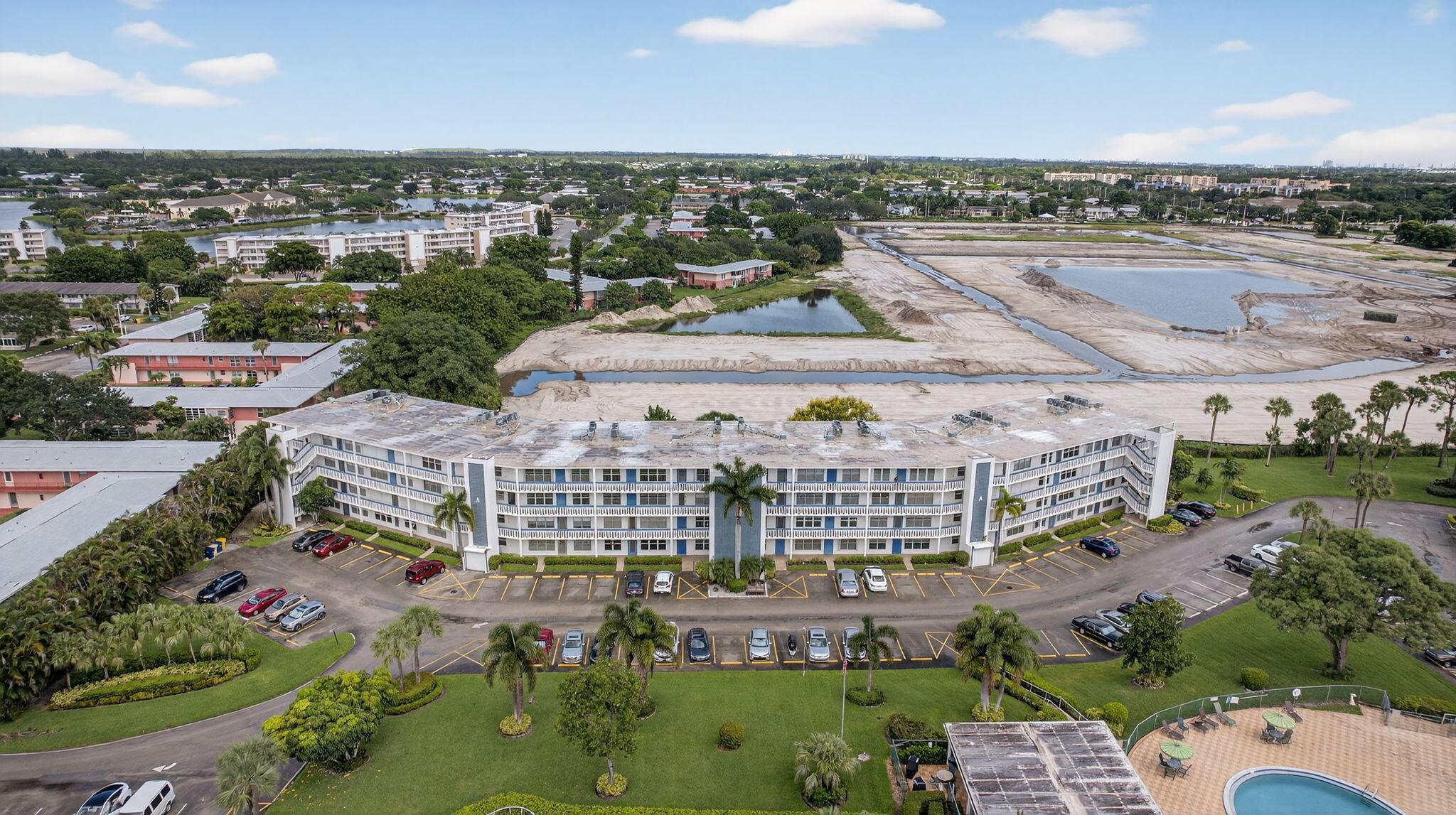 Beautiful and Spacious Updated Rare Floor Plan in the Greenbrier Section of 55+ Century Village! Very Large First Floor Corner One Bedroom & Two Full Bath with over 1000+ sq feet of living space condo. Hardwood Flooring Throughout. Updated Kitchen & Baths. Impact Windows, Impact Enclosed Lanai, Updated Slider (non-impact) to Lanai With Accordion Shutter. Over-sized Bedroom Suite With Updated Full Ensuite Bath, Two Closets (including one HUGE walk-in closet). New AC in 2021. Greenbrier A is a Luxury Building in Century Village with Extra Storage Cage for Each Unit, Trash Chutes, and a Private Resident Pool.
