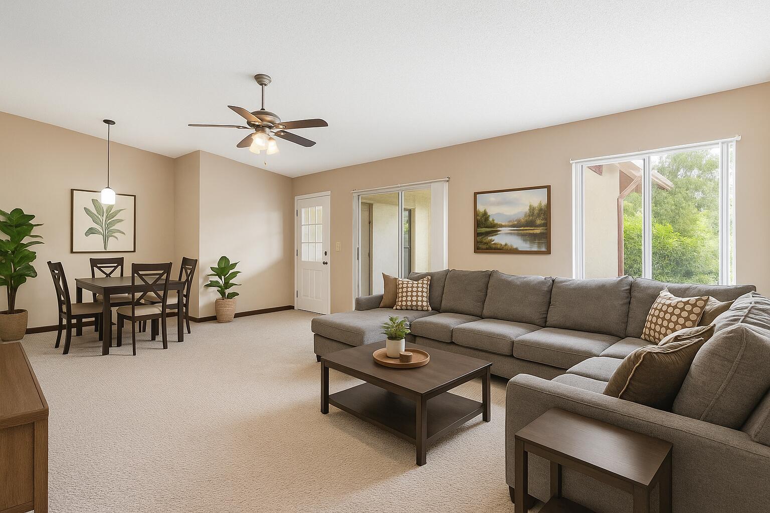 .Welcome to this fantastic 2-bedroom, 2-bathroom condo located on the second floor in a desirable all-ages community. Featuring a brand new roof (2025) and a smart, open layout, this home is the perfect canvas for you to make it your own.Enjoy a light-filled living space, a functional split-bedroom floor plan for added privacy, and two full bathrooms. The kitchen flows seamlessly into the dining and living areas, making it great for both daily living and entertaining.Conveniently situated close to major highways, shopping, dining, and entertainment, this condo offers both comfort and accessibility. Whether you're a first-time buyer, downsizing, or looking for a great investment, this is an excellent opportunity to own in a well-maintained community.