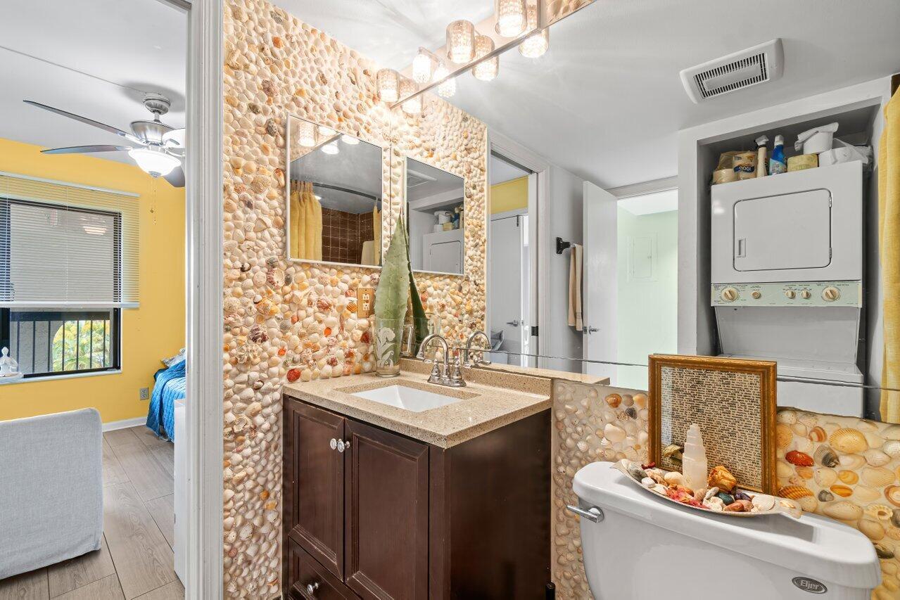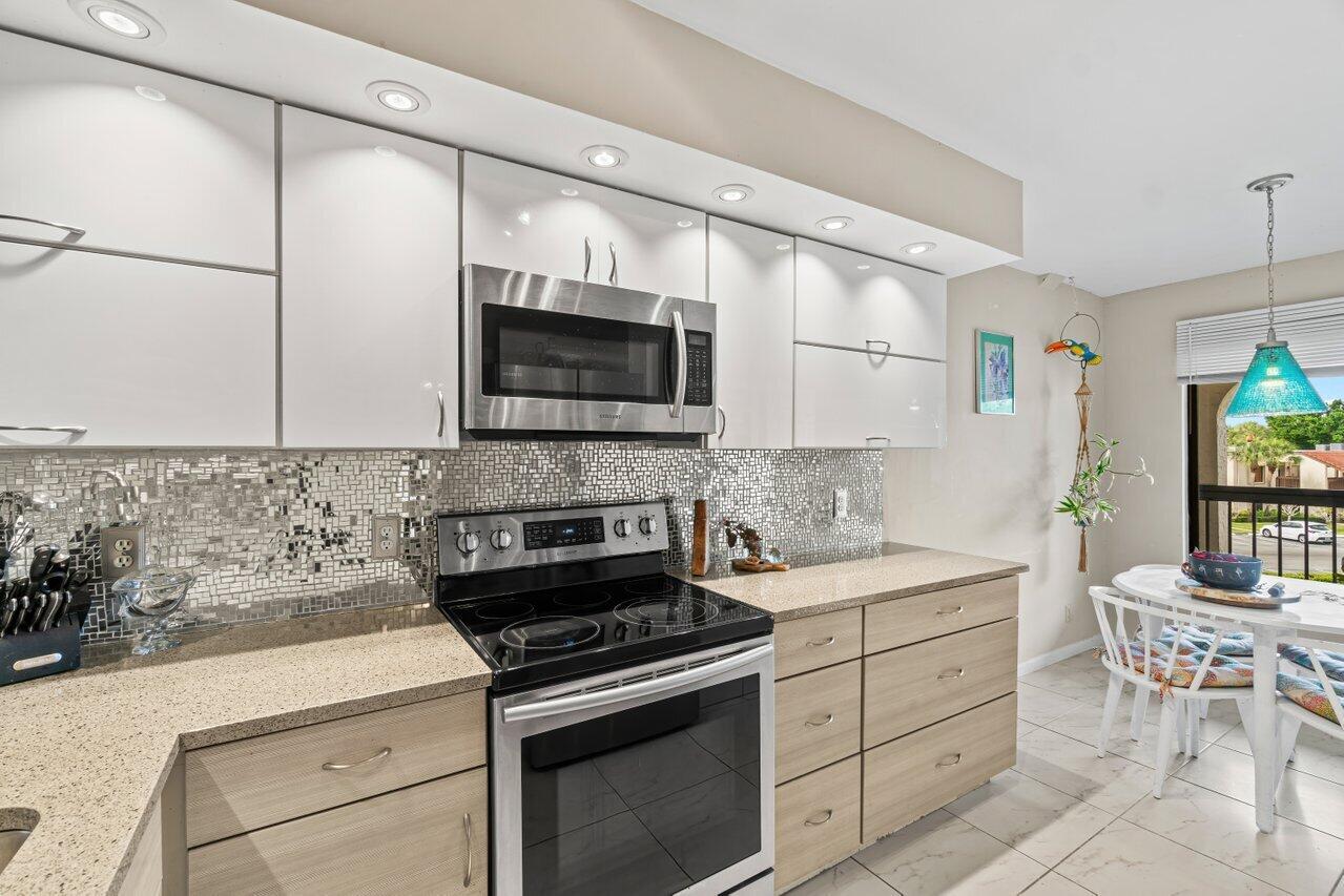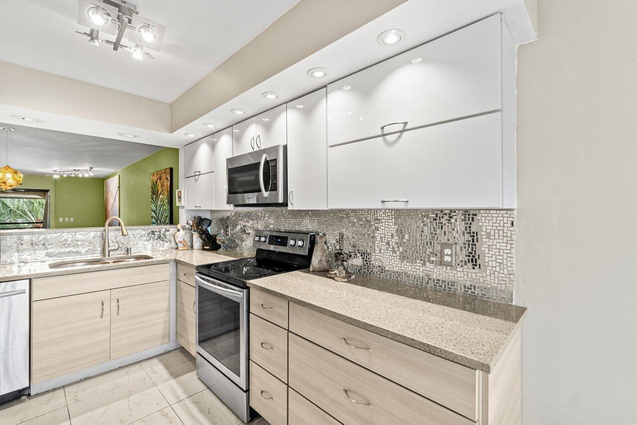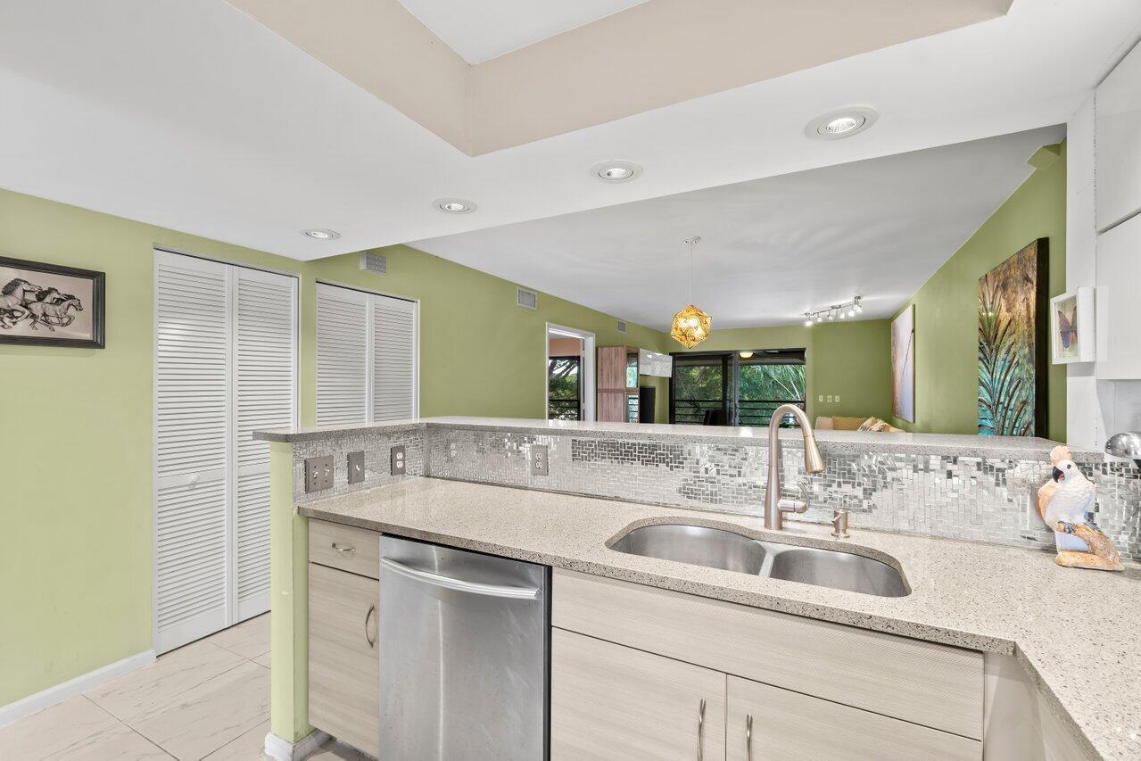 :THIS 2/2 CONDO IS EXTREMELY LIGHT & BRIGHT WITH THE MOST AMAZING PANORAMIC LAKE VIEWS WITH STUNNING SUNSETS! THE OPEN CONCEPT KITCHEN HAS BEEN COMPLETELY REMODELED WITH CONTEMPORARY CABINETS, QUARTZ COUNTERTOPS, AMAZING DECORATIVE MIRROR MOSAIC BACKSPLASH & STAINLESS STEEL APPLIANCES! THE PRIMARY BEDROOM FEATURES DOUBLE DOOR ENTRYWAY & SLIDING GLASS DOORS THAT LEAD OUT TO THE SCREENED LANAI. THE GUEST BEDROOM HAS A DOUBLE DOOR ENTRY, WALK-IN CLOSET & ENSUITE BATHROOM. RELAX ON THE SCREENED LANAI AMONG THE BEAUTIFUL BANYAN TREES TO WATCH THE DUCKS & TURTLES FROLIC IN THE LAKE! BANYAN SPRINGS IS A GATED COMMUNITY AND HAS A FABULOUS CLUBHOUSE w/ A CAFE/ RESTAURANT, 2 RESORT POOLS w/ SPAS, SOCIAL HALL FOR SHOWS, PARTIES & DANCES, FITNESS CENTER w/ PERSONAL TRAINER, PICKLEBALL & TENNIS...
