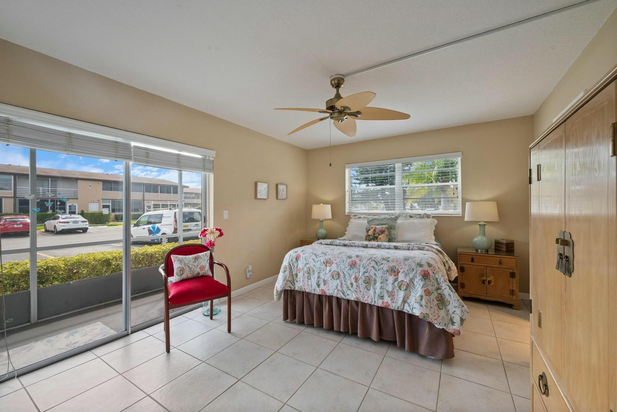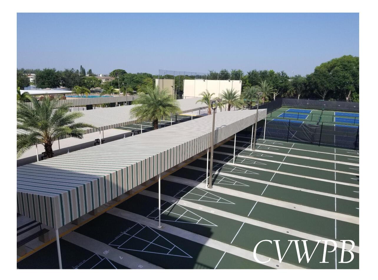 SELLER FINANCING AVAILABLE!!! This beautifully maintained 1-bedroom, 1.5-bathroom corner condo is located on the first floor of a well-kept building in the resort-style 55+ community of Century Village. The unit features an updated kitchen and bathrooms, with tile flooring throughout, providing a sleek, modern look that is easy to maintain. The central AC, installed in 2021, ensures year-round comfort, and parking is conveniently located directly outside the back door. The laundry room and mailbox are just two doors away, adding to the convenience of daily living. The screened-in patio offers a peaceful retreat where you can enjoy the fresh air. All SB4-D inspections are current, and the roof has an estimated 10 years of life left, adding peace of mind to your purchase.