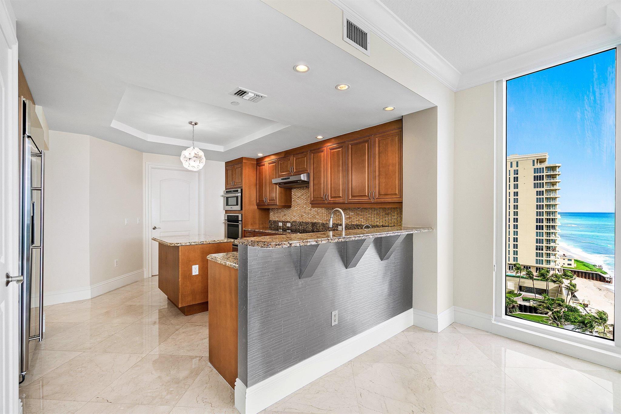 Experience unparalleled luxury in this direct oceanfront 3-bedroom, 3.5-bath condo at the prestigious Beach Front at Singer Island. Boasting breathtaking water views from every room, this residence includes a coveted pool-side cabana and a large wrap-around covered balcony, accessible from all living areas, perfect for savoring stunning morning sunrises. With only three residences per floor, enjoy the ultimate privacy with a private foyer leading directly from the elevator into your home. The expansive primary suite features a walk-in shower, soaking tub, dual vanities and two walk-in closets. All bedrooms are generously sized, each with its own full bath and walk-in closet. The spacious living and entertainment area includes a custom built-in bar, an inviting breakfast nook and