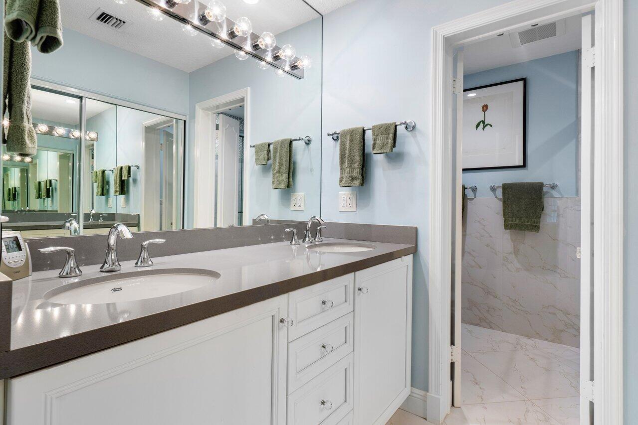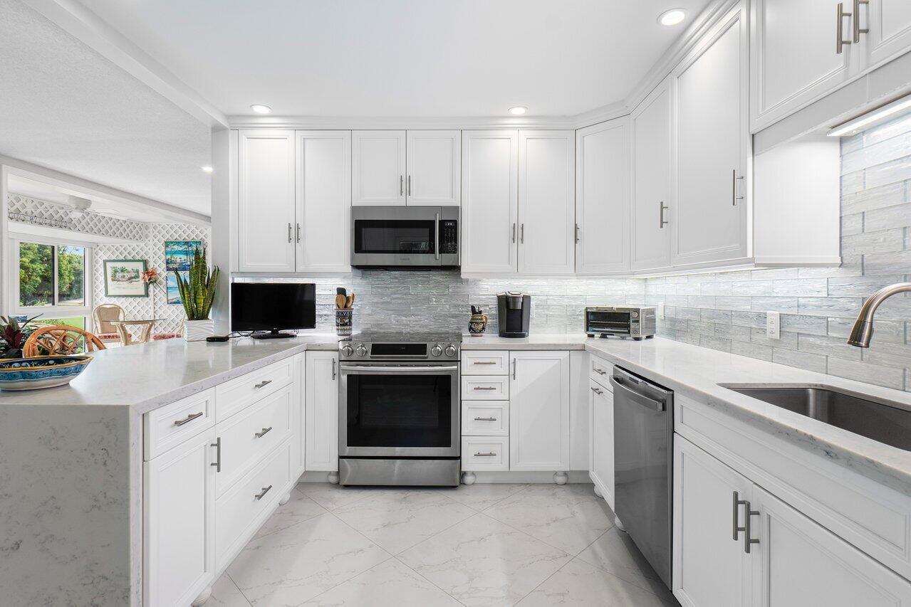 Beautifully Renovated 2 bedroom Corner Residence with Golf Course Views. Welcome to this bright and airy 2-bedroom, 2-bath corner unit located on the second floor in sought-after Quail Ridge. Enjoy plenty of natural light throughout, with expansive impact glass windows and doors offering serene, lush golf course views. The open kitchen features white cabinetry, sleek white quartz countertops, and a modern design perfect for entertaining. Both bathrooms have been tastefully renovated with high-end finishes. A rare opportunity to own in a premier location--move-in ready and beautifully updated. Quail Ridge is a mandatory membership community offering top tier golf courses, racquet sports, fitness center & spa, and a clubhouse offering fine dining and beyond.