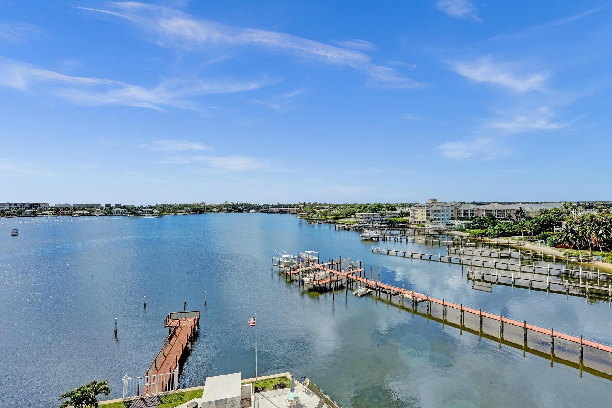 Live the Florida Dream in Style This stunningly renovated 2-bedroom, 2-bathroom condo offers breathtaking panoramic views of the Intracoastal Waterway and the Atlantic Ocean, blending the best of coastal living with modern elegance. Designed by the renowned Palm Beach designer, Jeanne Michelle, every detail of this residence has been meticulously crafted for both style and comfort. Step into a coastal modern oasis, fully furnished and turnkey, ready for immediate enjoyment. The spacious kitchen, perfect for entertaining, features a large island and striking jellyfish pendant lights, while grasscloth wallpaper and charming shell sconces create a welcoming atmosphere. With impact windows throughout and remote-controlled blinds, you'll enjoy both beautiful views and comfort.