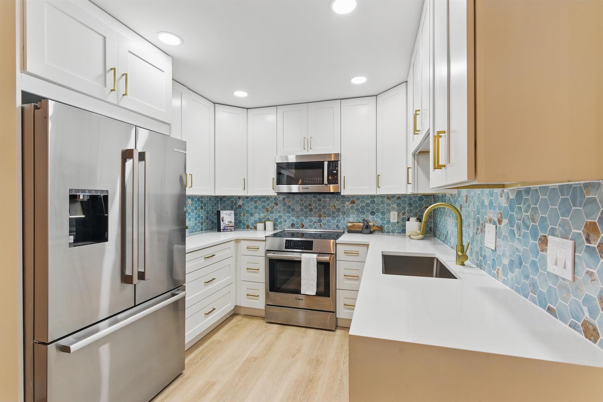 LUXURY at the Beach. Newly updated condo on one of the best streets in Delray Beach. You are two blocks from one of the best beaches in all of Florida and walking distance from E Atlantic Ave (Delray's vibrant downtown). This condo is on the FIRST FLOOR in its own corner paradise. From a brand-new kitchen and quartz crystal countertops to a brand-new AC and Electrical panel. Each detail has been taken care of. Built in closets for each room add value and ease. The HOA has completed a new roof in 2023, Freshly painted and reinforced outside walls, new parking and trash set up. Pavers are being installed now in the back patio of the unit as well. Safe and secure. COME and SEE your new home/paradise getaway.