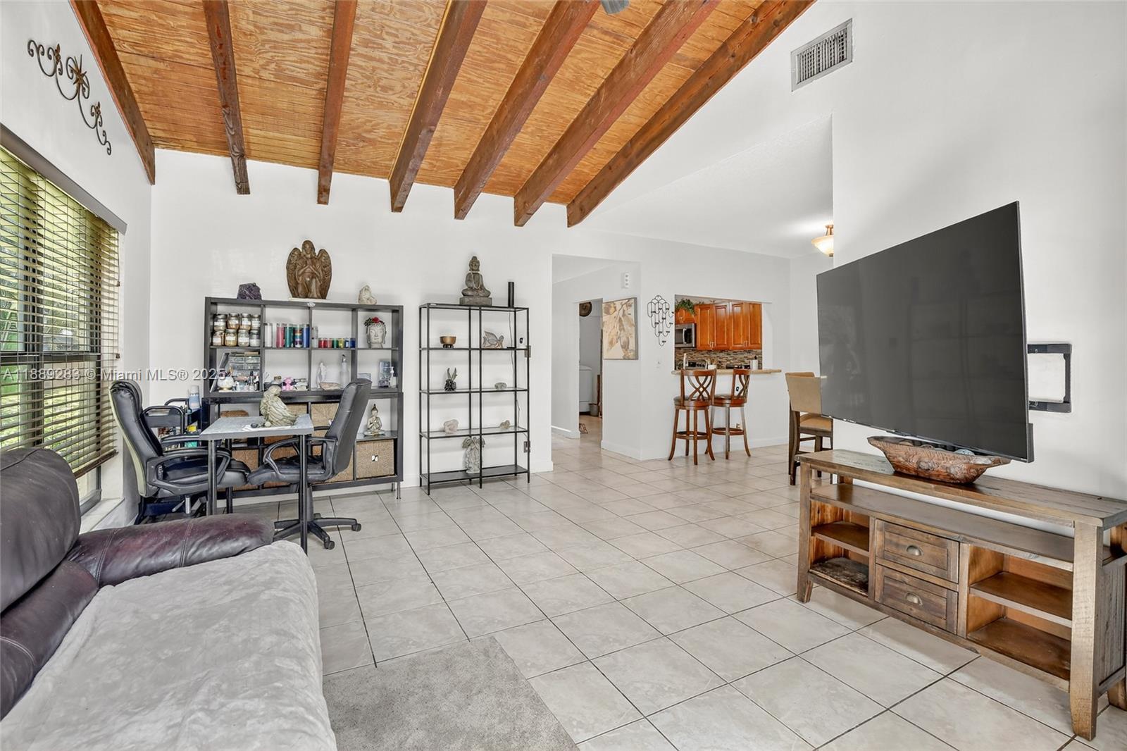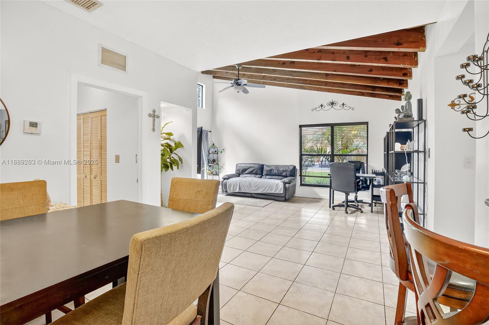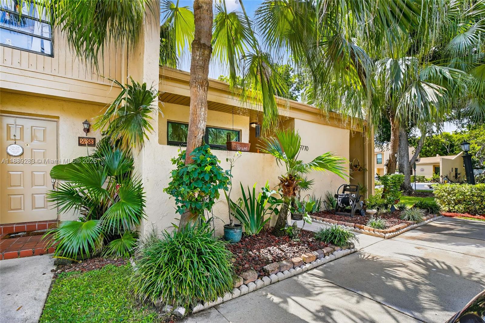 Welcome to this desirable 1 story, corner unit with 2 bedrooms and 2 bathrooms. This unit offers a bright and open layout with the convenience of 2 parking spaces right outside your door. High ceilings and open floor plan with an enclosed private patio. Recent upgrades include newer roof and 5-rated impact windows for peace of mind. HOA covers lawn care, exterior paint, pool, racquet court, and dog park, no assessments. Community is pet friendly. Please read broker remarks for showings.