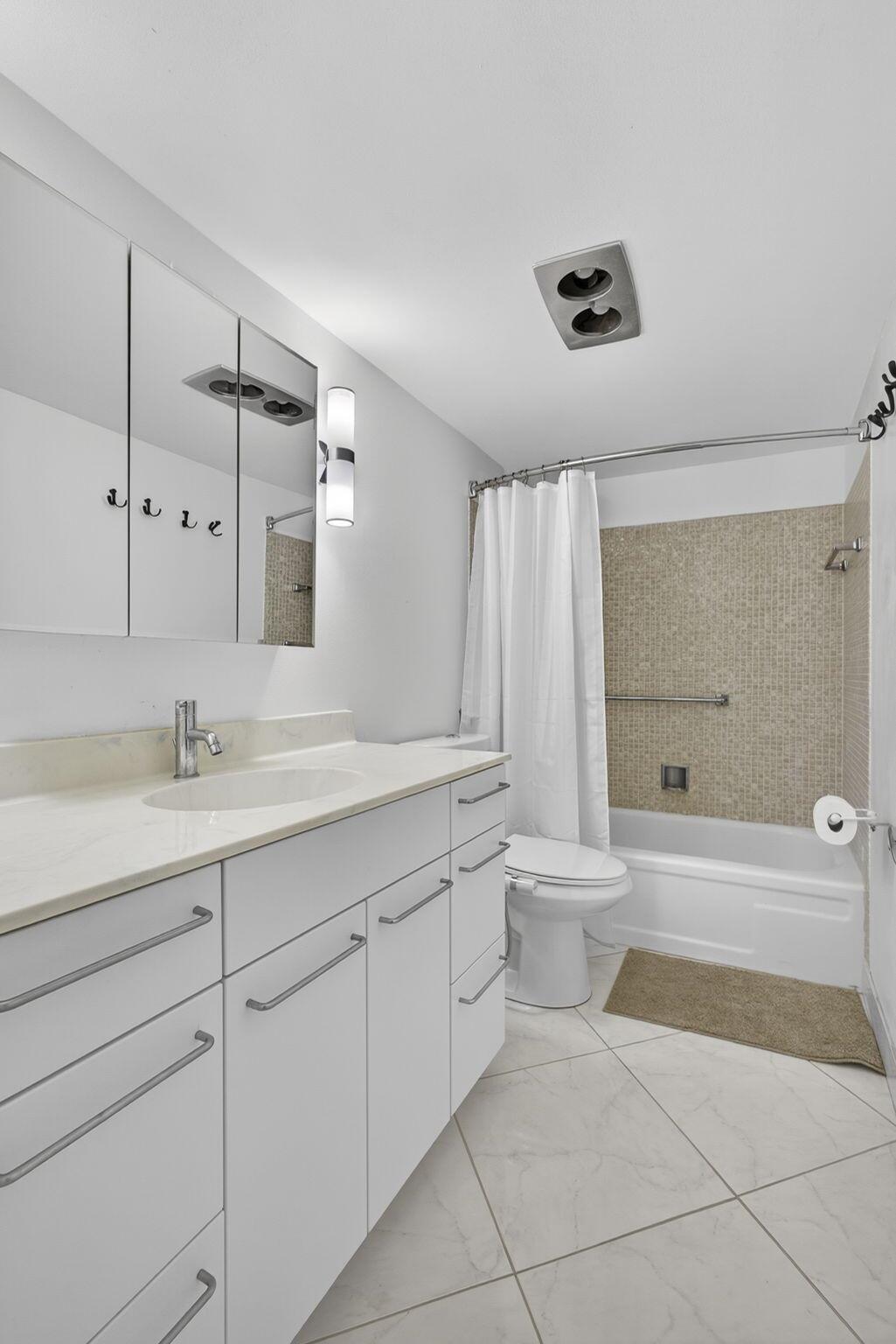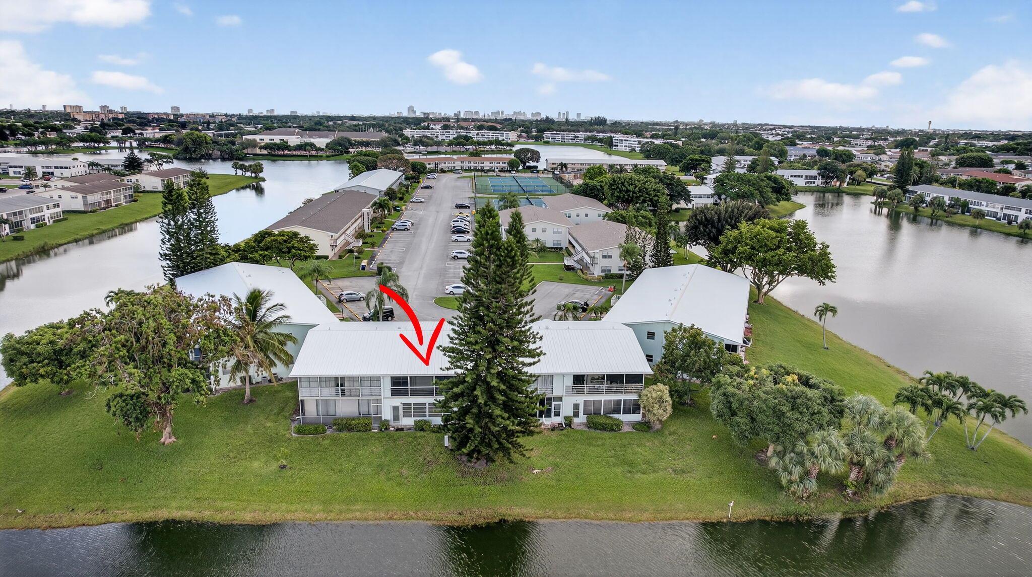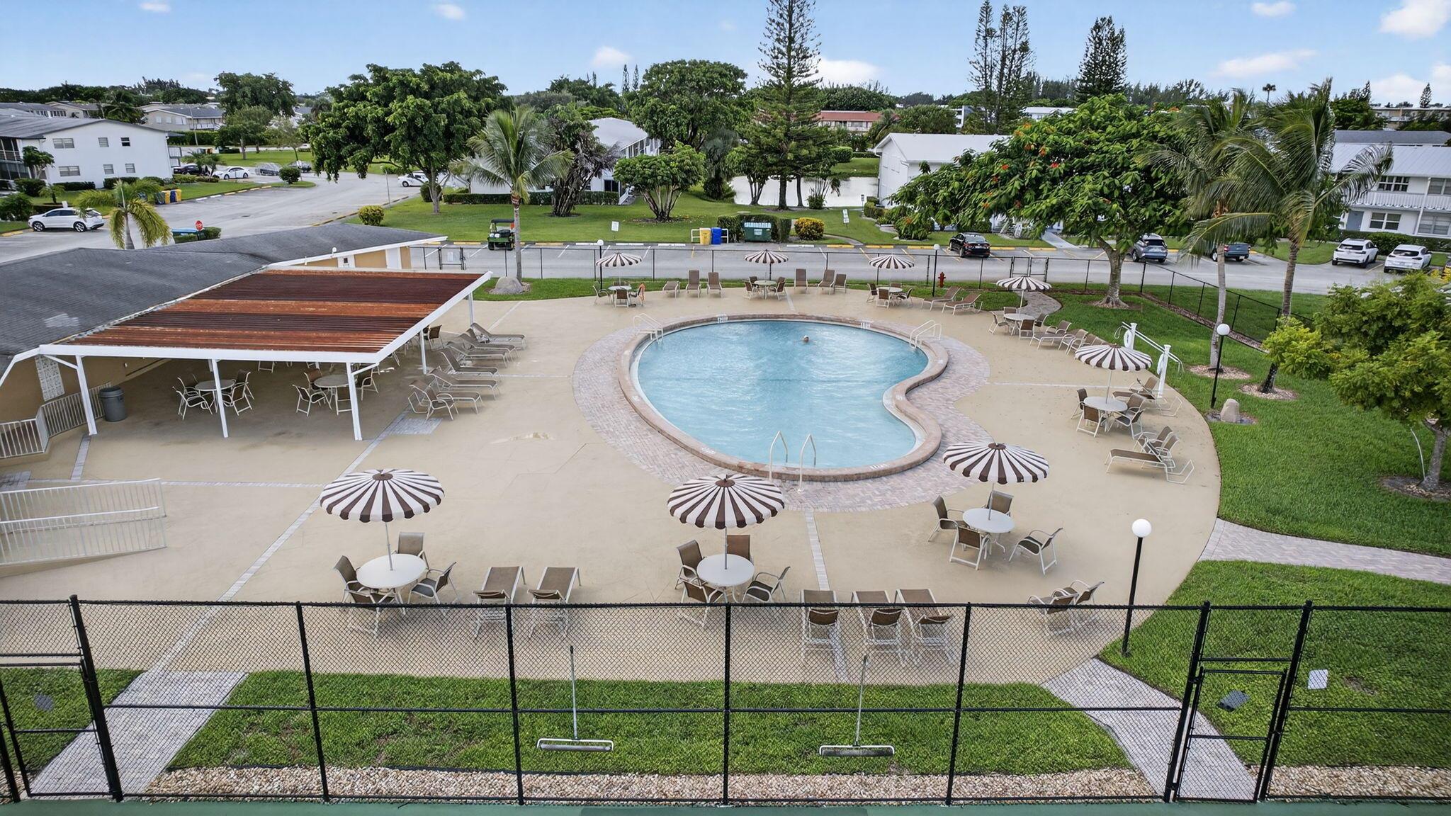 If you love the resort lifestyle, don't miss this light & bright 2 bed/2 bath 2nd-floor condo in Century Village(55+). Enjoy stunning water views from the large balcony off both bedrooms. Located in the desirable Somerset section near the pool & tennis courts, with a newer roof & strong reserves. Features include diagonal white tile throughout, white kitchen & bath cabinets, roomy closets, and laundry right outside your door. Assigned parking plus plenty of guest spots & community bus service. The main clubhouse offers a theater, indoor & outdoor pools, fitness center with classes, tennis, pickleball, bocce, clubs & more. Two guarded gates, 24-hr security patrol, and hurricane shutters add peace of mind. Centrally located near shops, dining, airport, beaches & downtown.