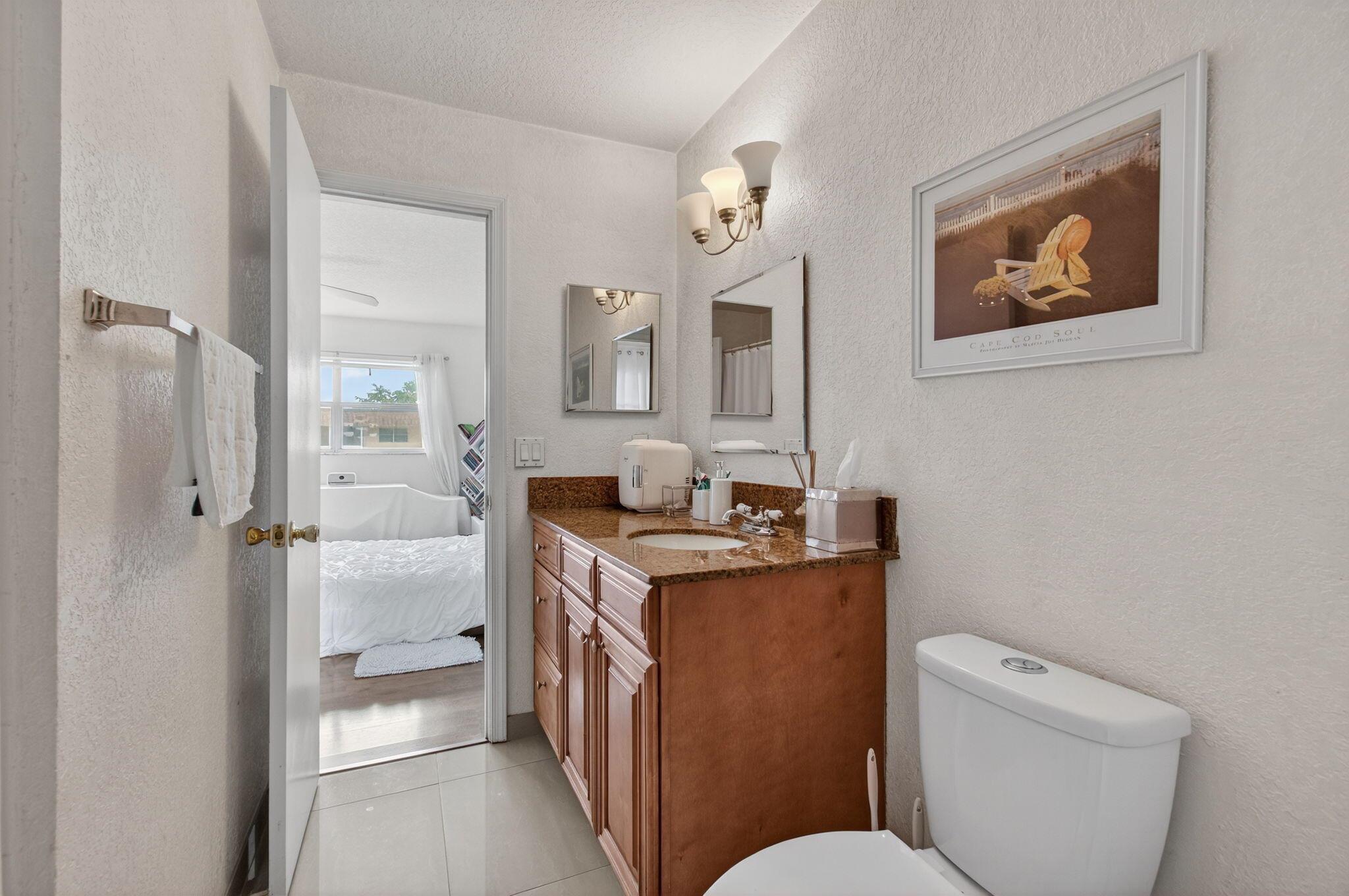 Welcome to this bright and spacious 2-bedroom, 1-bath condo located in the desirable Sandalfoot community of Boca Raton. This move-in ready unit has been tastefully updated with sleek 24x24 white porcelain tiles and fresh white paint throughout, creating a clean, modern look with plenty of natural light.Enjoy relaxing on your private patio overlooking the serene garden area and sparkling community pool--perfect for morning coffee or evening unwinding. The condo features two large bedrooms with an adjoining shared bathroom, ideal for families, guests, or a home office setup.Conveniently located close to shopping, dining, top-rated schools, and all that Boca Raton has to offer.